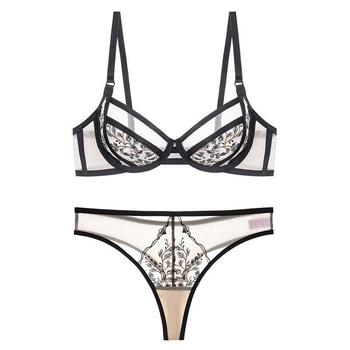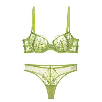 Fabricantes al por mayor de ropa interior de encaje transparente fino y sexy nuevo, sujetador de mujer con escote pequeño fruncido, conjunto de sujetador de talla grande |