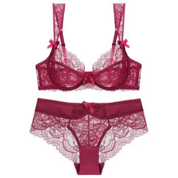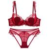Ropa interior de estilo francés para mujer, copa de cristal ultrafina, ropa interior de encaje bordado, conjunto de sujetador sexy antiflacidez pequeño con pecho grande |