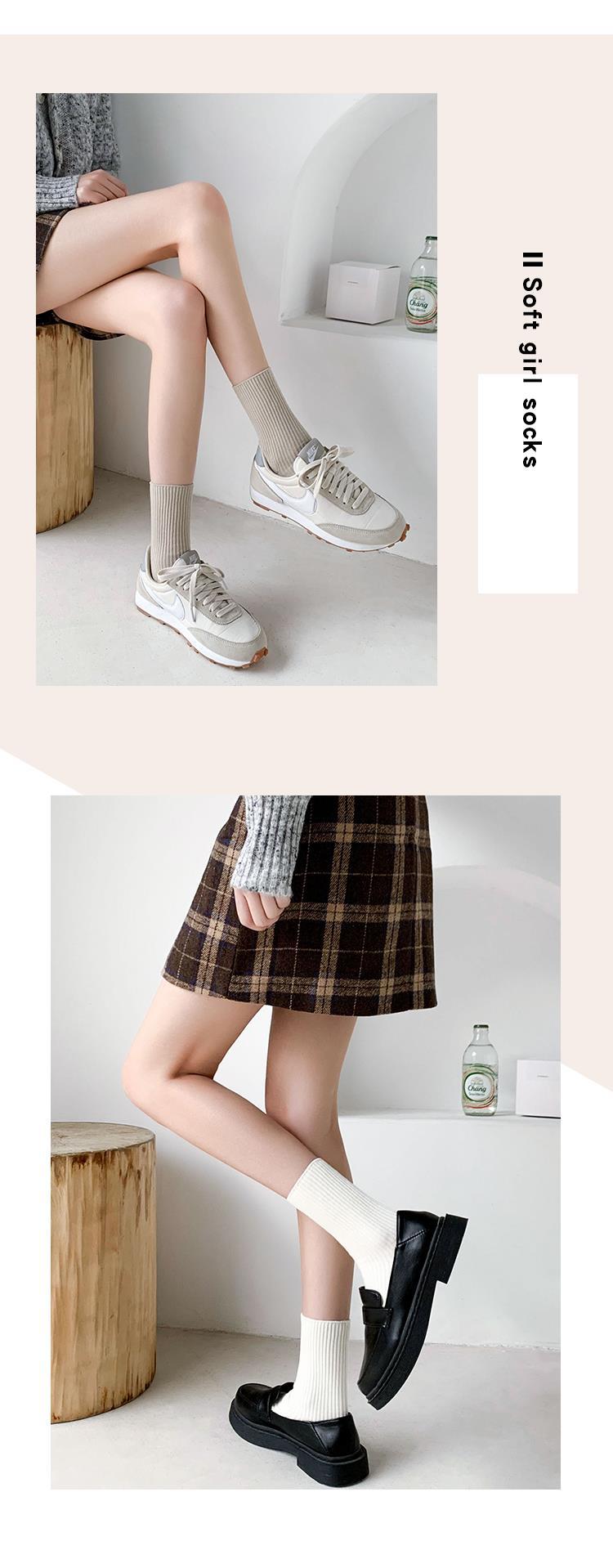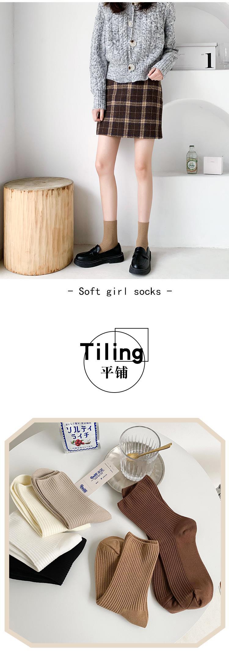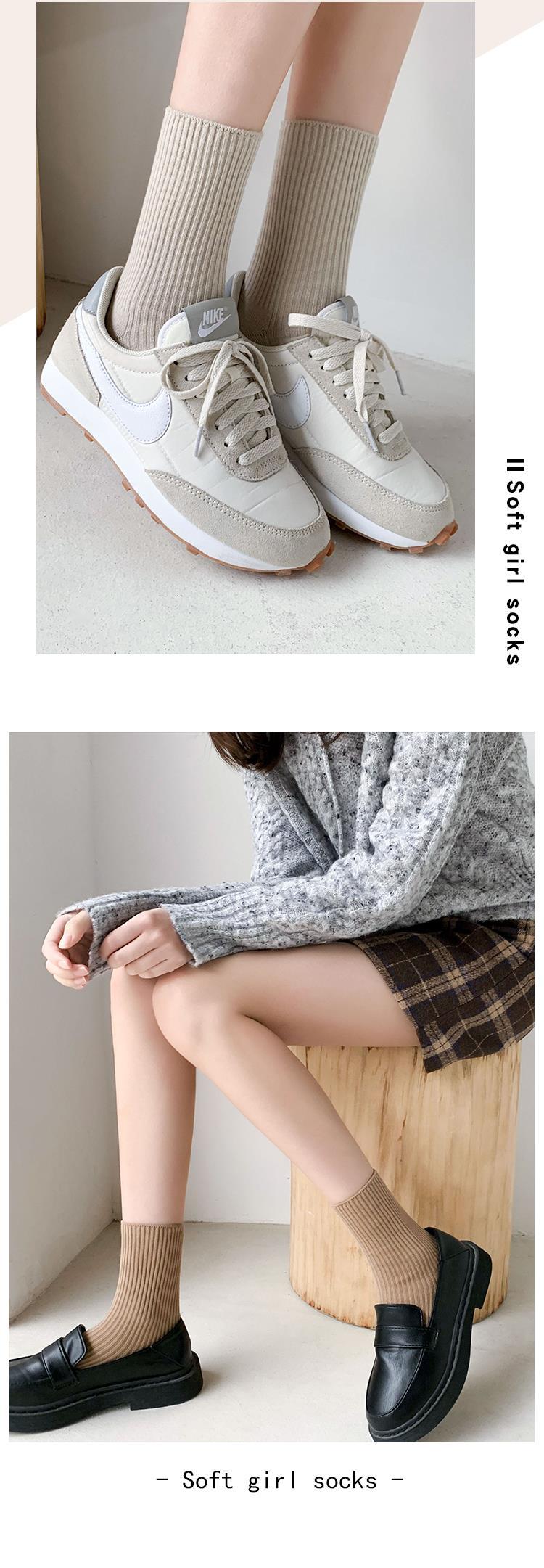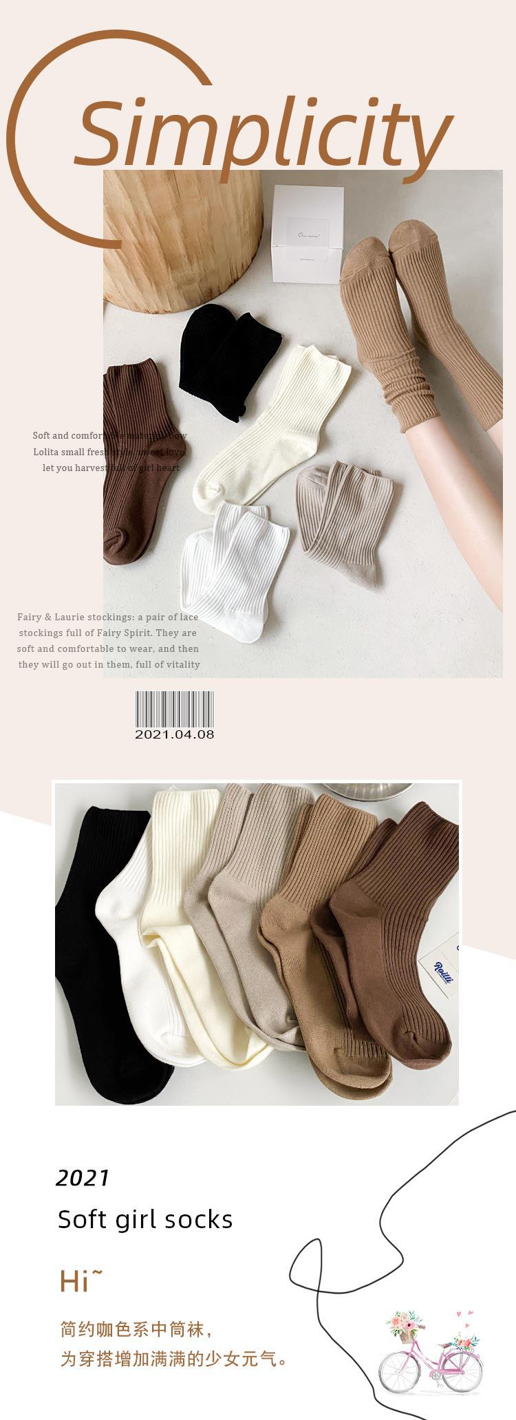 Calcetines caqui de algodón fino de verano para mujer, calcetines blancos y marrones de pelo largo, medias japonesas de color liso para primavera y otoño.