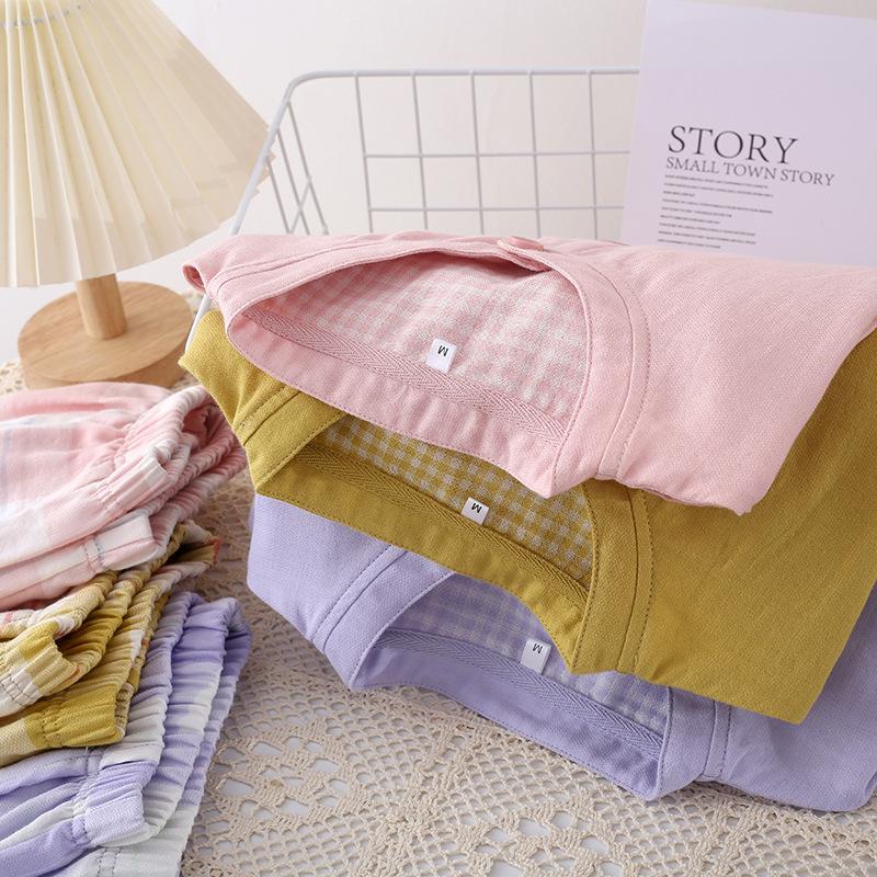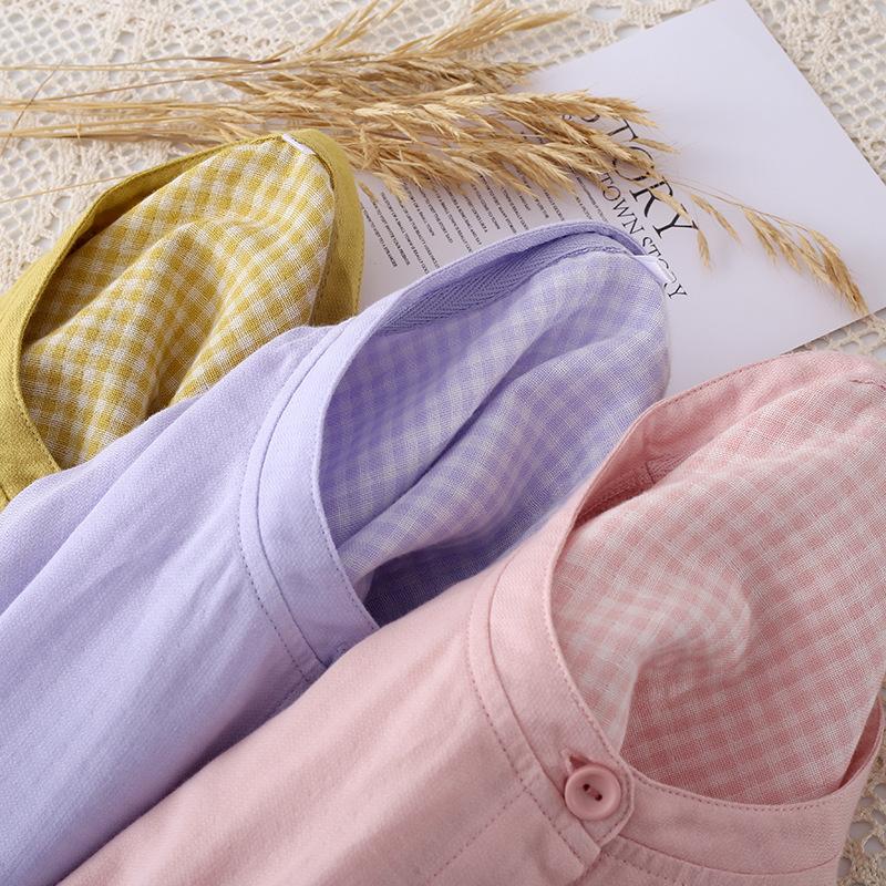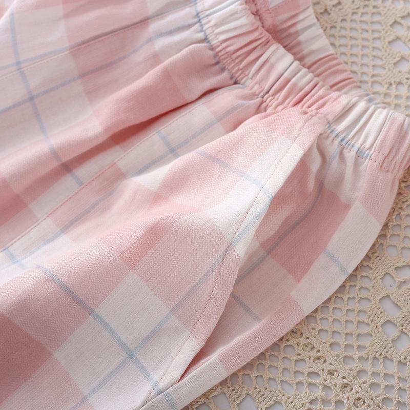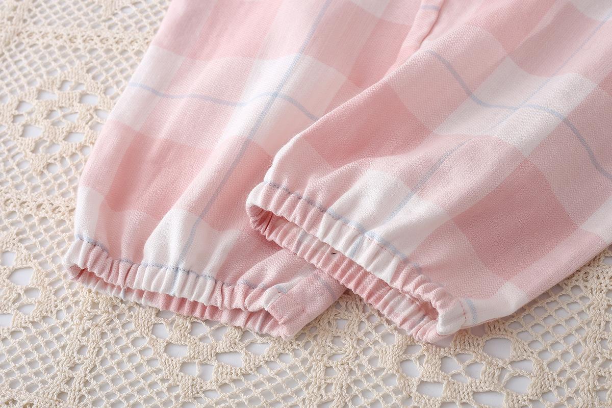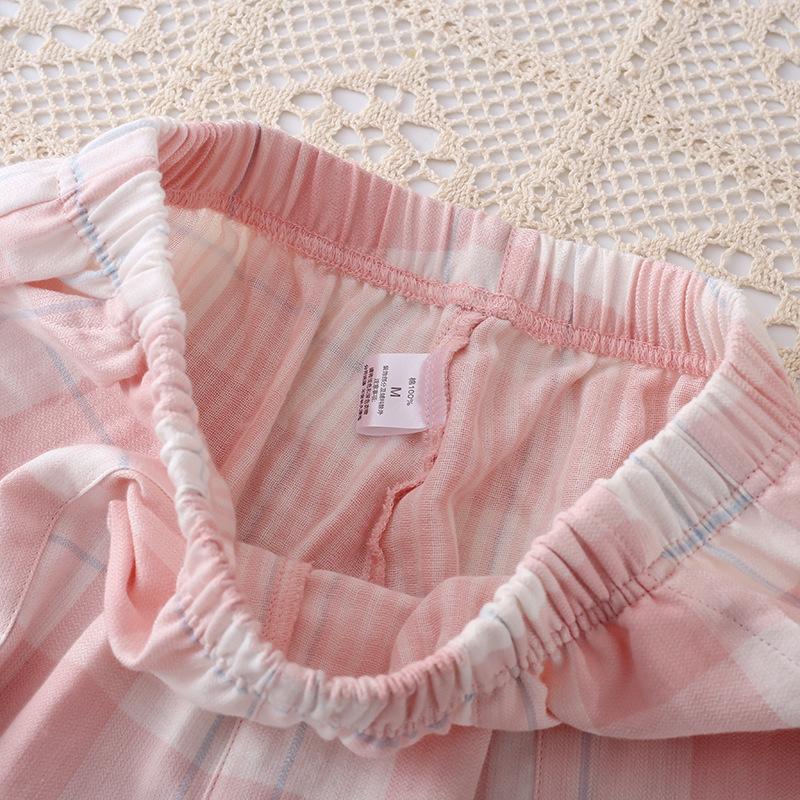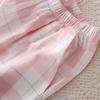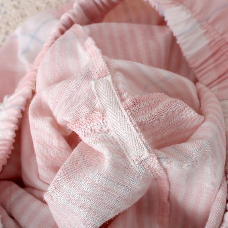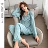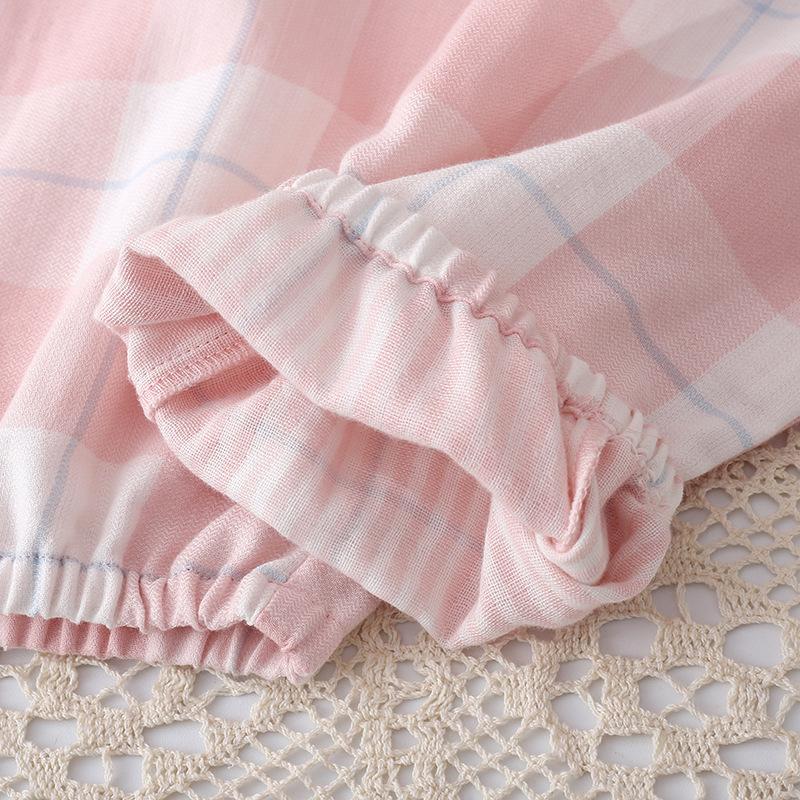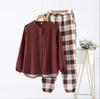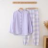 Pijama de gasa teñida de hilo para mujer, de algodón, nuevo, para el hogar, estilo simple, sin estampado, de manga larga, a cuadros