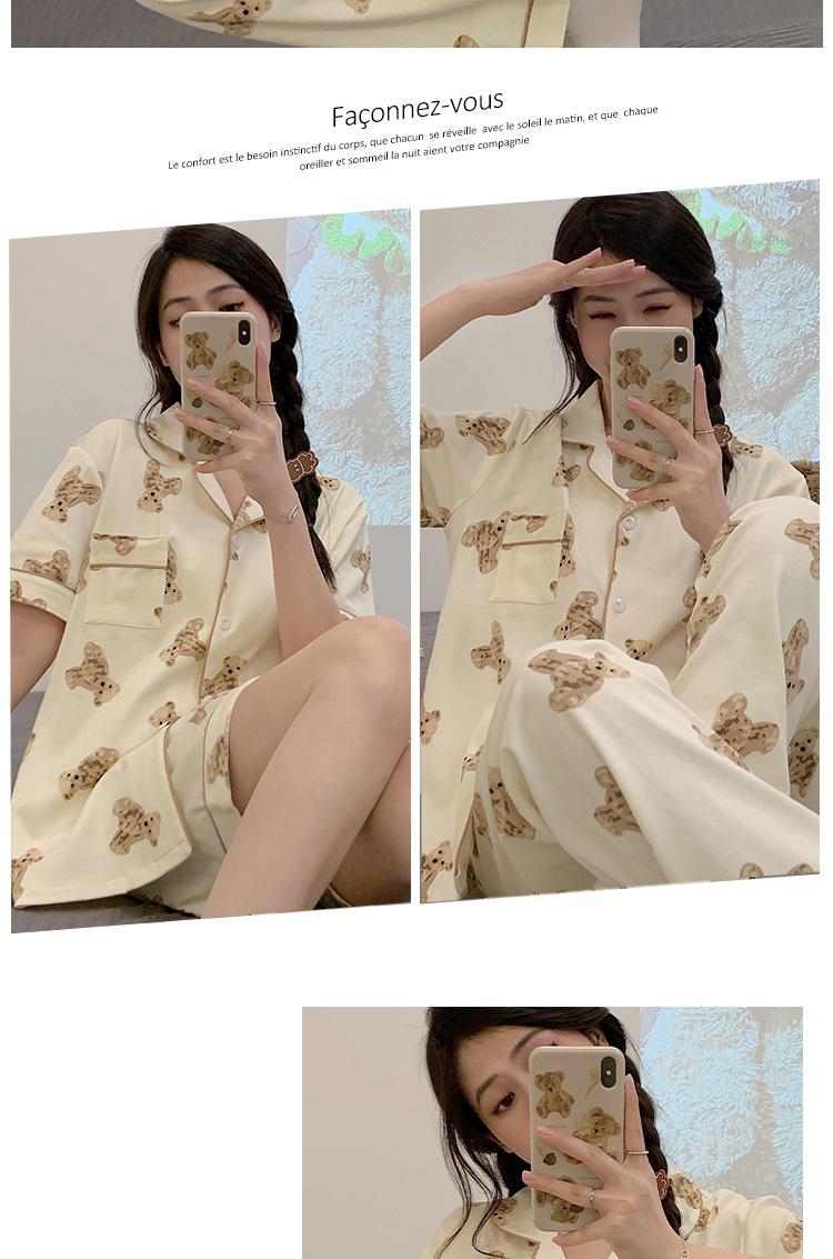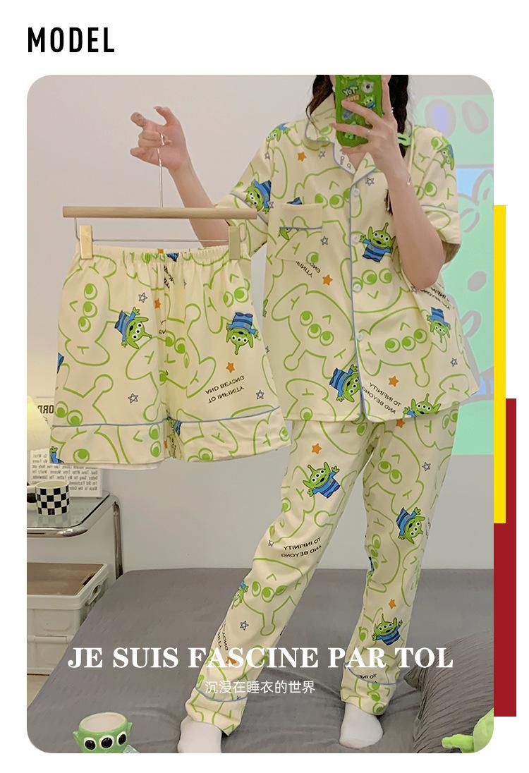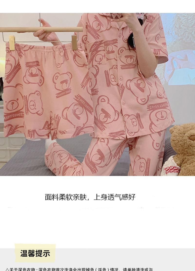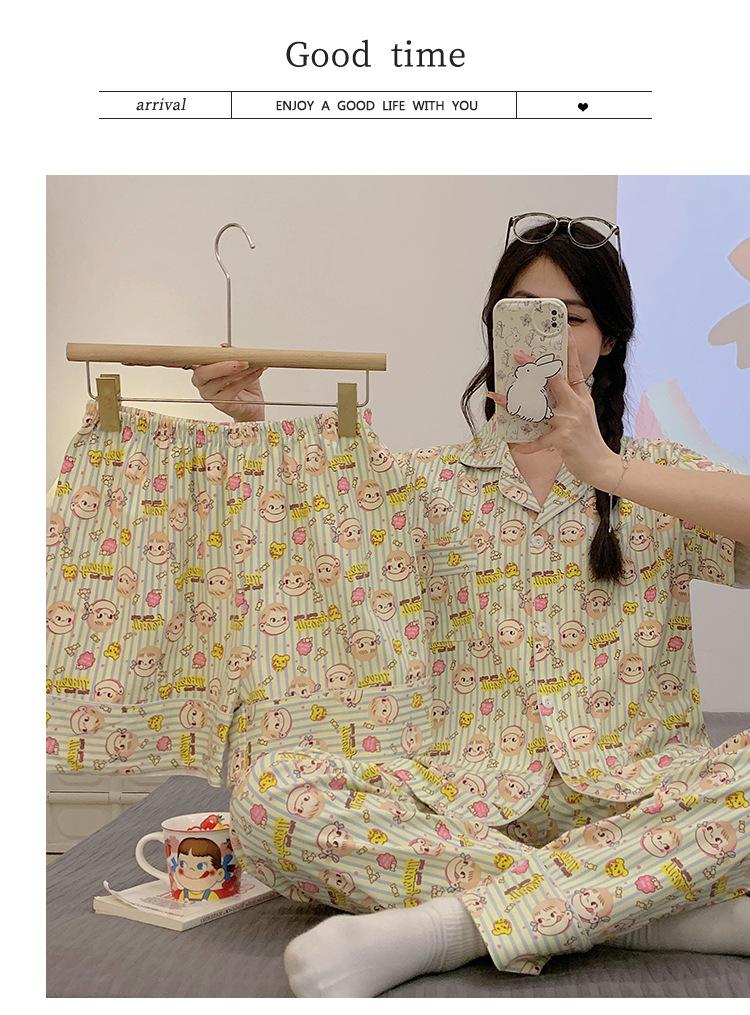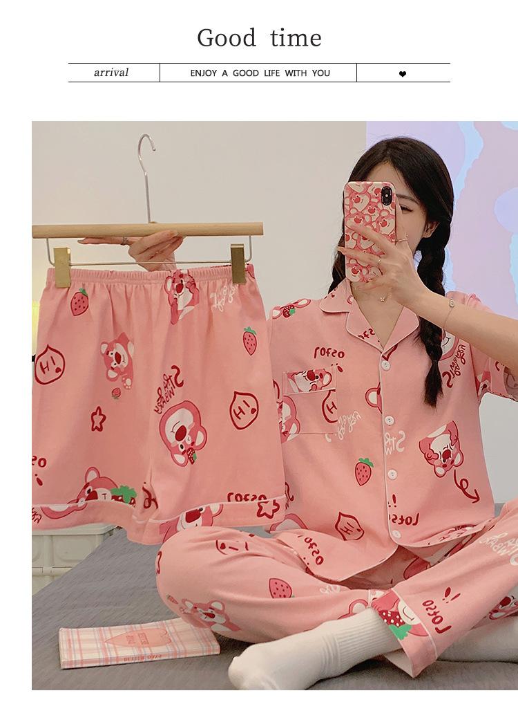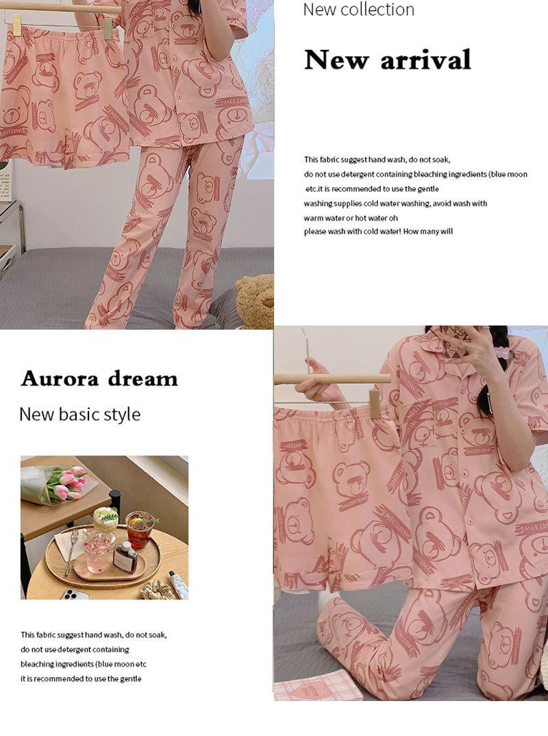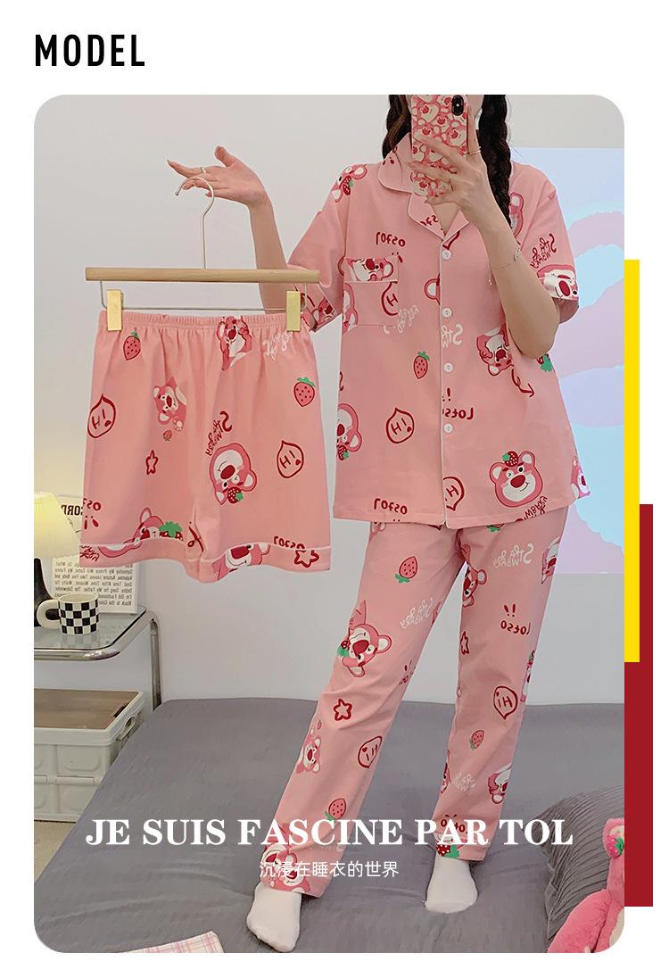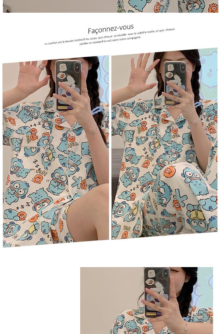 Verano Nuevo Pijama de Tres Piezas de Manga Corta para Mujer Estampado de Dibujos Animados Casual Solapa Cárdigan Ropa de Casa Dropshipping