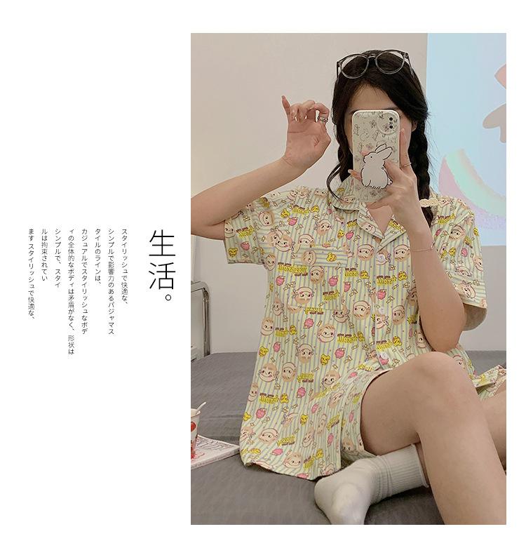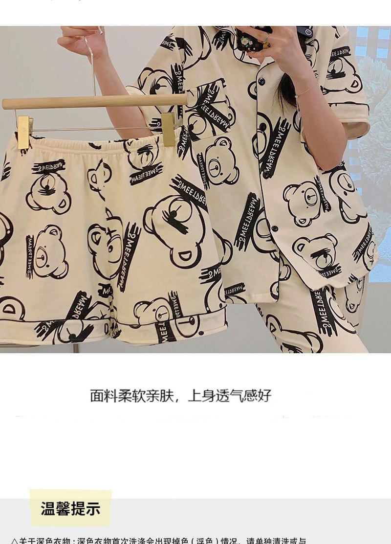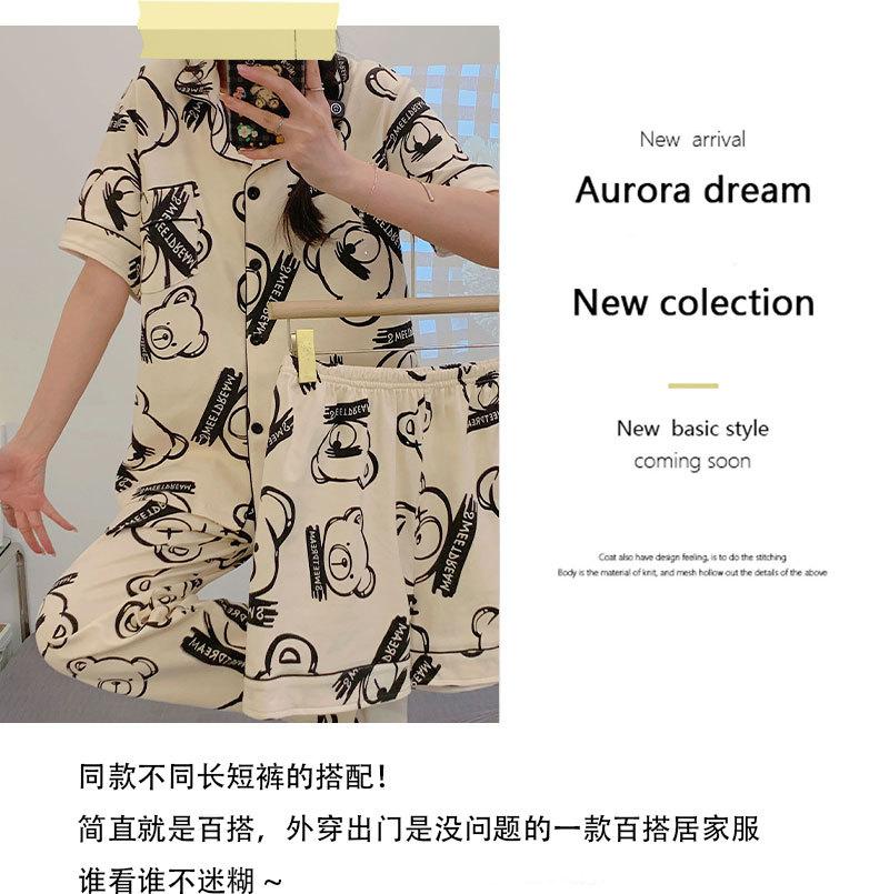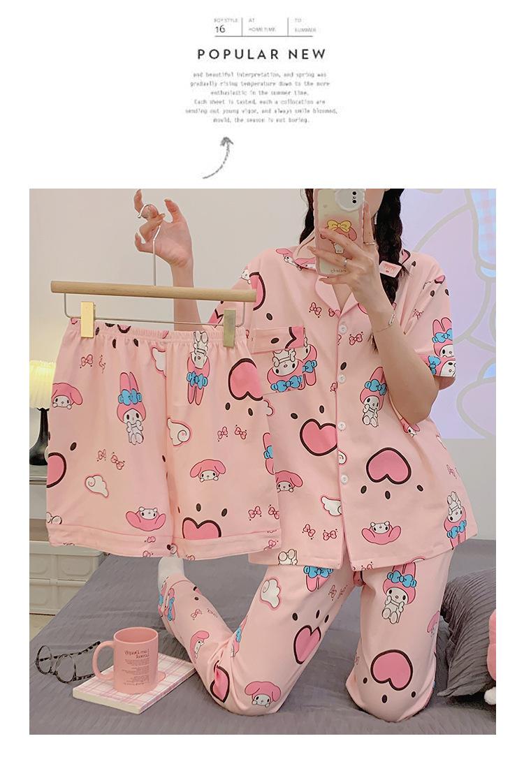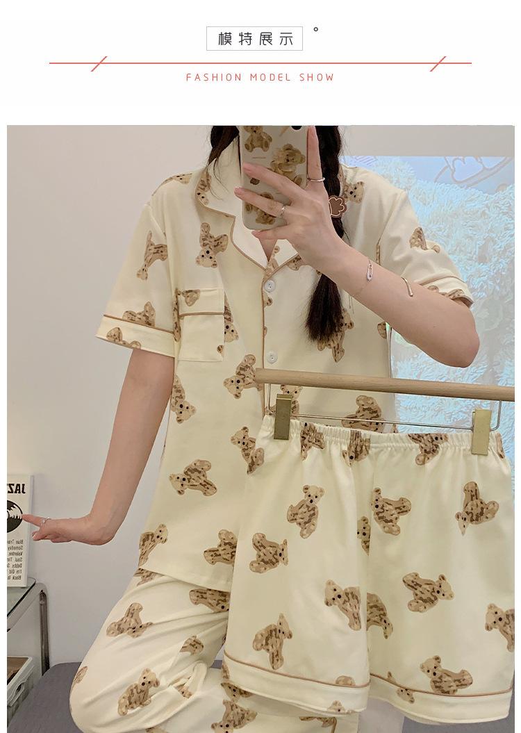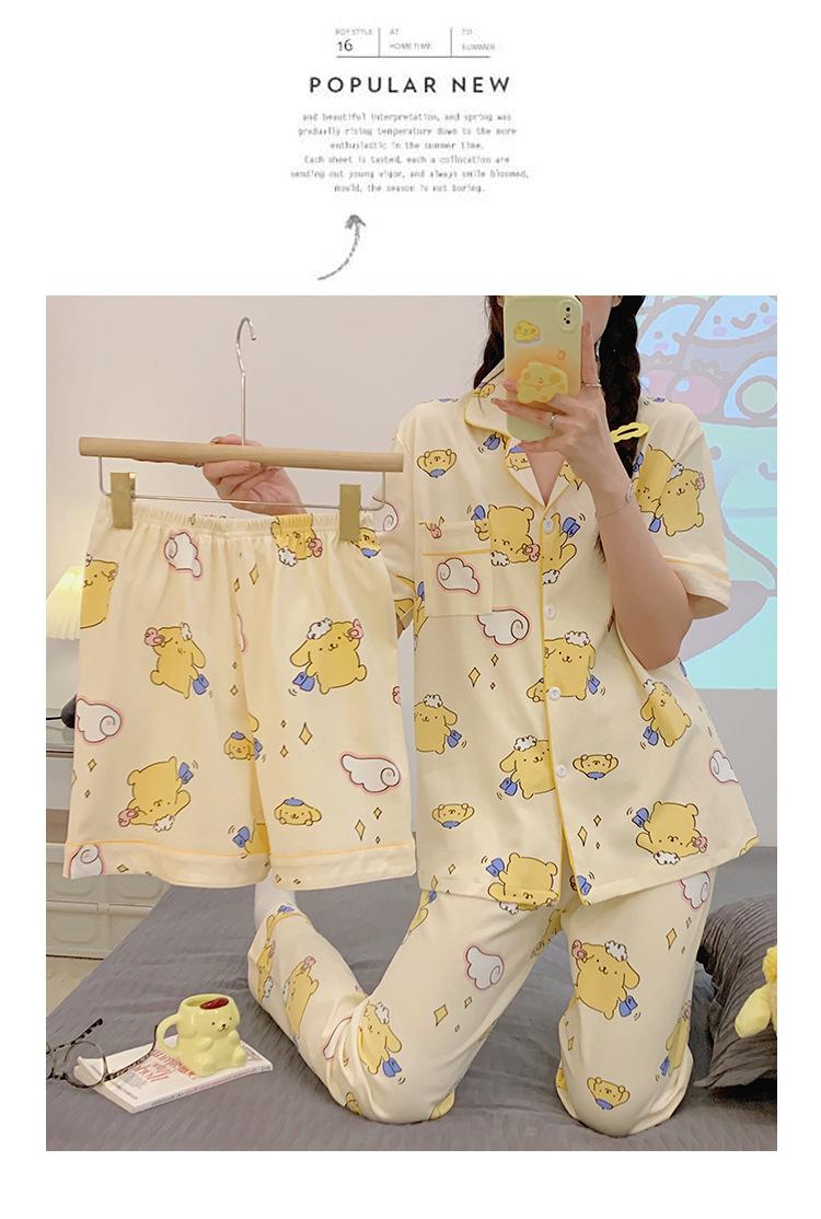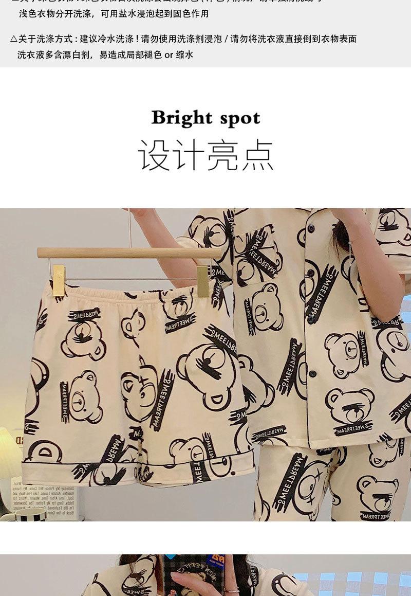 Verano Nuevo Pijama de Tres Piezas de Manga Corta para Mujer Estampado de Dibujos Animados Casual Solapa Cárdigan Ropa de Casa Dropshipping