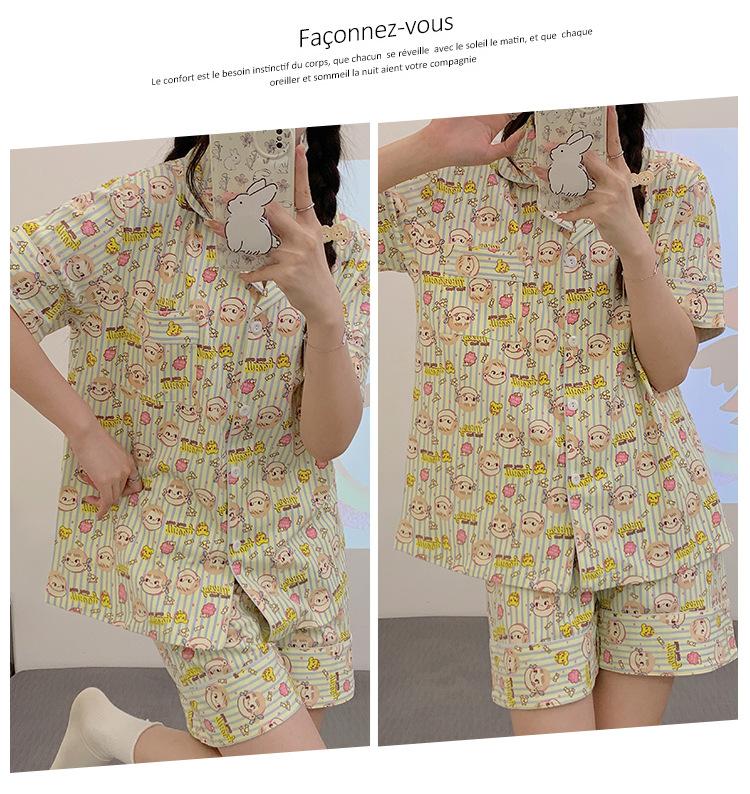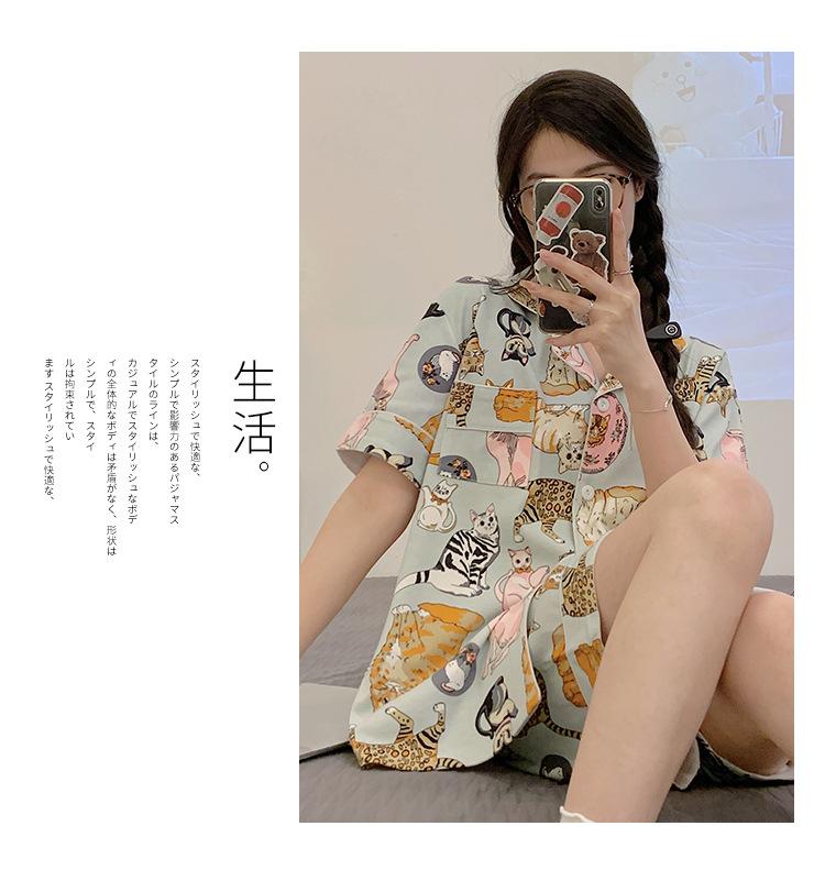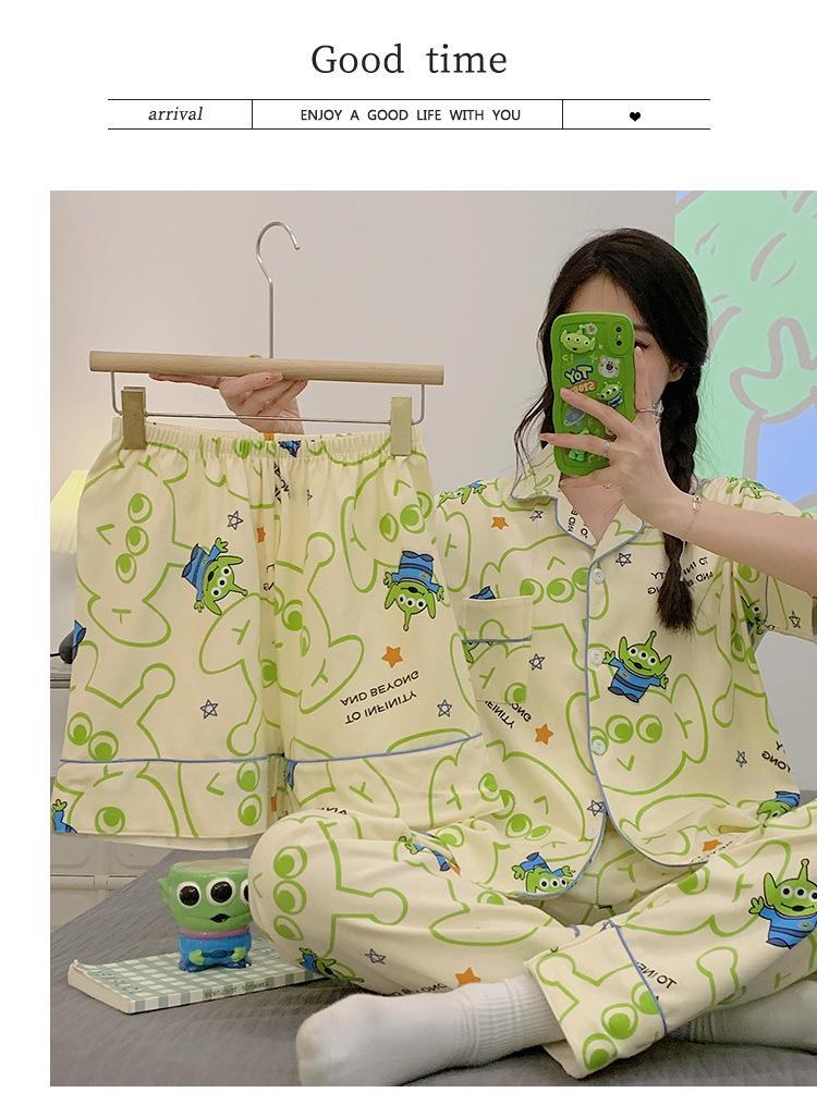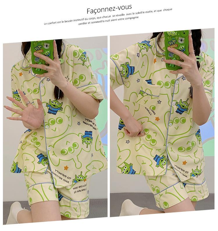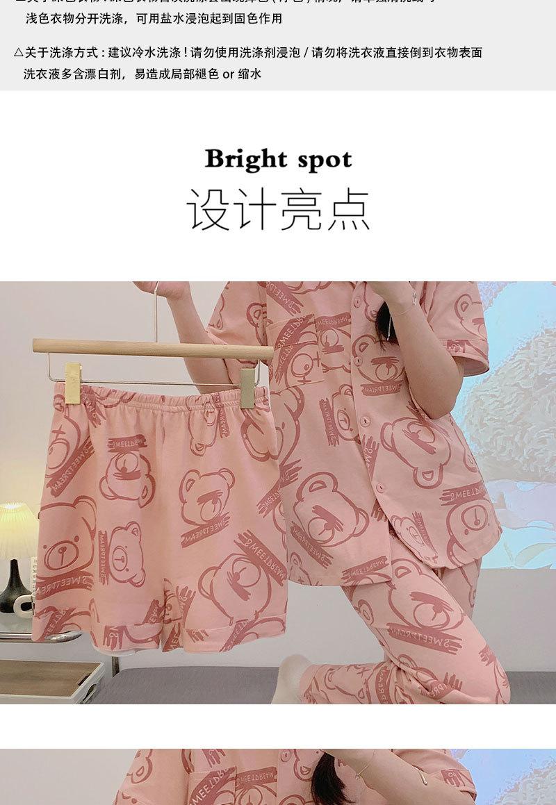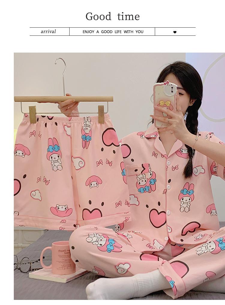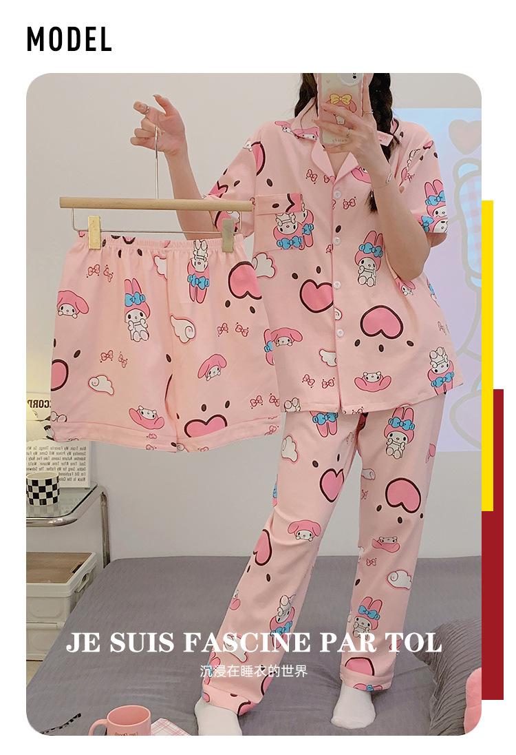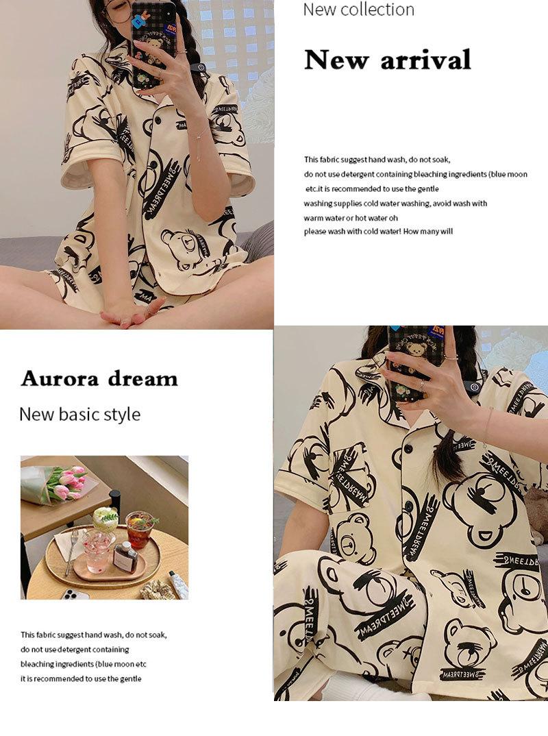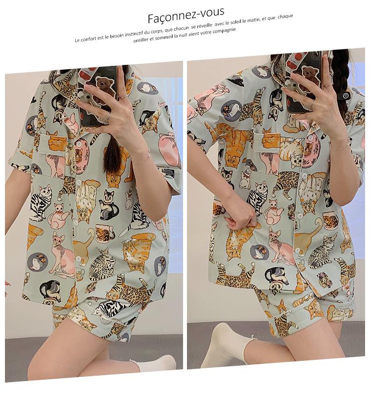 Verano Nuevo Pijama de Tres Piezas de Manga Corta para Mujer Estampado de Dibujos Animados Casual Solapa Cárdigan Ropa de Casa Dropshipping