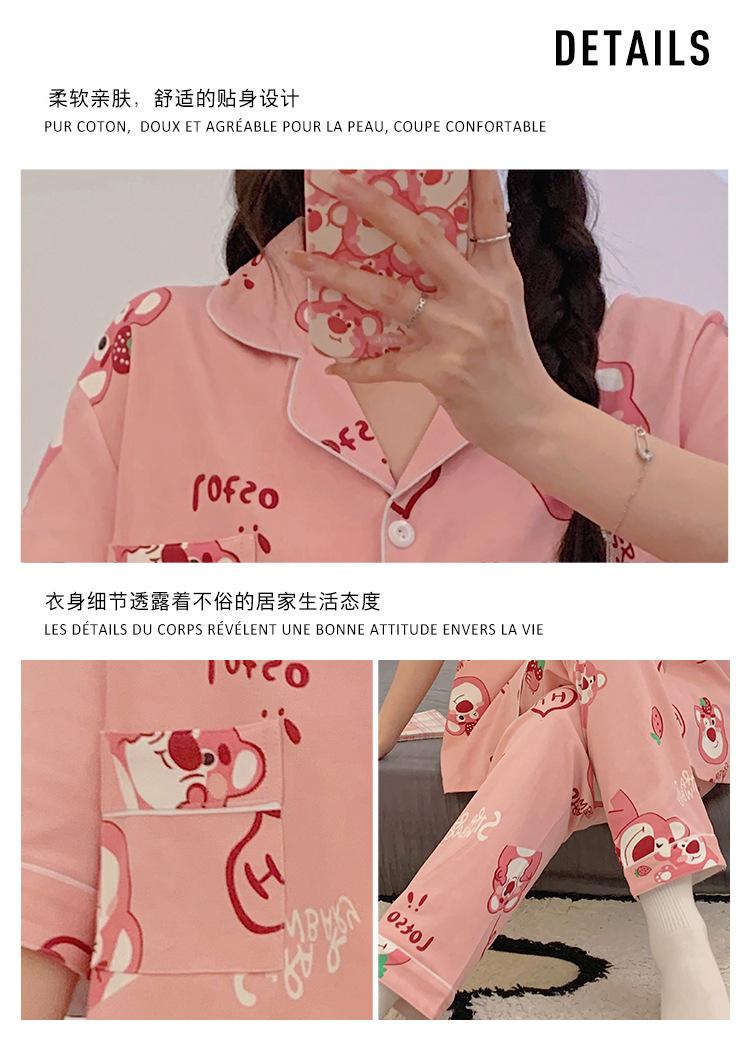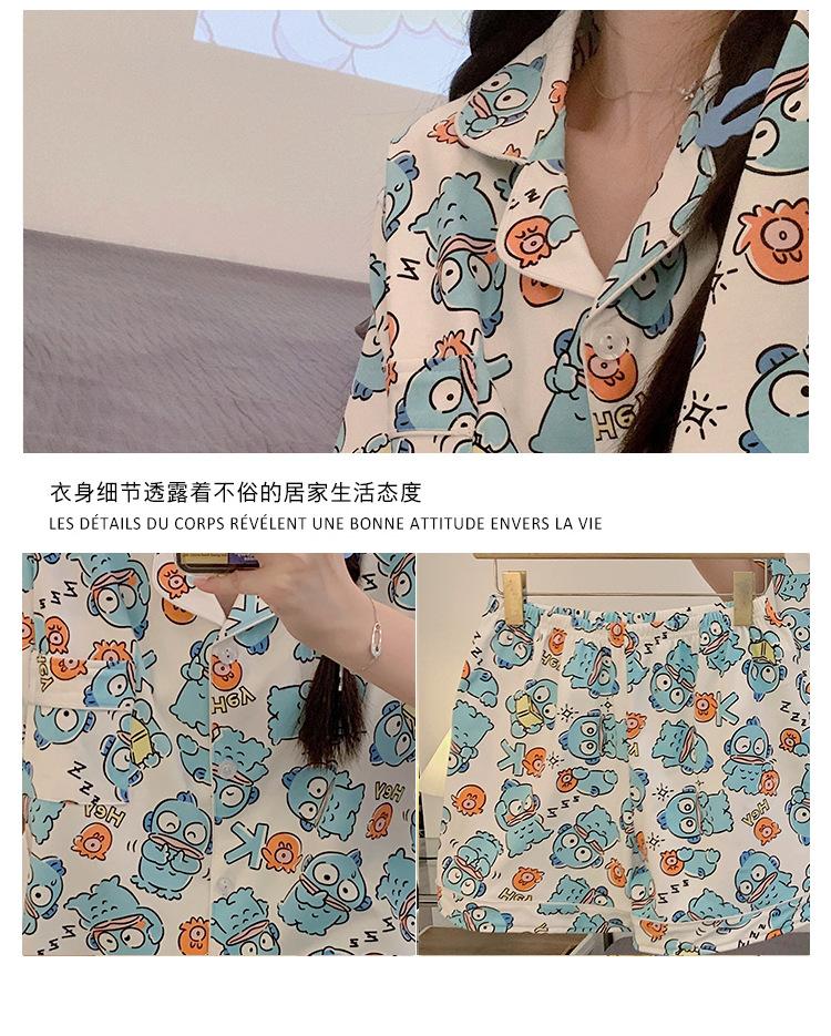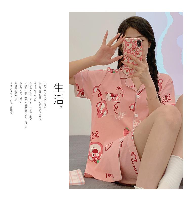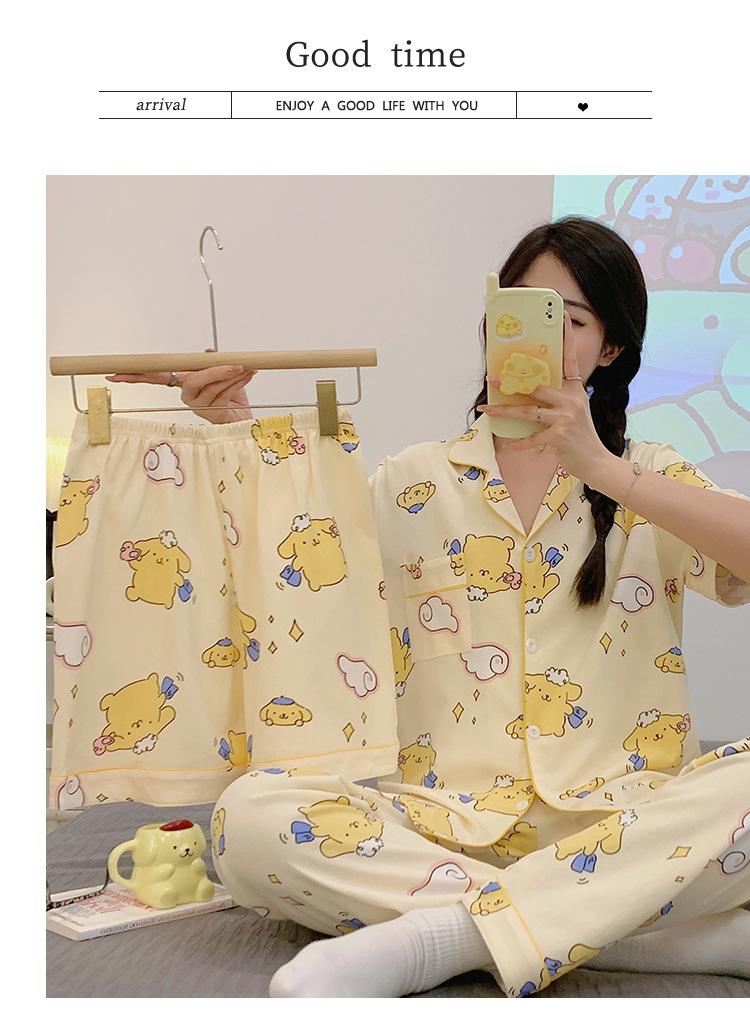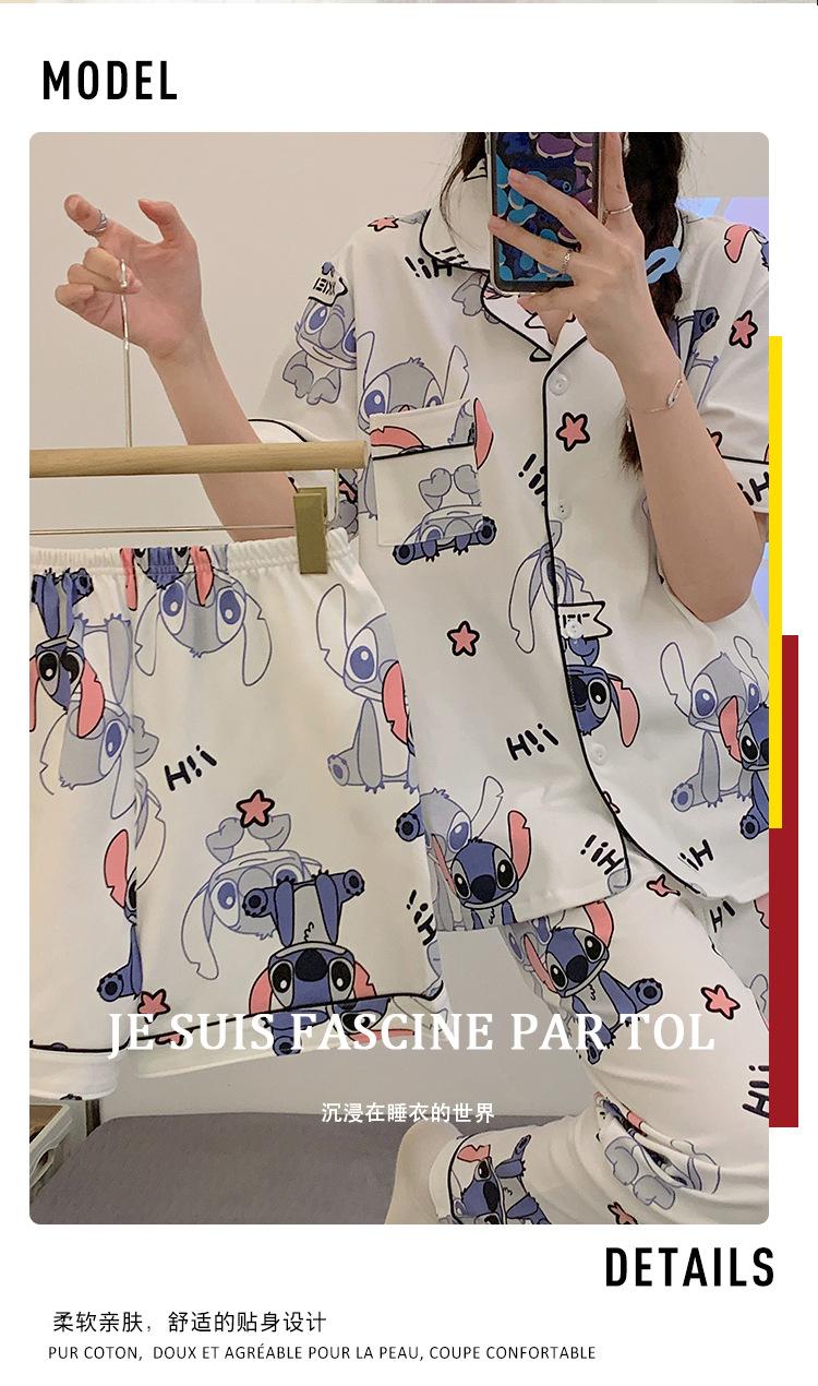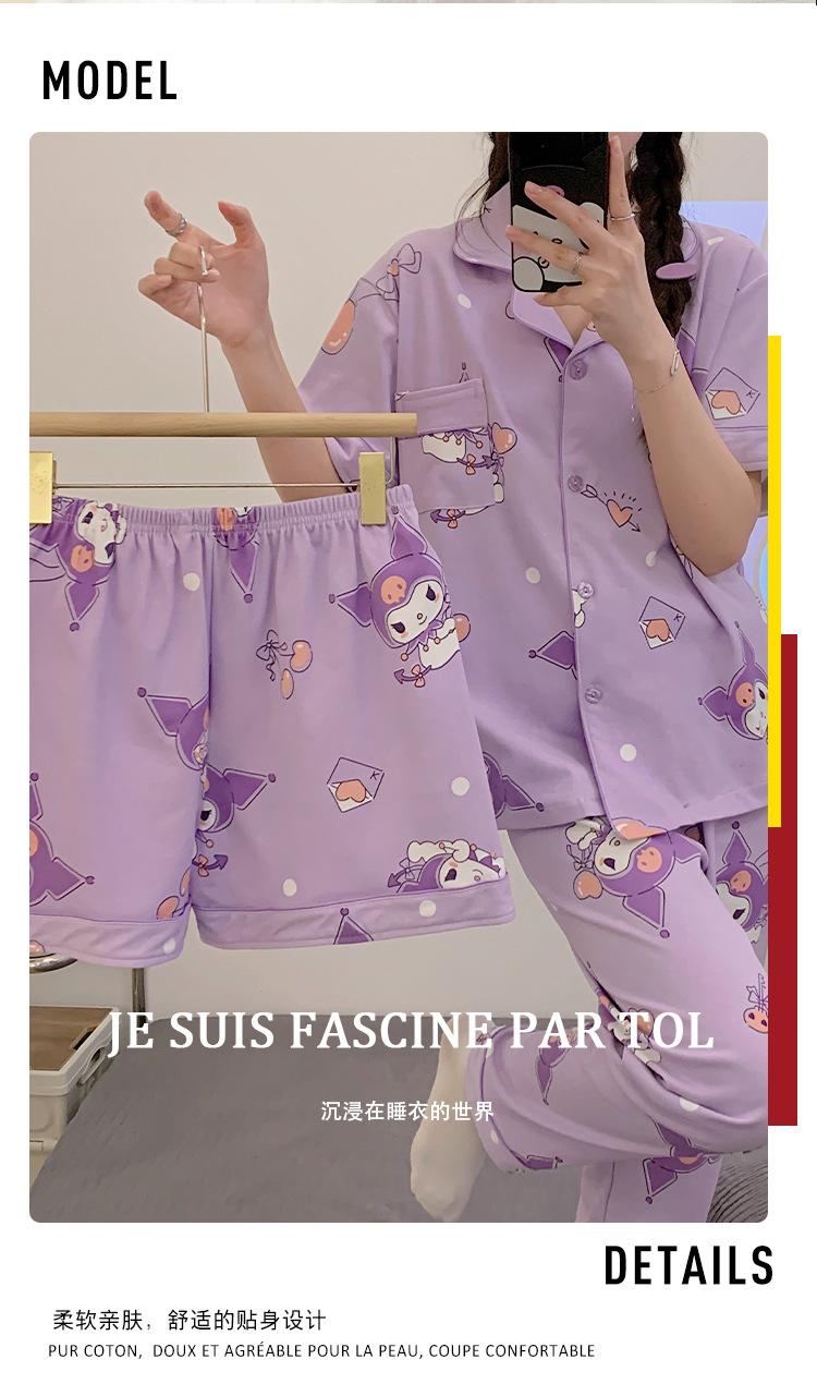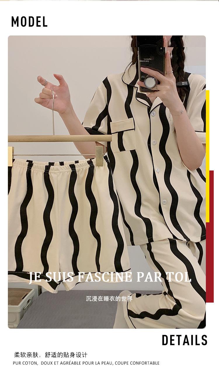 Verano Nuevo Pijama de Tres Piezas de Manga Corta para Mujer Estampado de Dibujos Animados Casual Solapa Cárdigan Ropa de Casa Dropshipping
