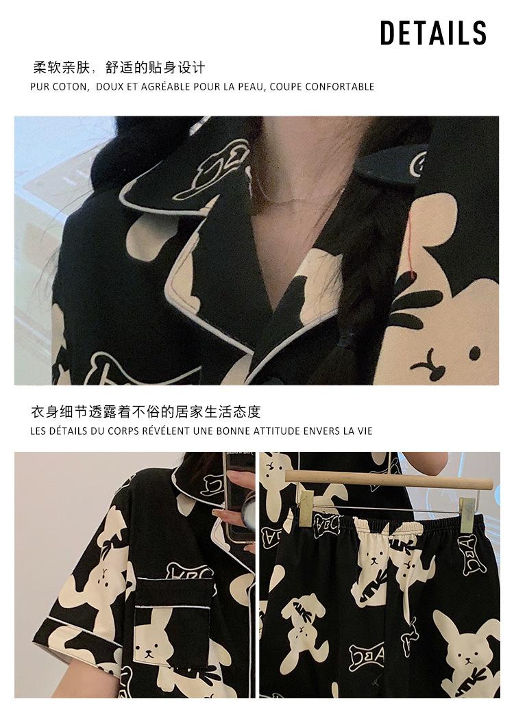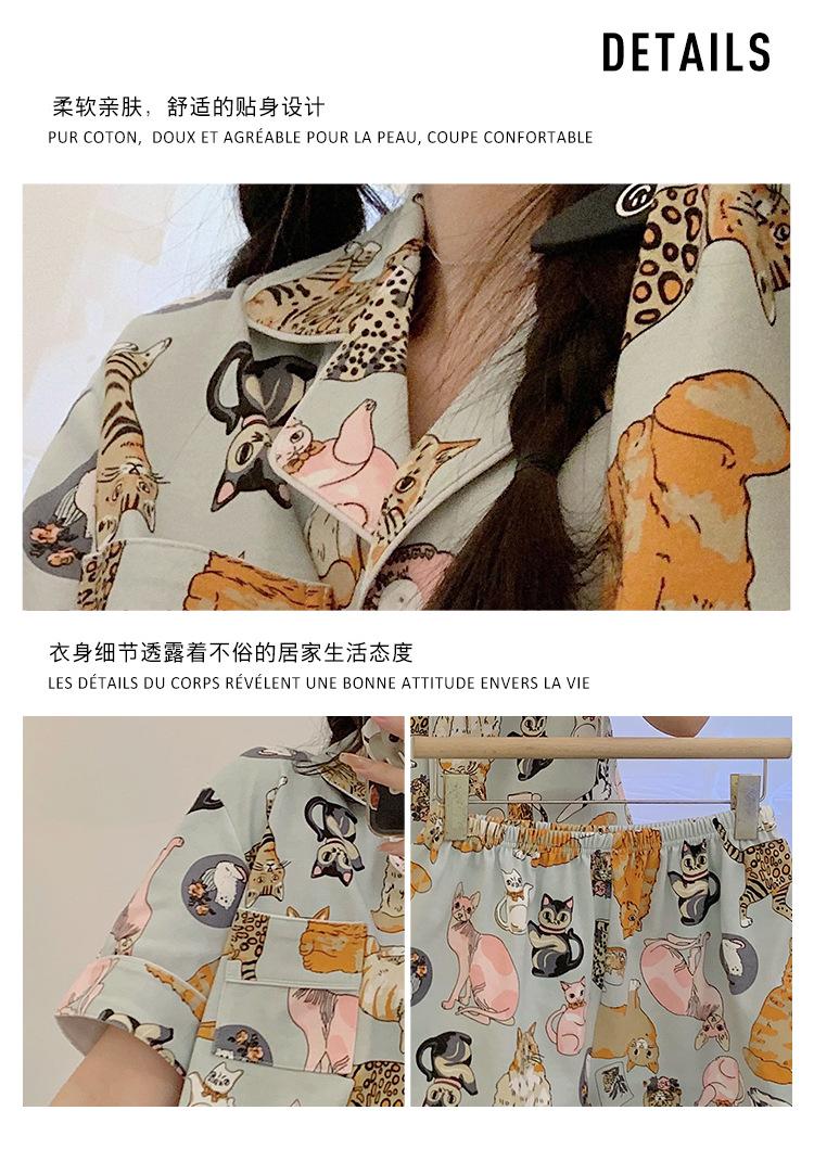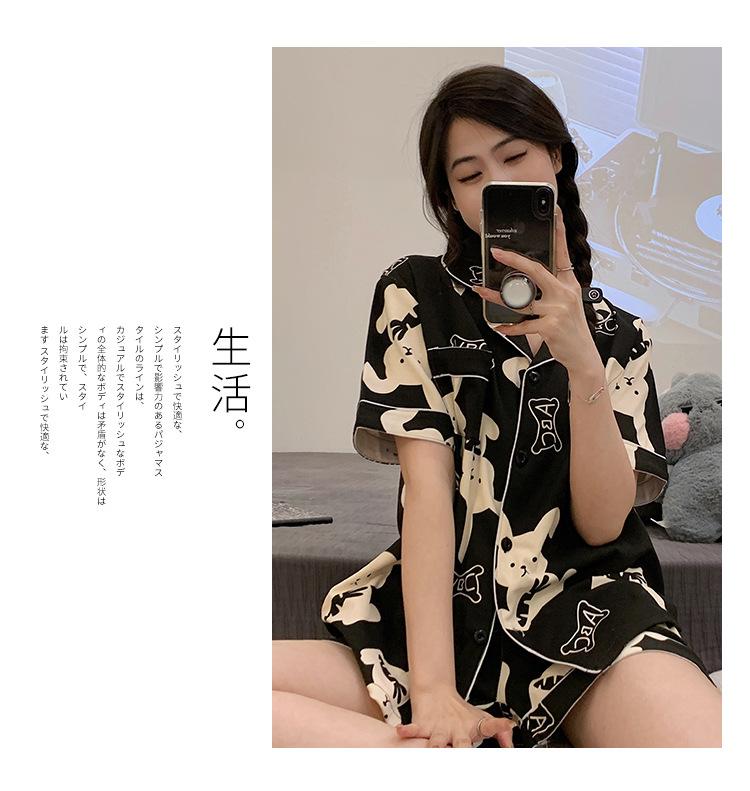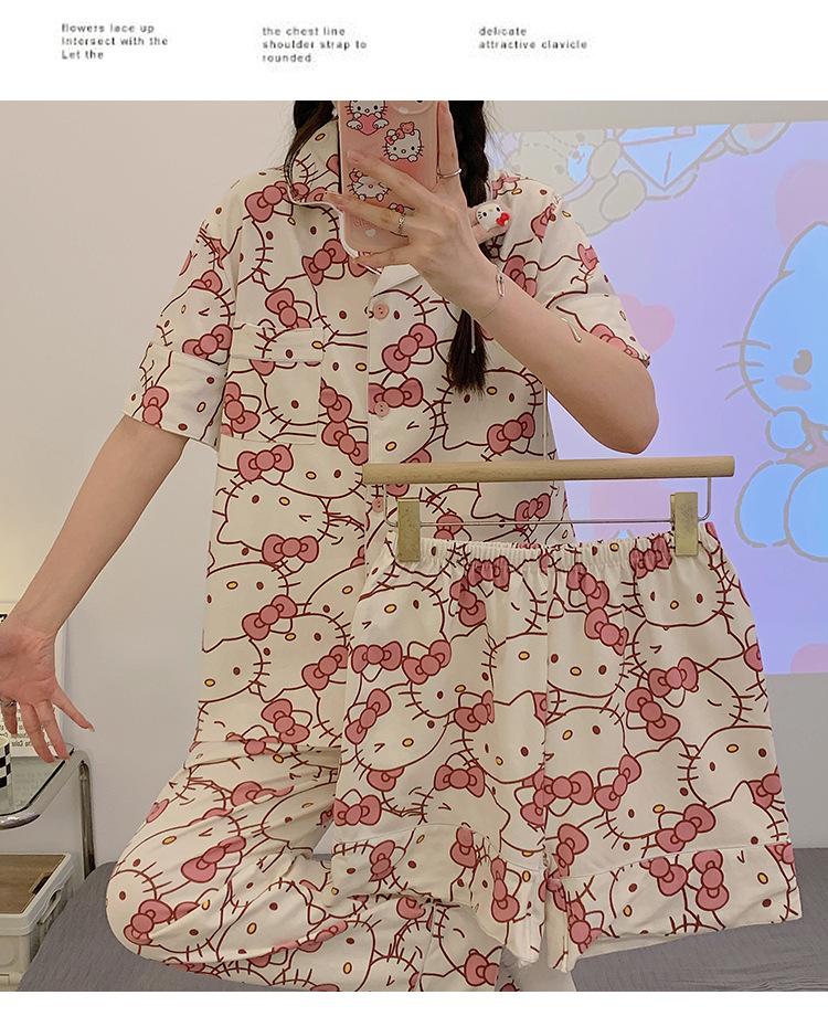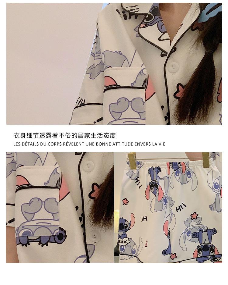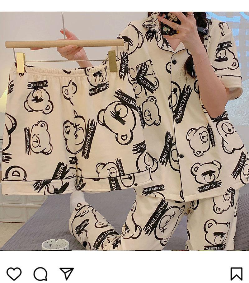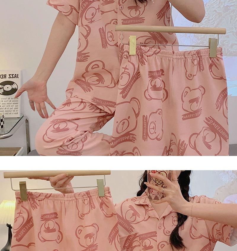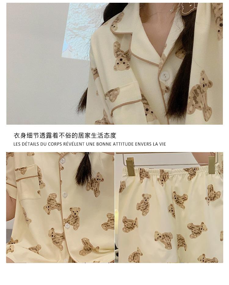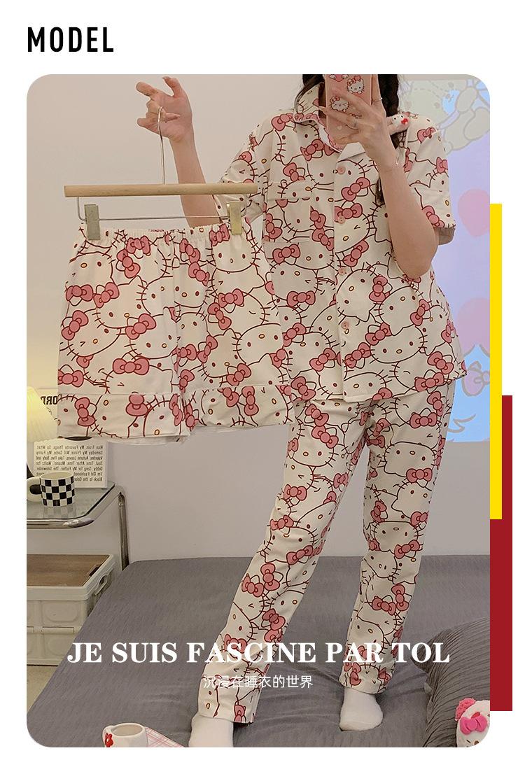 Verano Nuevo Pijama de Tres Piezas de Manga Corta para Mujer Estampado de Dibujos Animados Casual Solapa Cárdigan Ropa de Casa Dropshipping