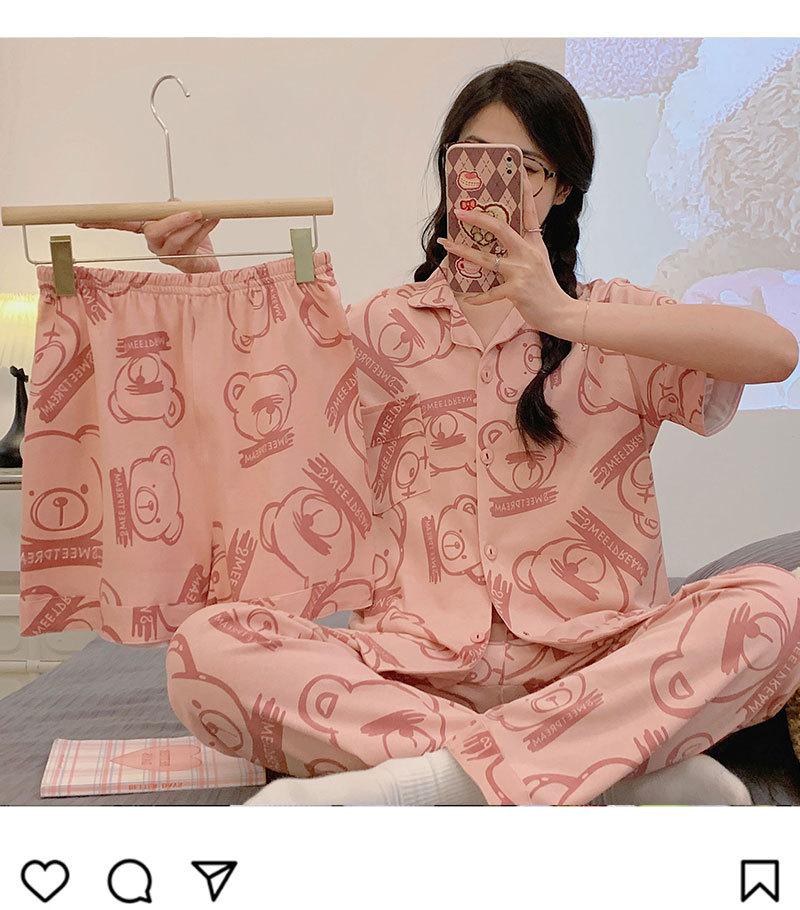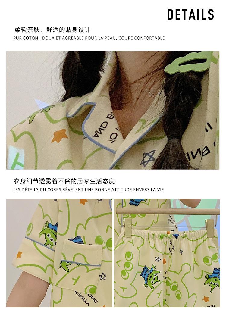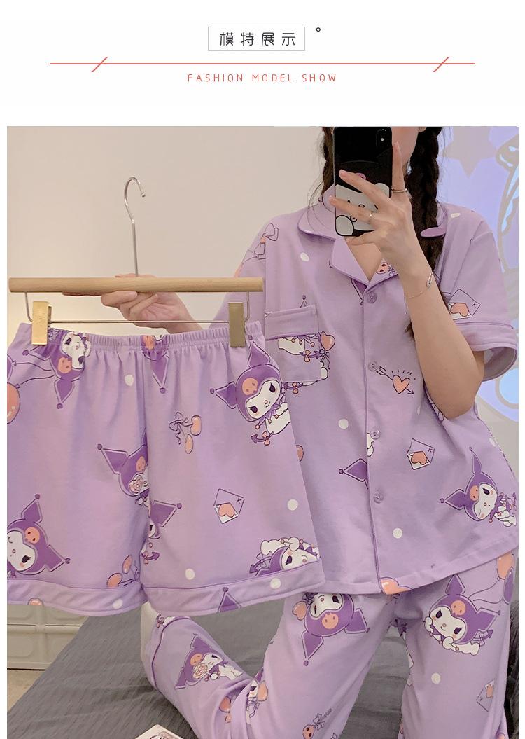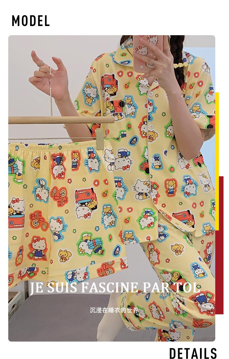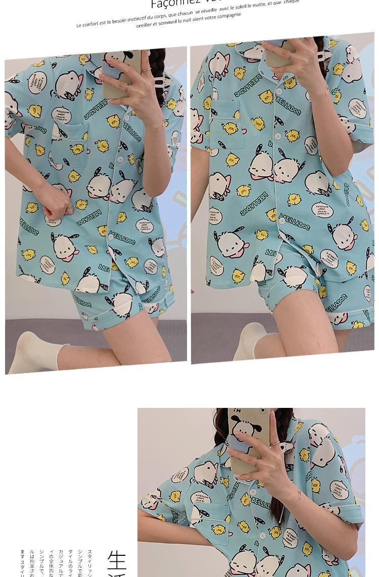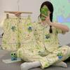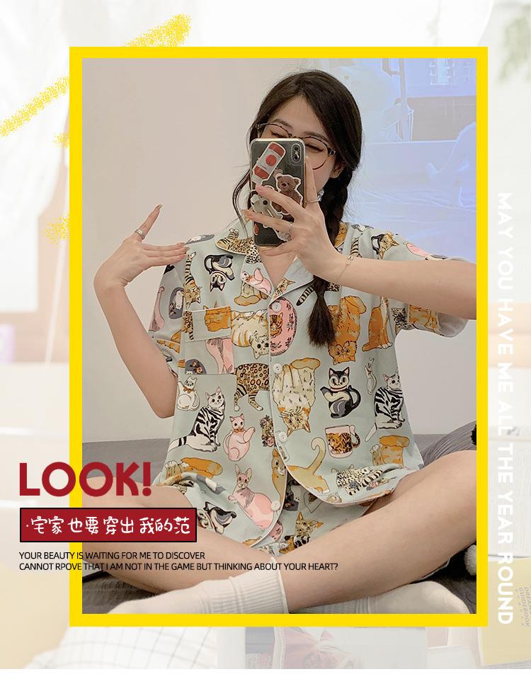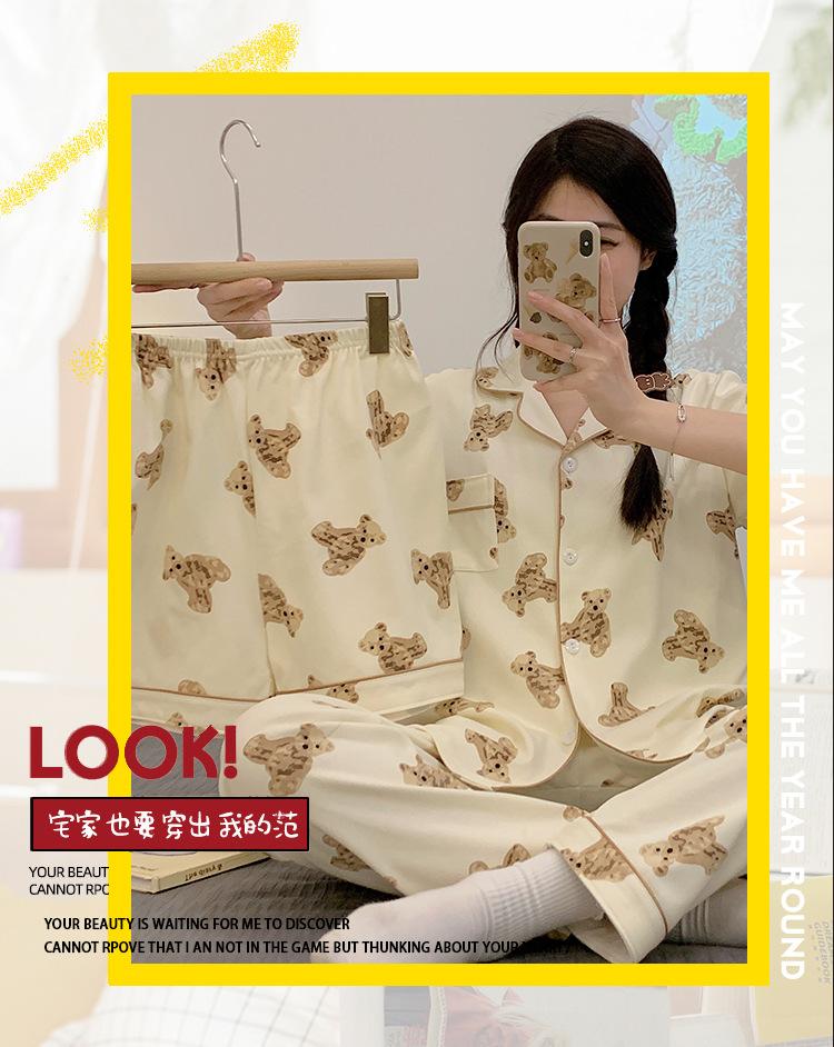 Verano Nuevo Pijama de Tres Piezas de Manga Corta para Mujer Estampado de Dibujos Animados Casual Solapa Cárdigan Ropa de Casa Dropshipping
