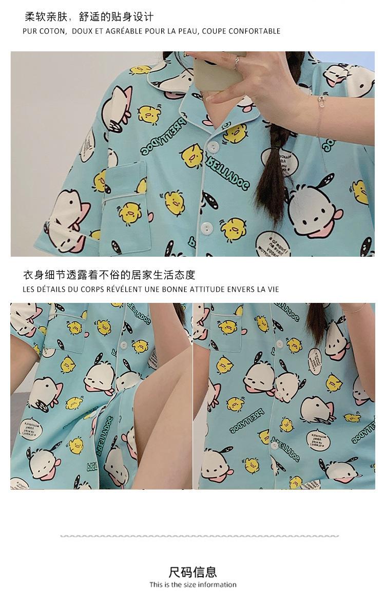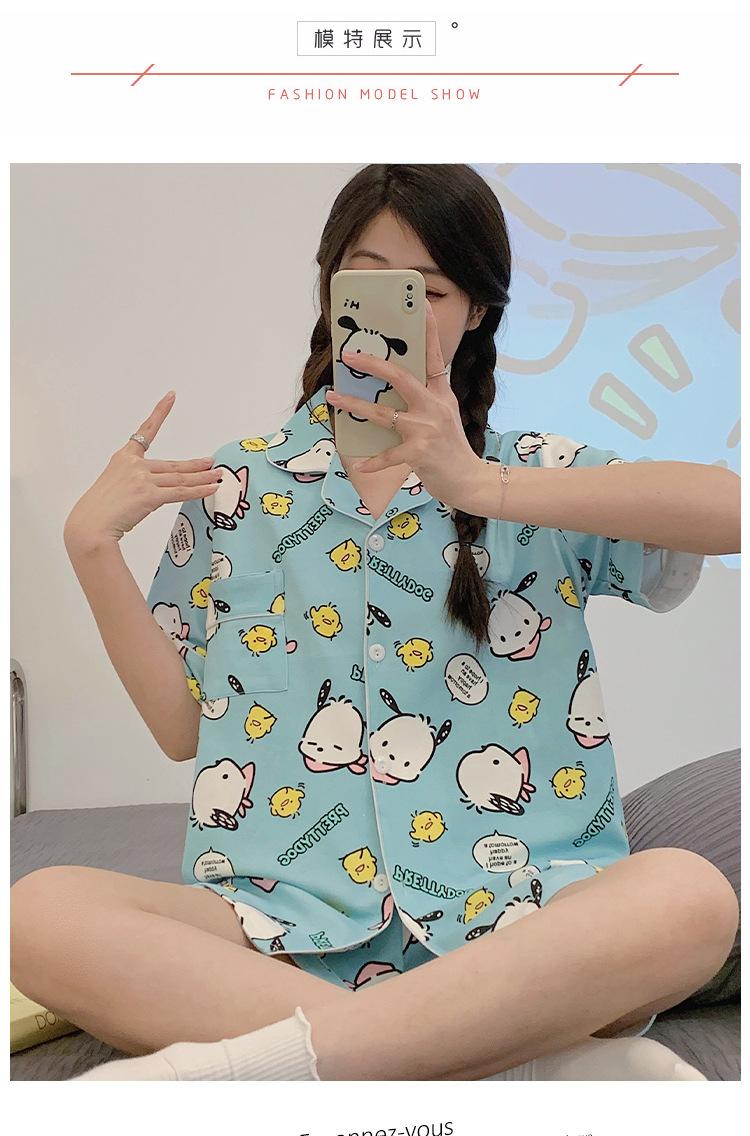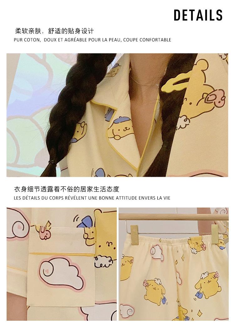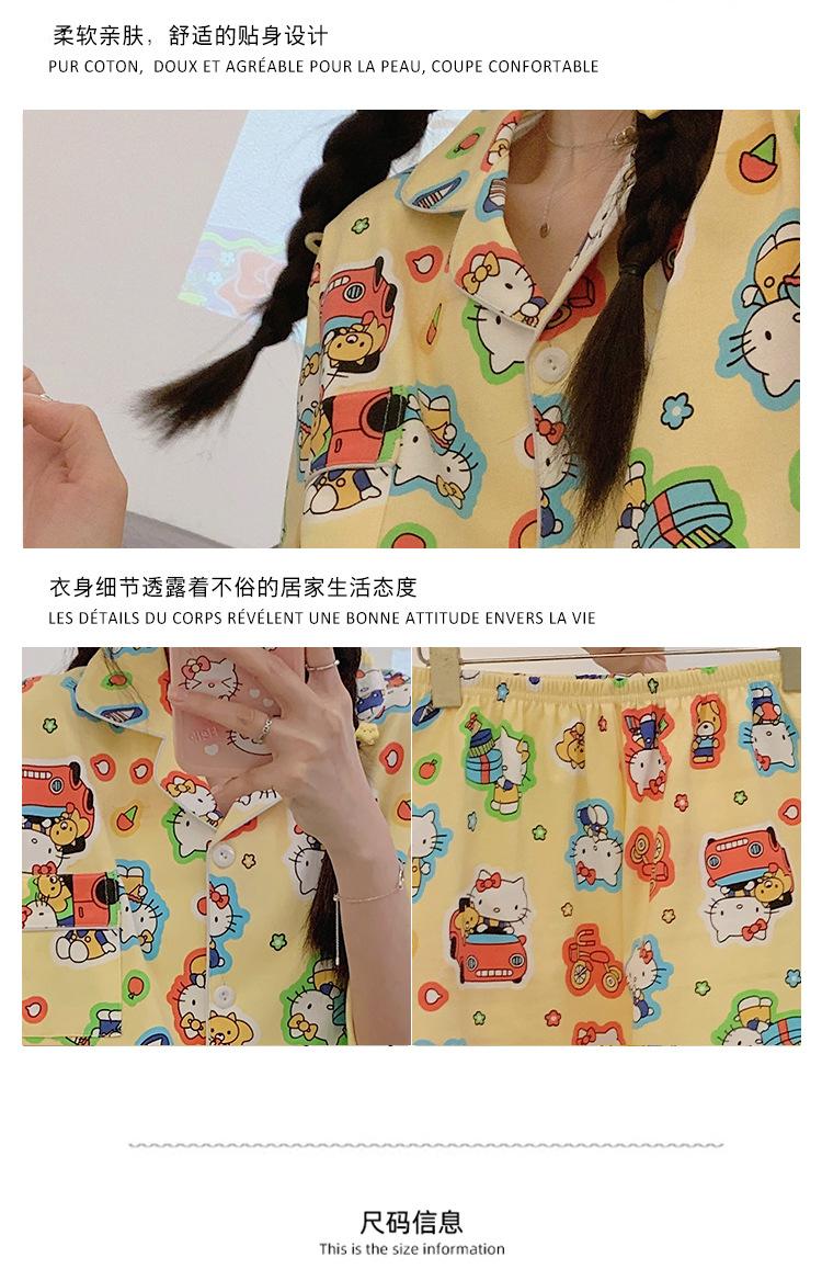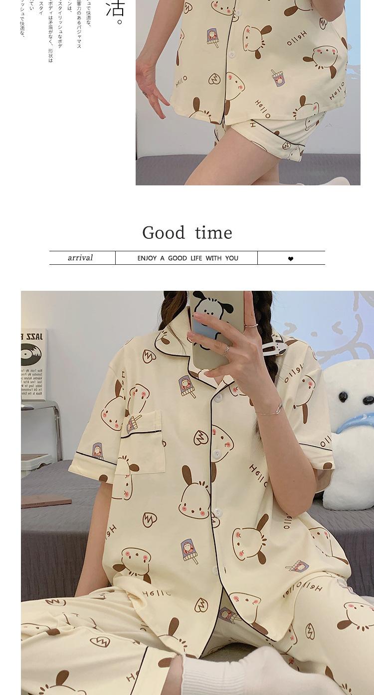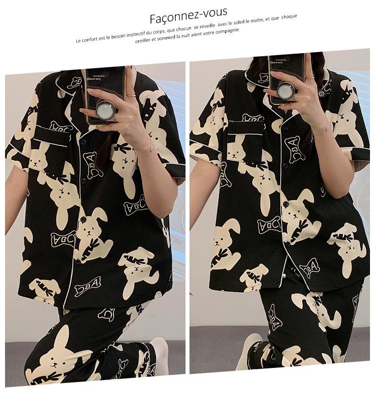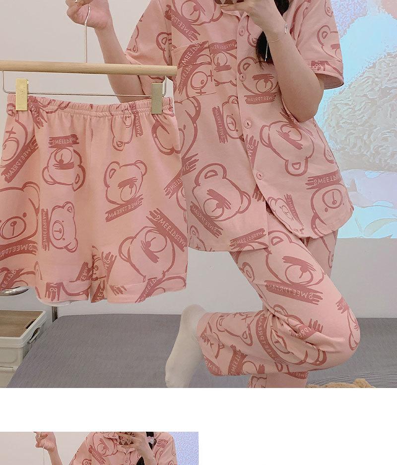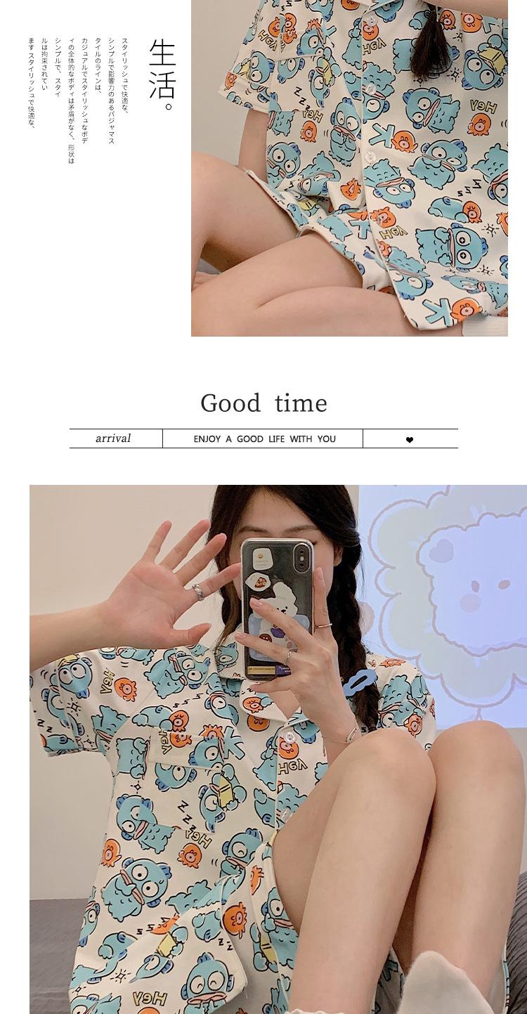 Verano Nuevo Pijama de Tres Piezas de Manga Corta para Mujer Estampado de Dibujos Animados Casual Solapa Cárdigan Ropa de Casa Dropshipping