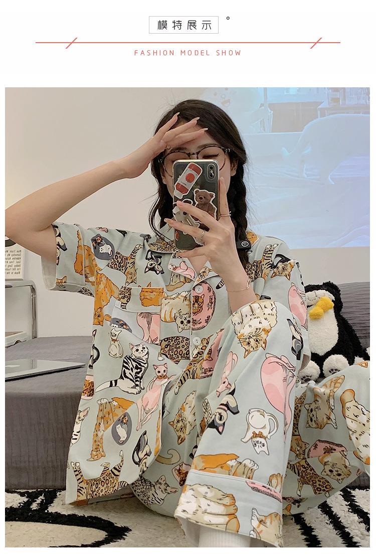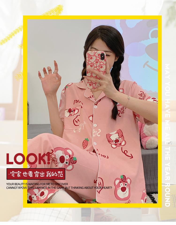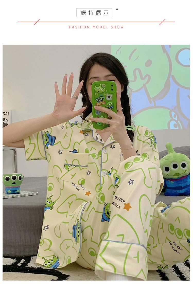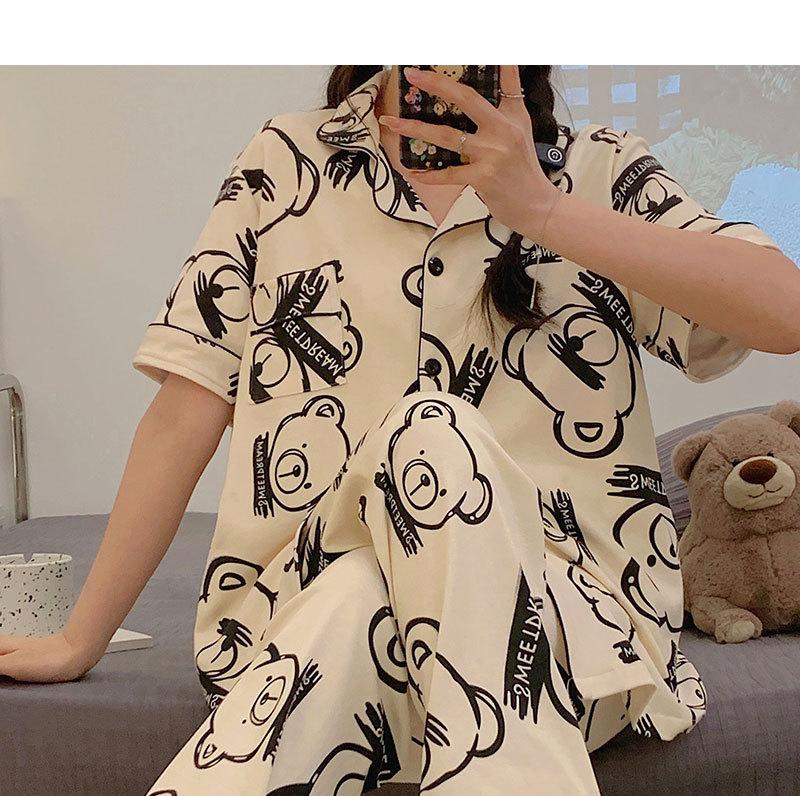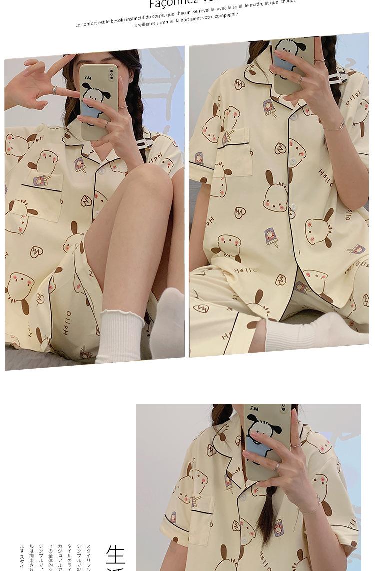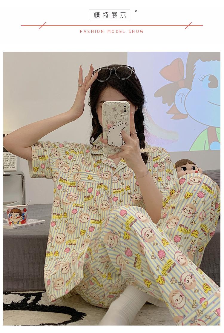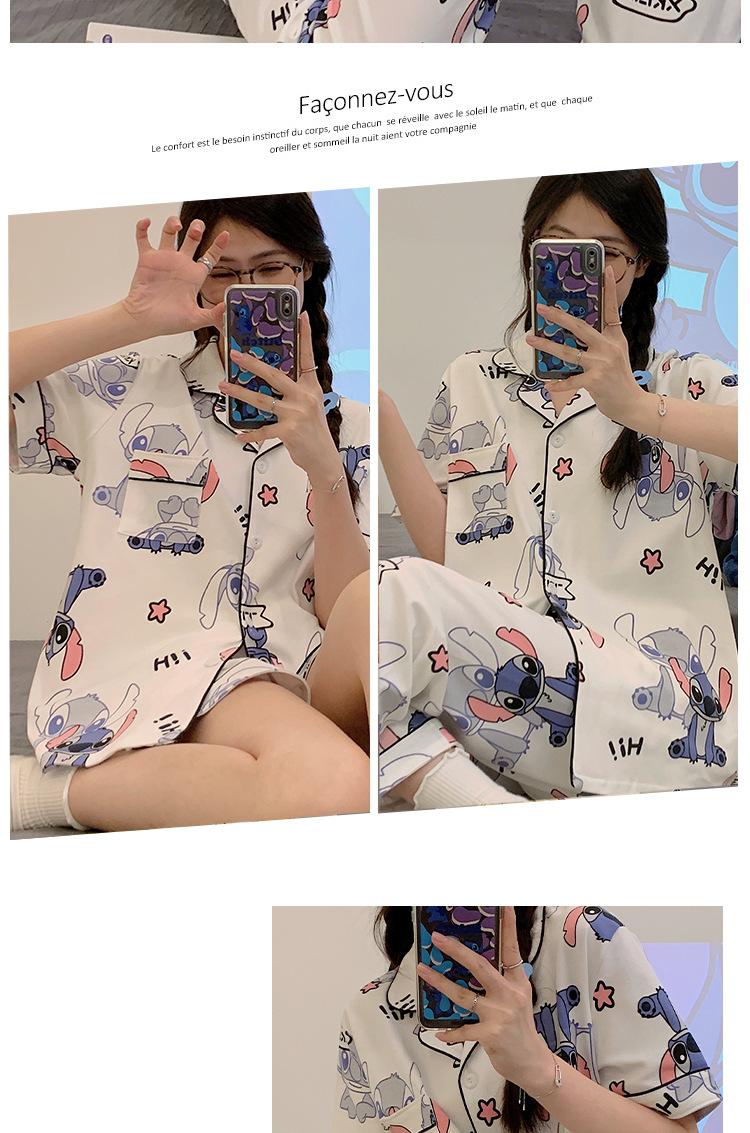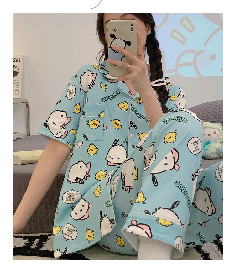 Verano Nuevo Pijama de Tres Piezas de Manga Corta para Mujer Estampado de Dibujos Animados Casual Solapa Cárdigan Ropa de Casa Dropshipping