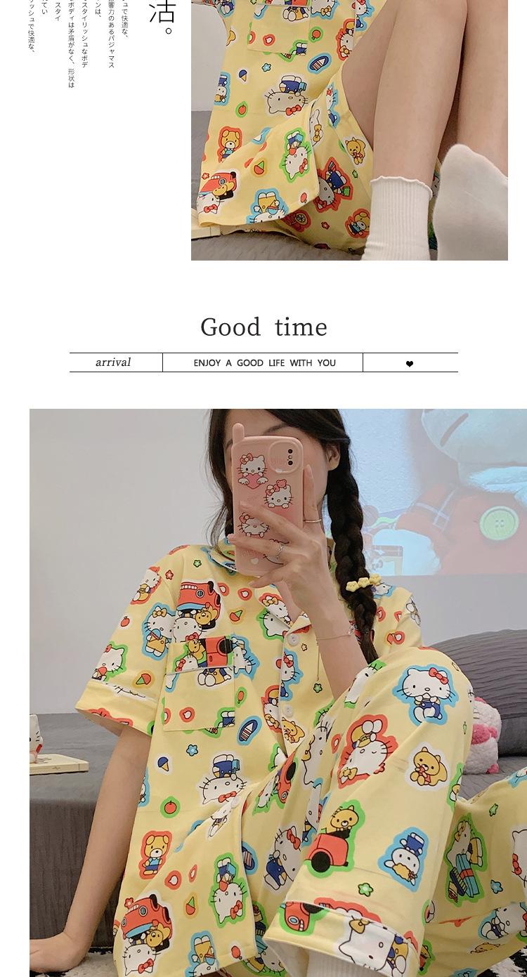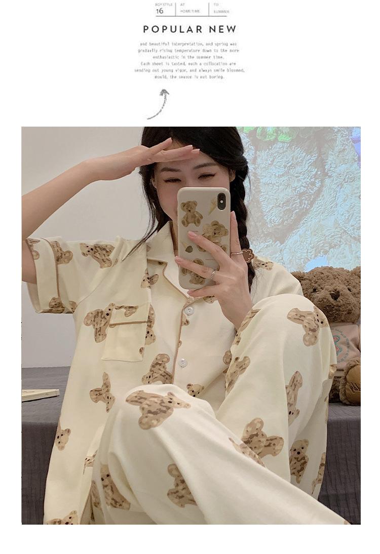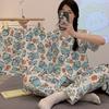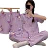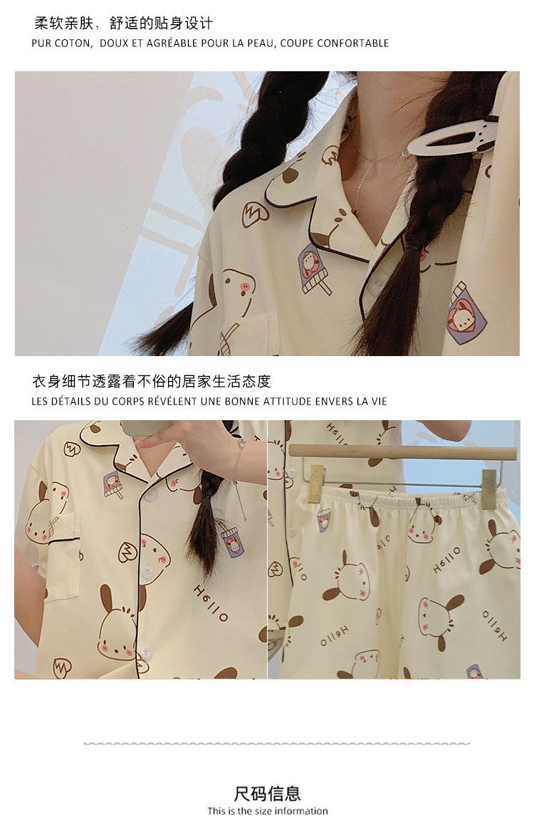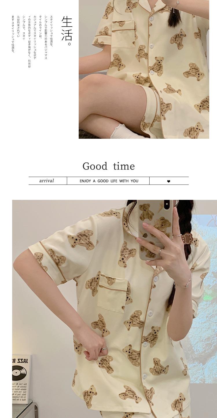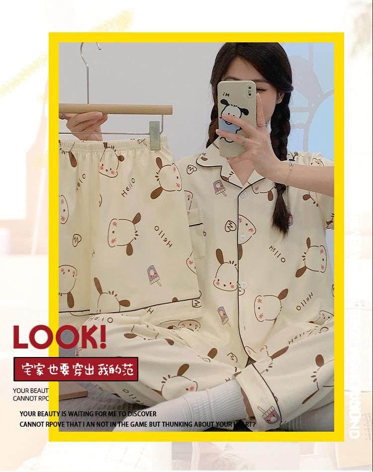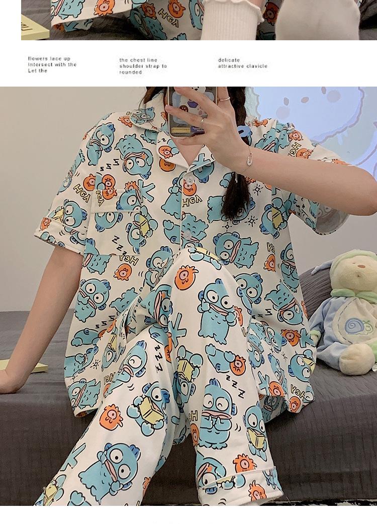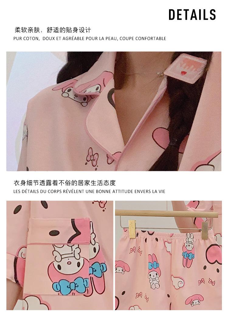 Verano Nuevo Pijama de Tres Piezas de Manga Corta para Mujer Estampado de Dibujos Animados Casual Solapa Cárdigan Ropa de Casa Dropshipping