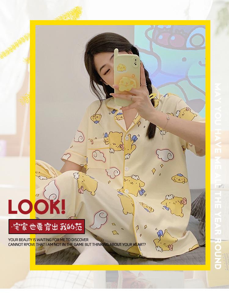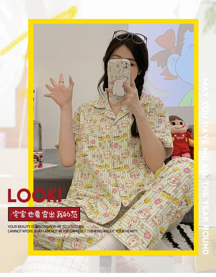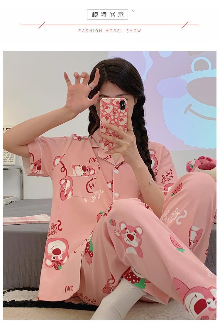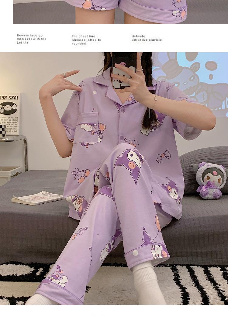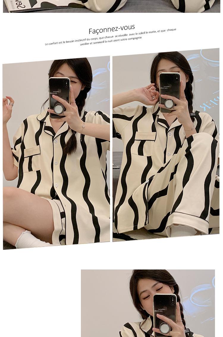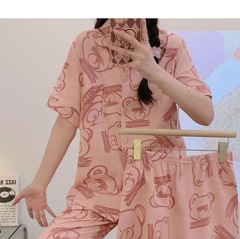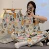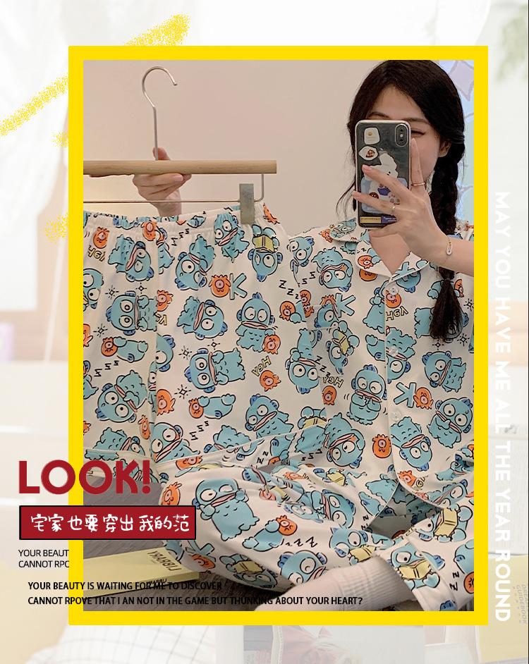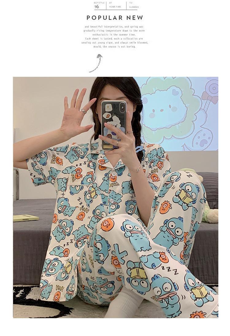 Verano Nuevo Pijama de Tres Piezas de Manga Corta para Mujer Estampado de Dibujos Animados Casual Solapa Cárdigan Ropa de Casa Dropshipping