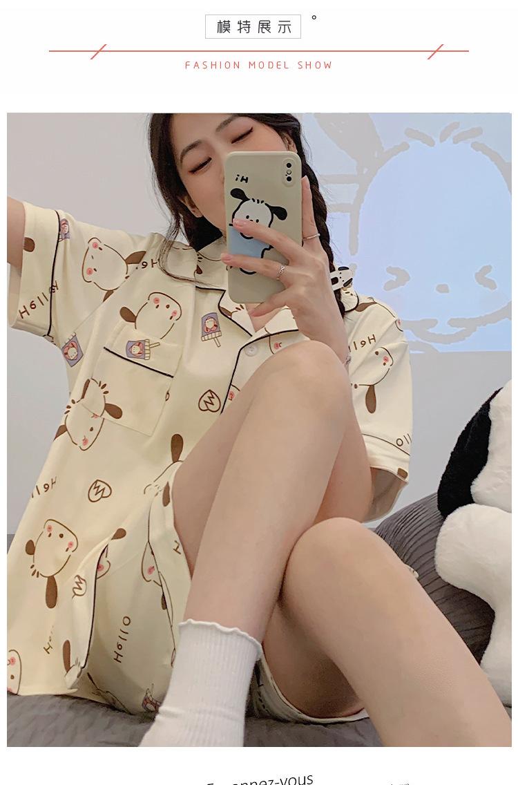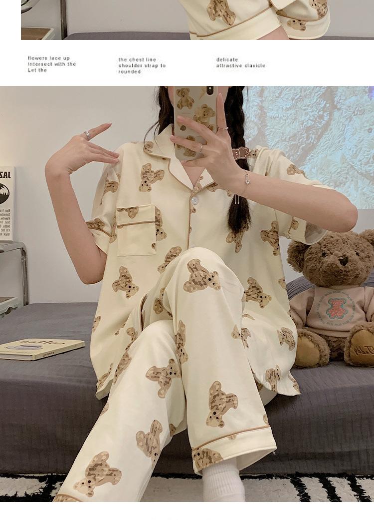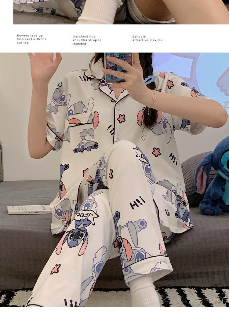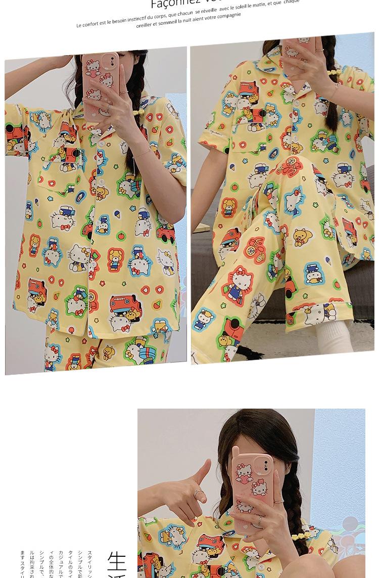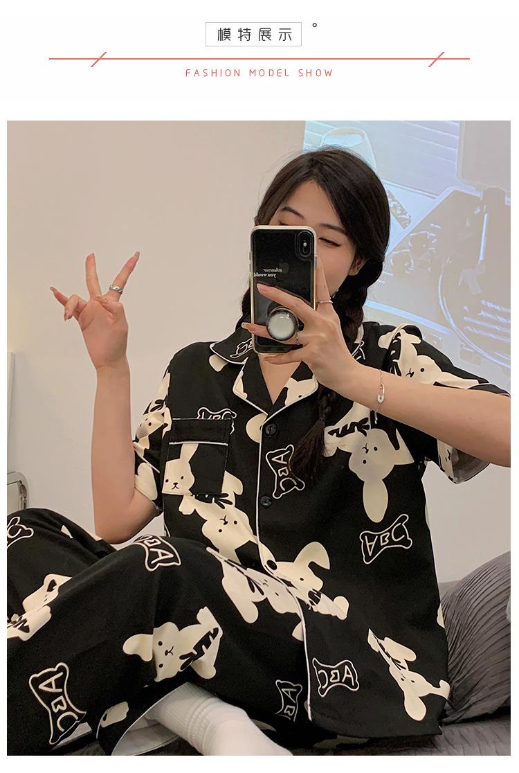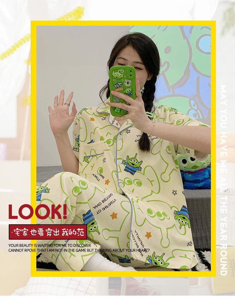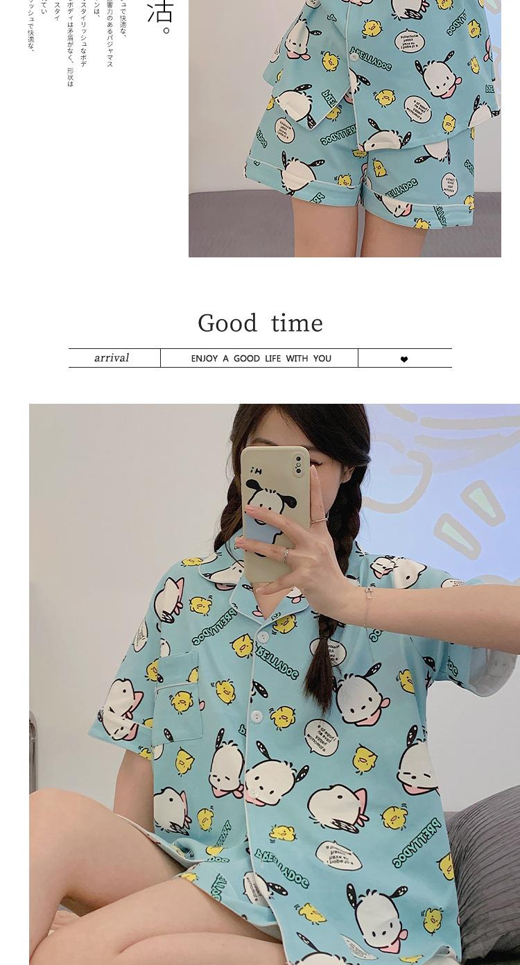 Verano Nuevo Pijama de Tres Piezas de Manga Corta para Mujer Estampado de Dibujos Animados Casual Solapa Cárdigan Ropa de Casa Dropshipping