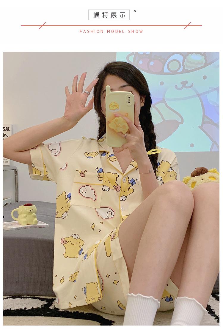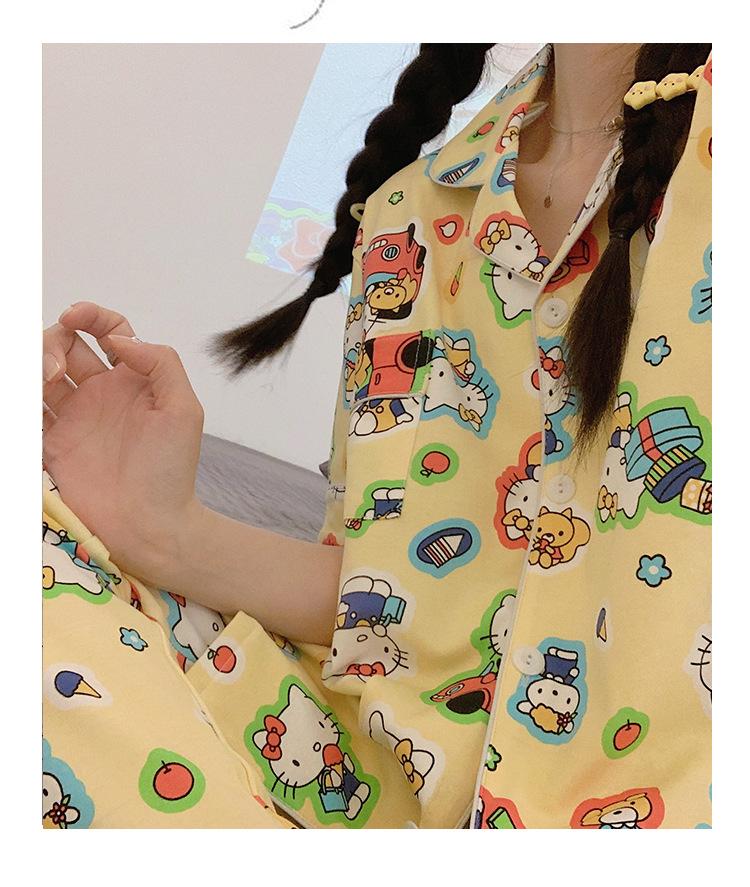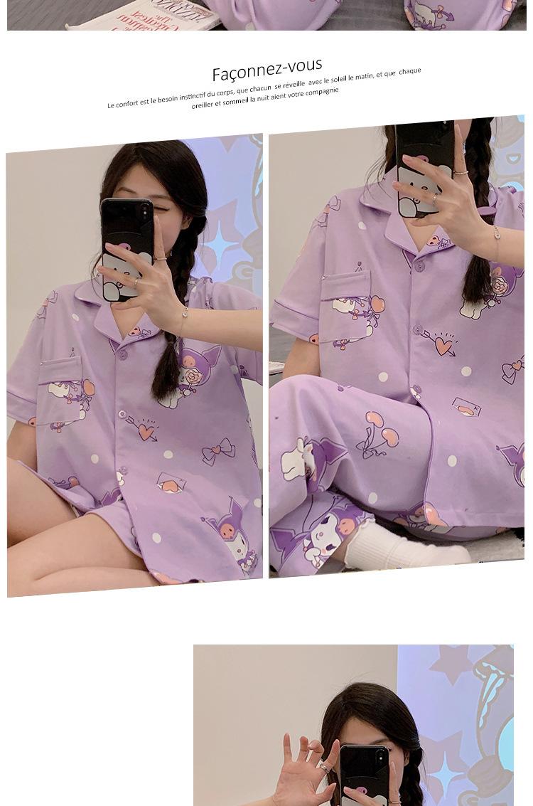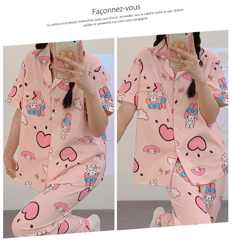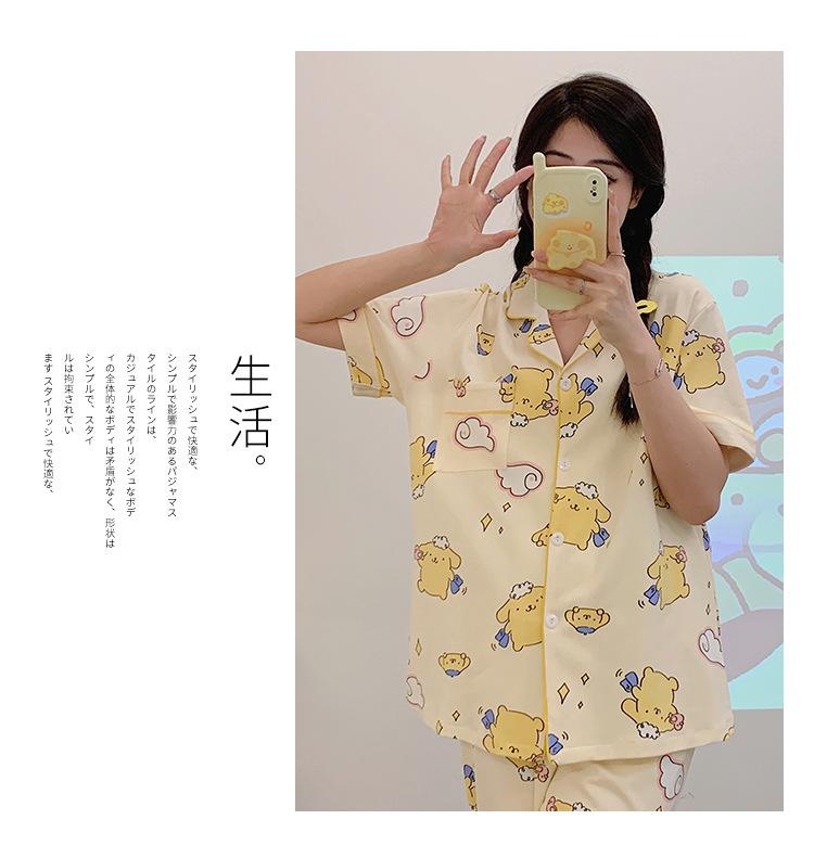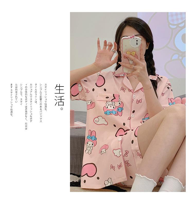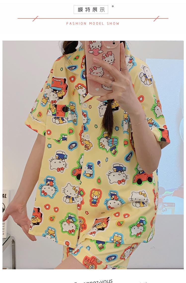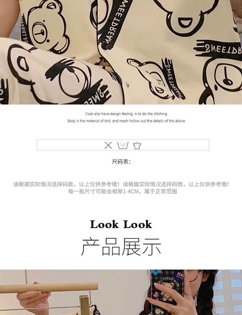 Verano Nuevo Pijama de Tres Piezas de Manga Corta para Mujer Estampado de Dibujos Animados Casual Solapa Cárdigan Ropa de Casa Dropshipping