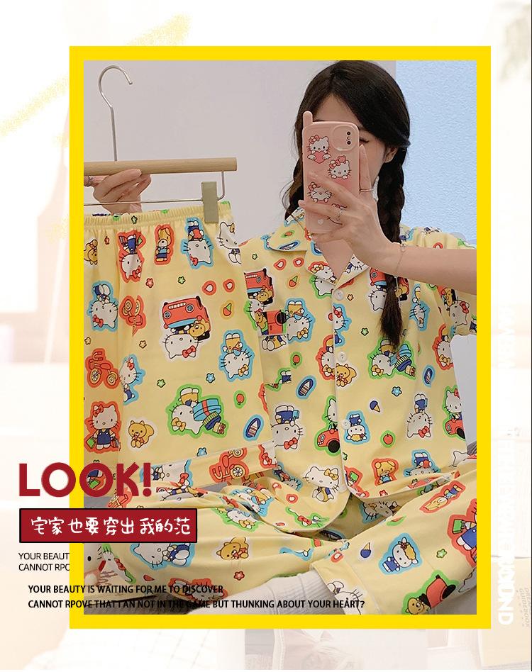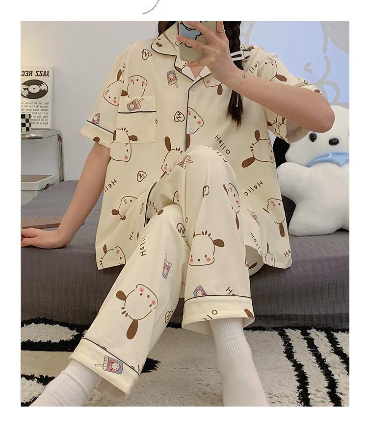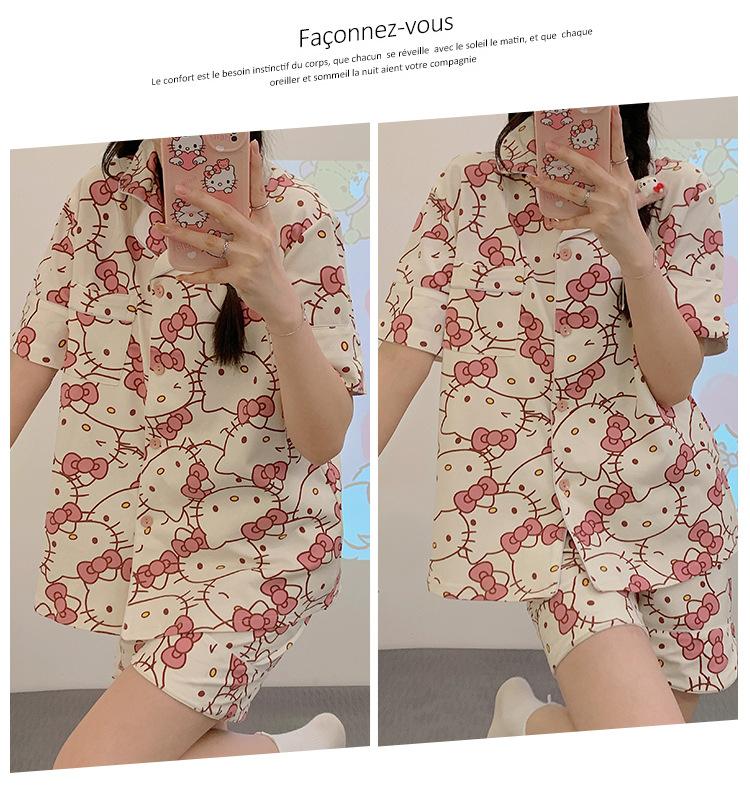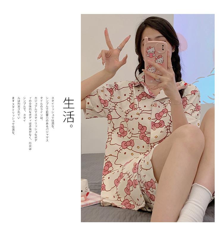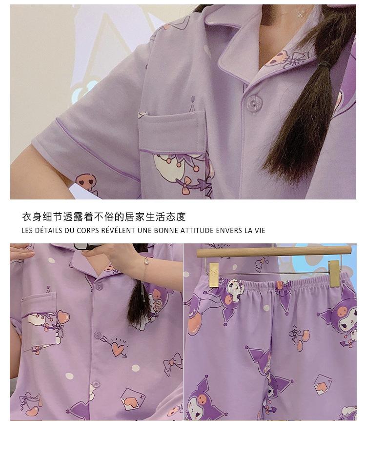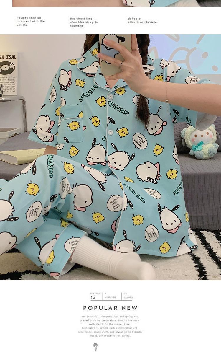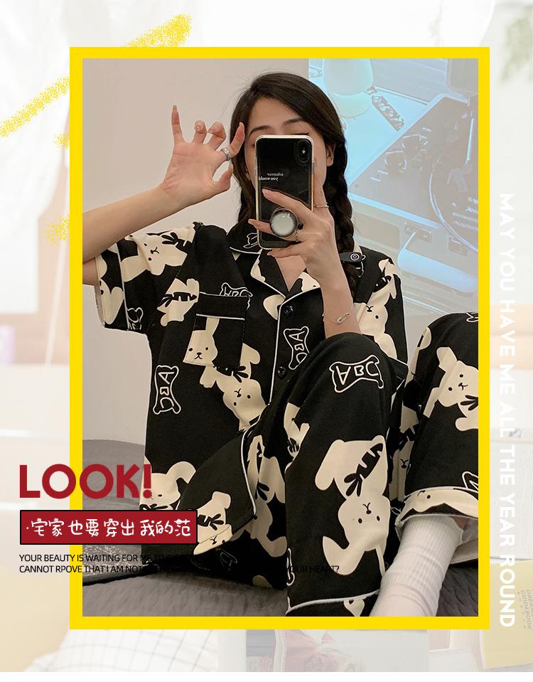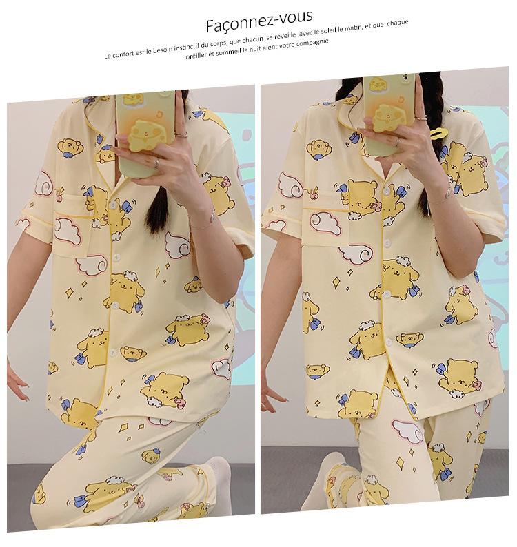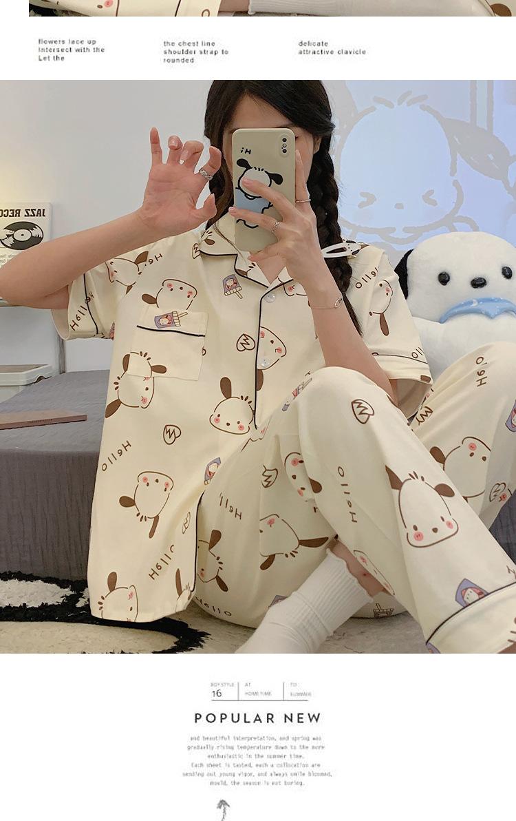 Verano Nuevo Pijama de Tres Piezas de Manga Corta para Mujer Estampado de Dibujos Animados Casual Solapa Cárdigan Ropa de Casa Dropshipping
