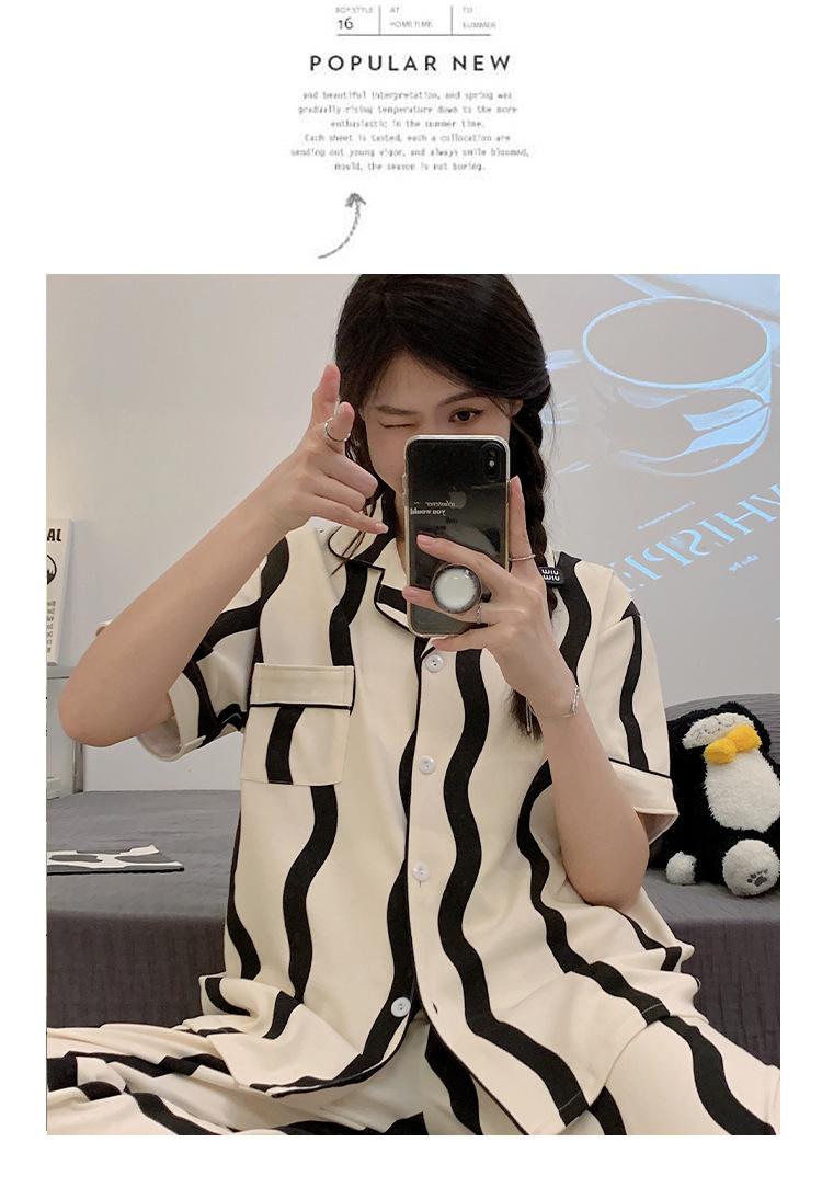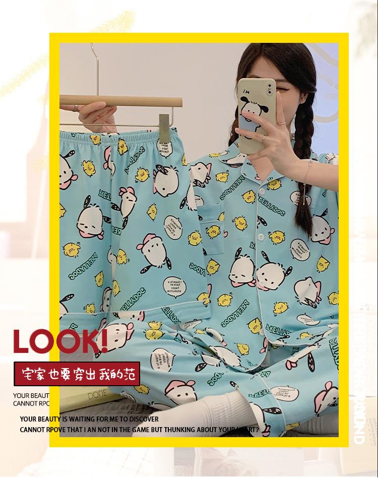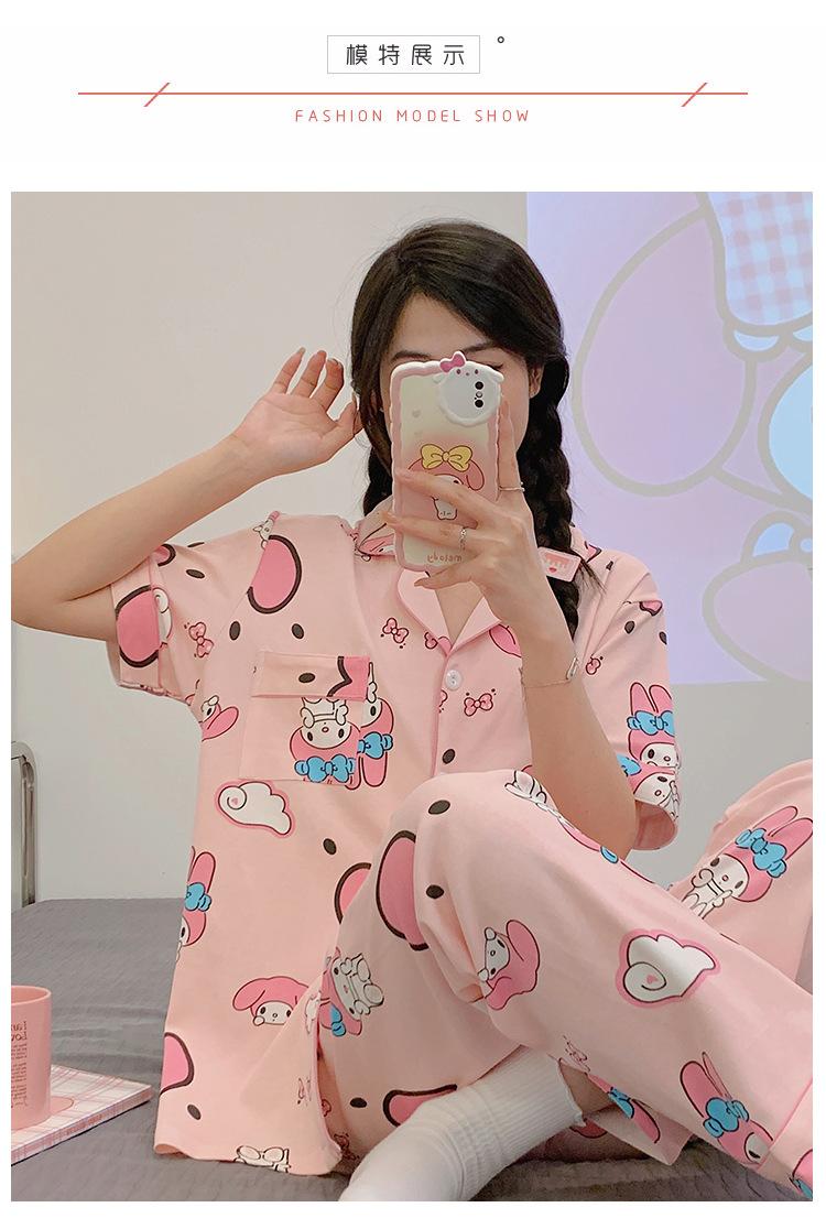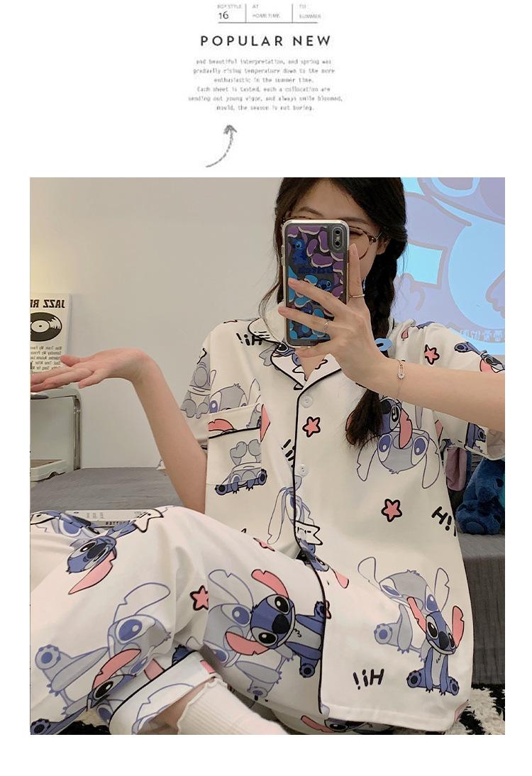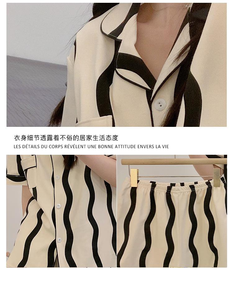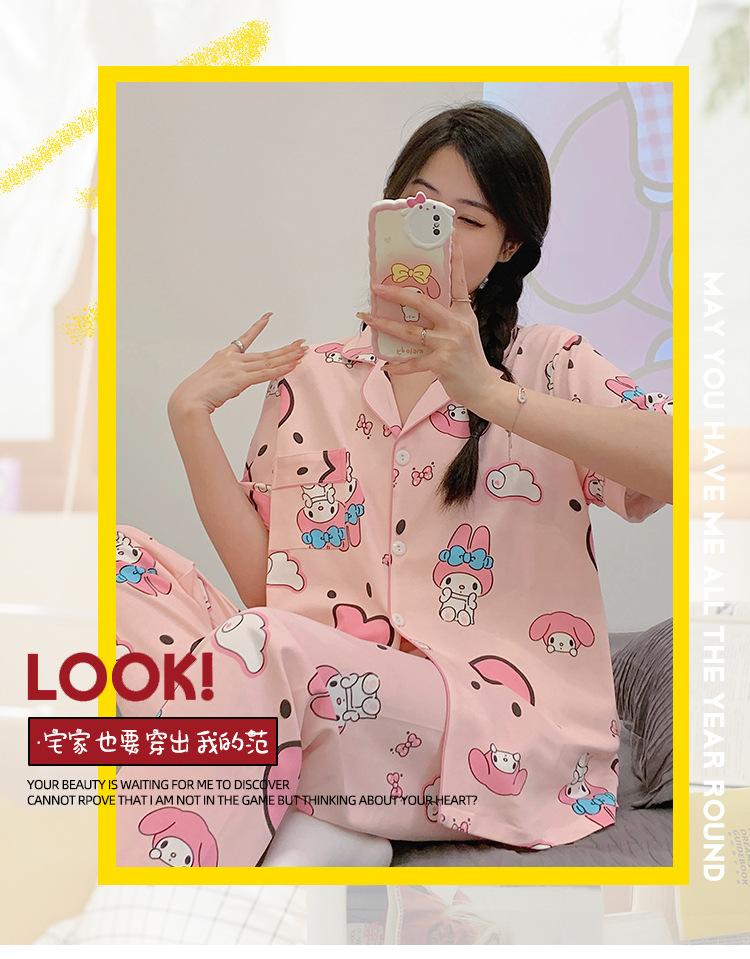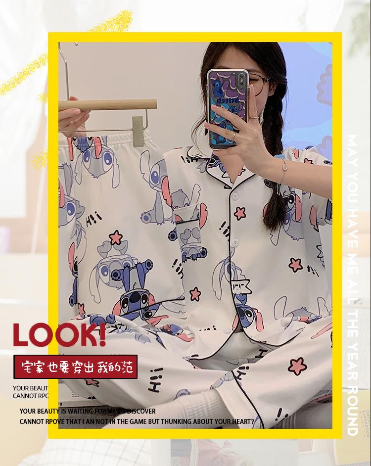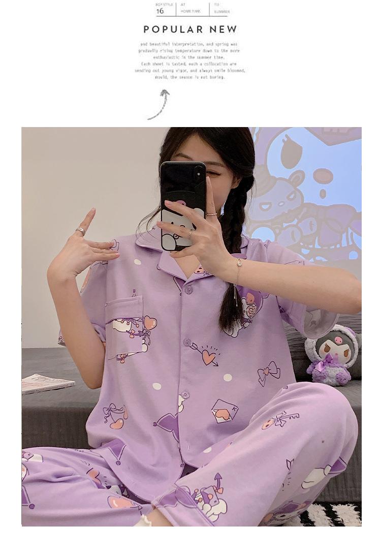 Verano Nuevo Pijama de Tres Piezas de Manga Corta para Mujer Estampado de Dibujos Animados Casual Solapa Cárdigan Ropa de Casa Dropshipping