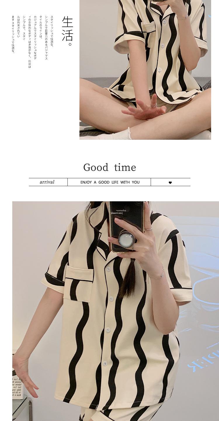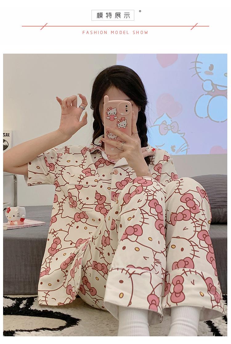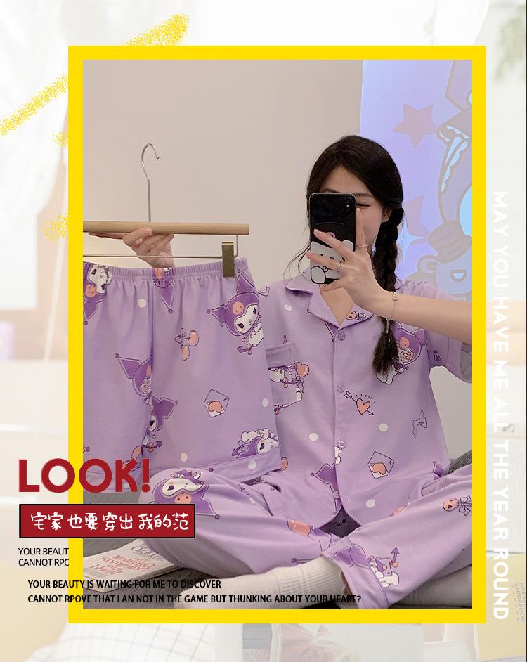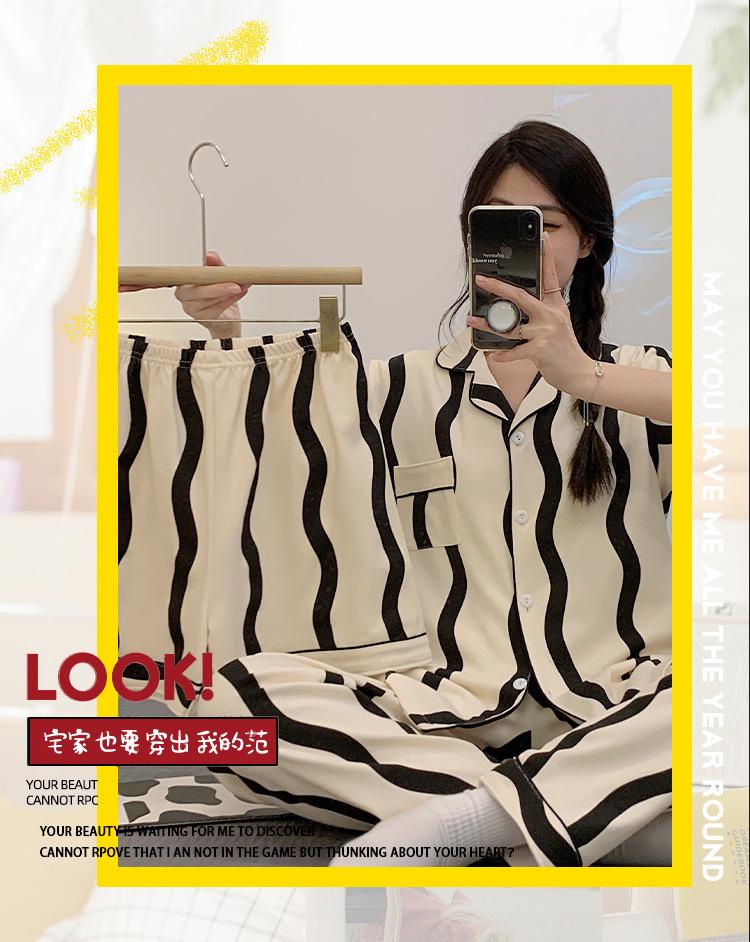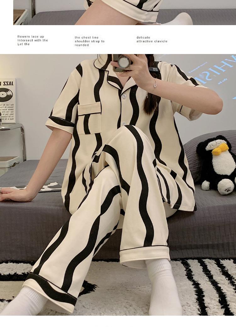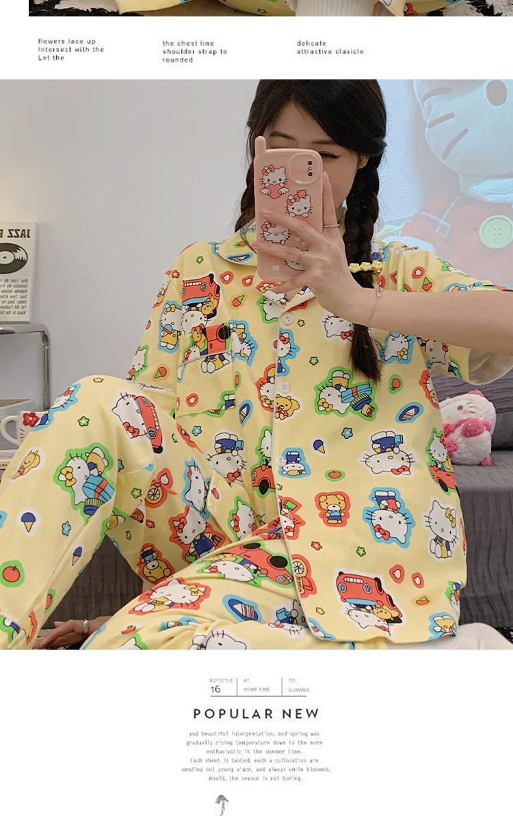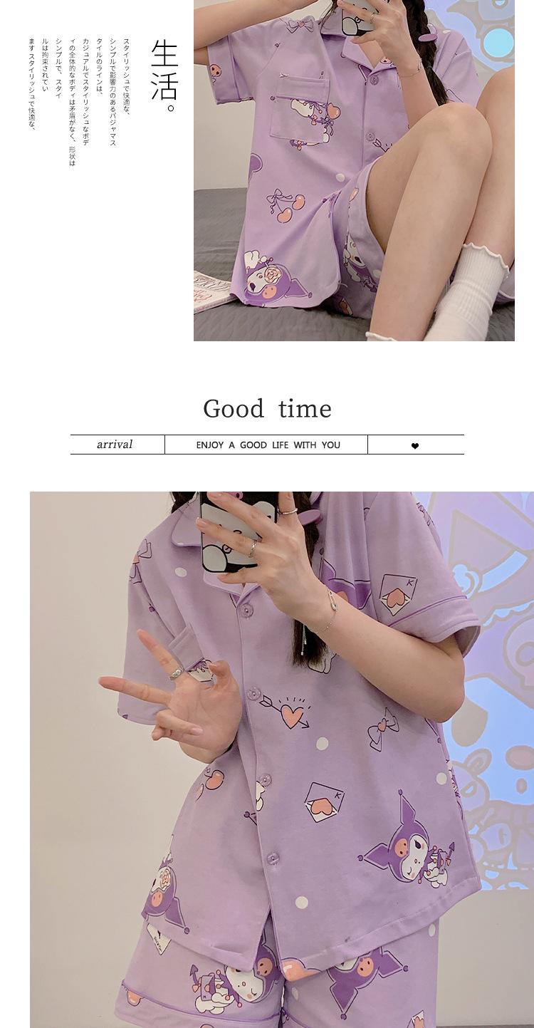 Verano Nuevo Pijama de Tres Piezas de Manga Corta para Mujer Estampado de Dibujos Animados Casual Solapa Cárdigan Ropa de Casa Dropshipping