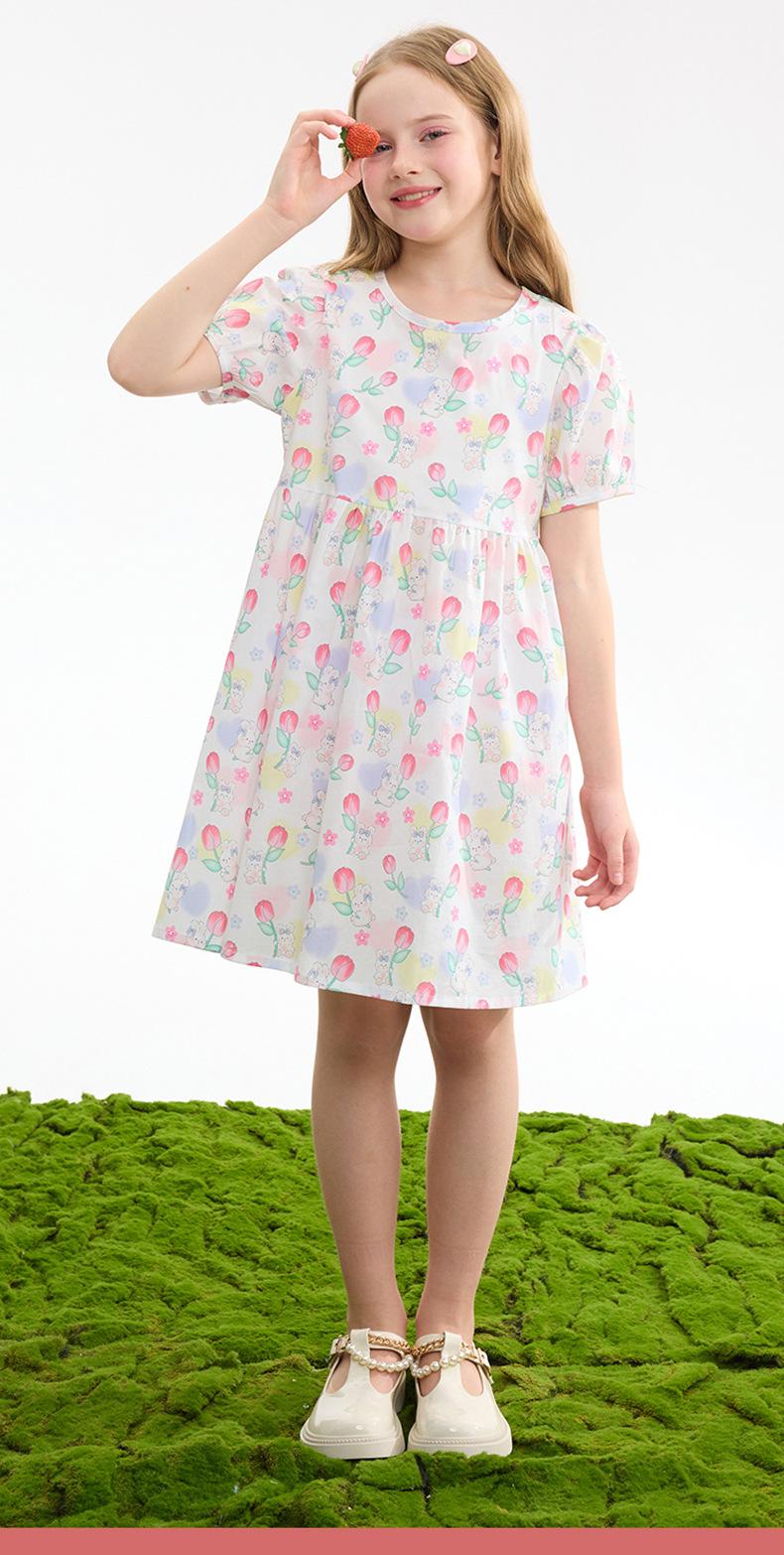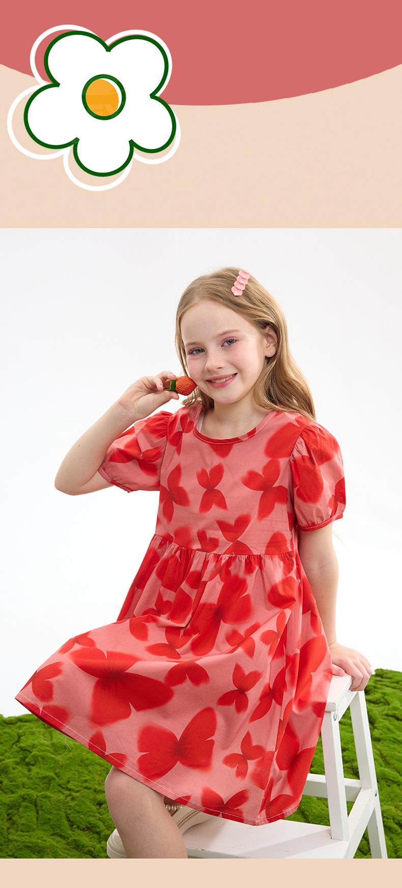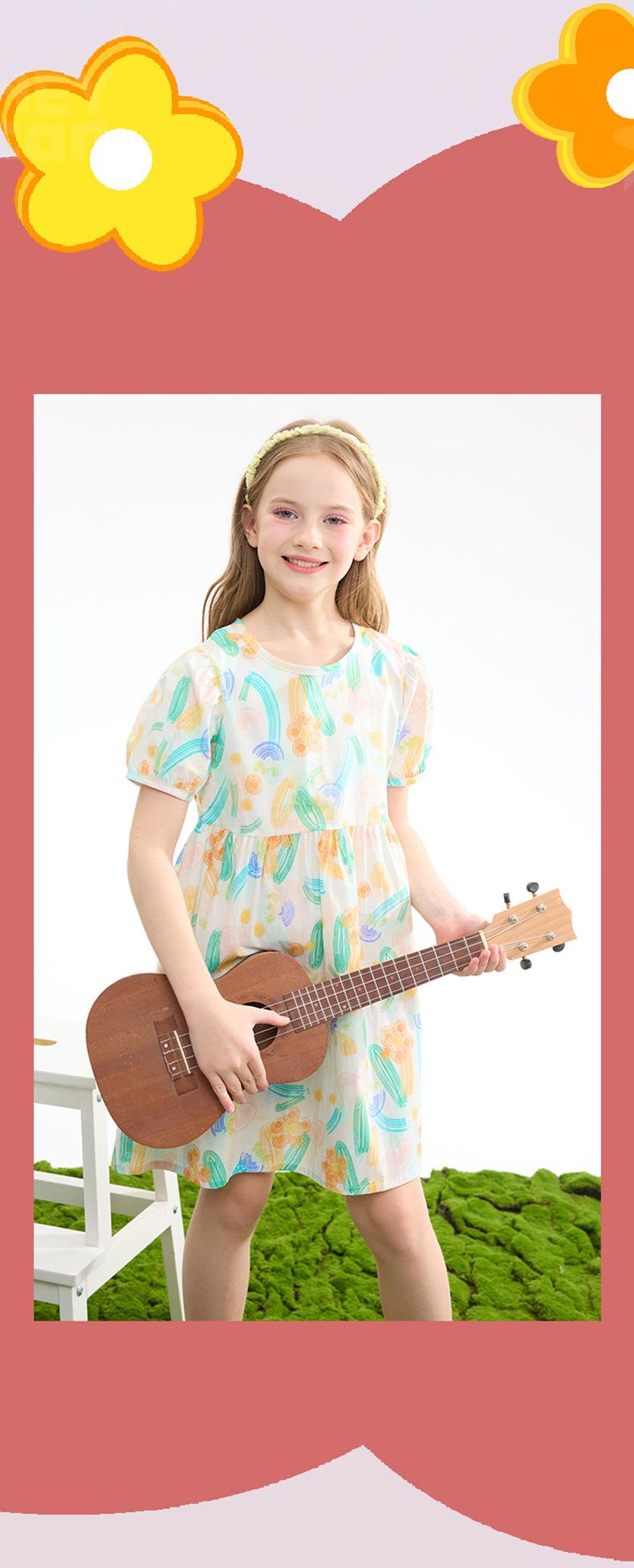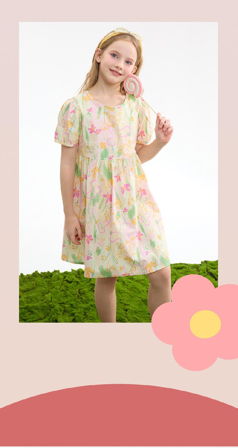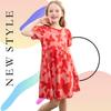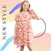 Vestido de verano para niña, elegante y a la moda, de princesa, con mangas abullonadas, estampado floral de verano para niña de talla mediana a grande.