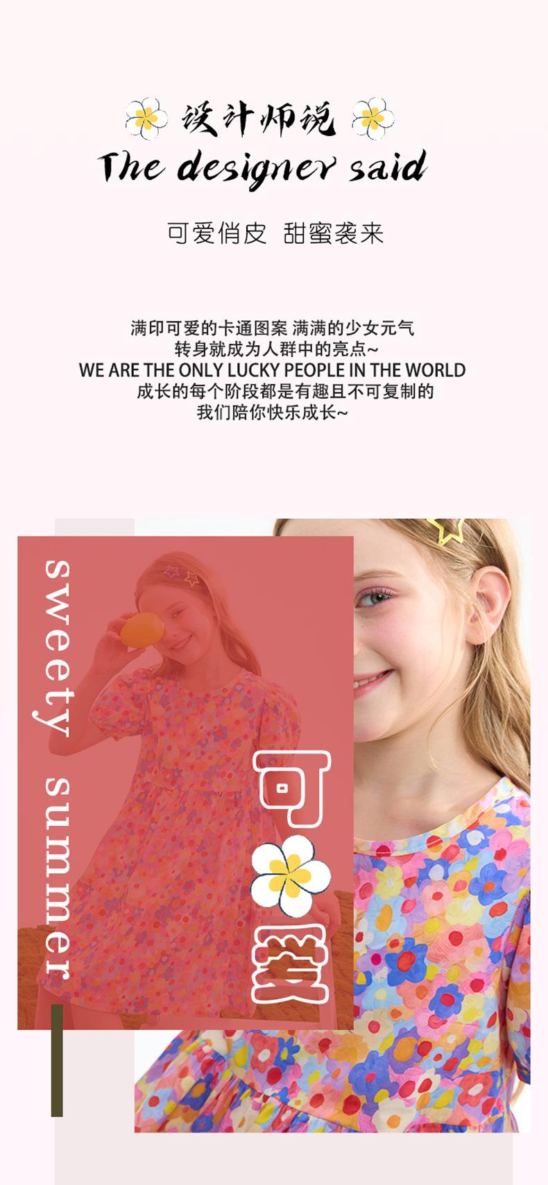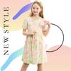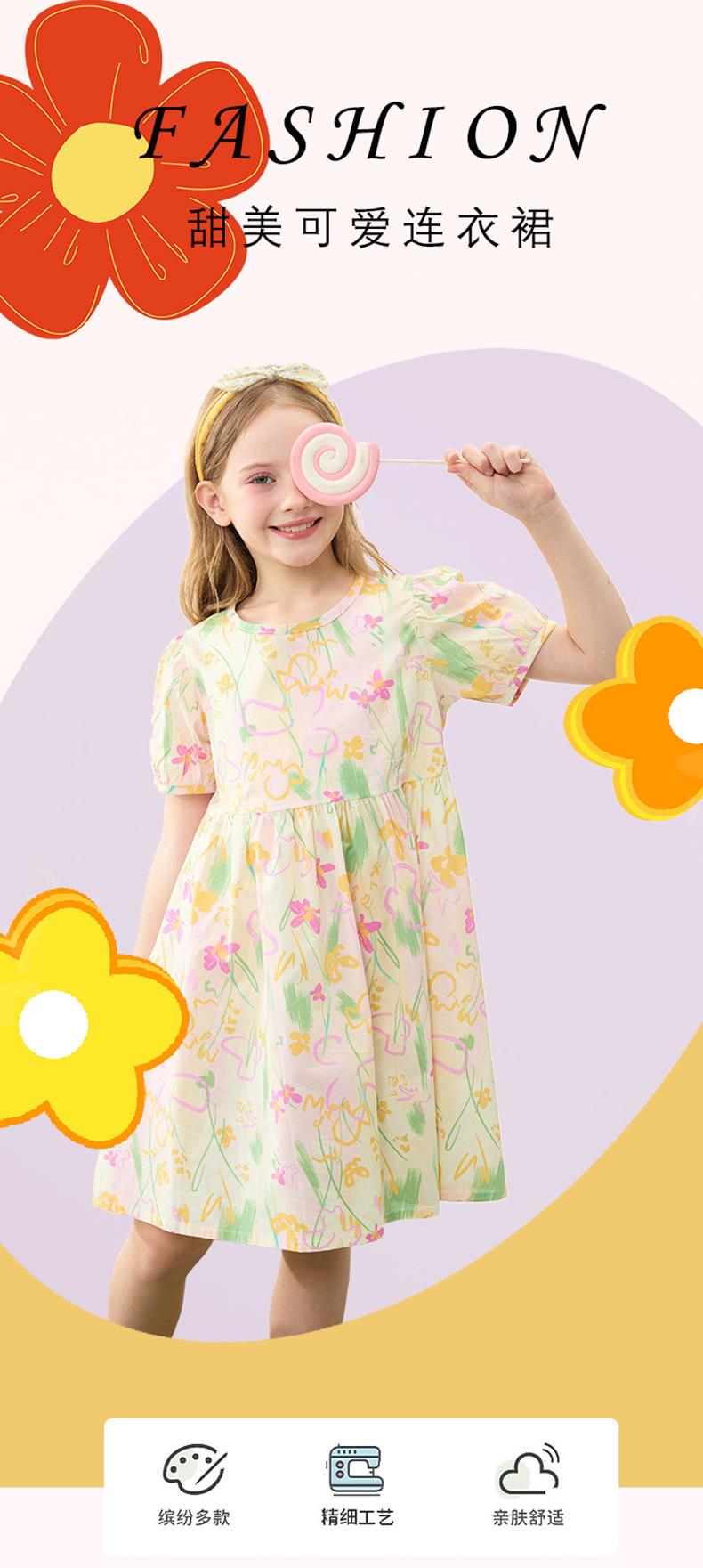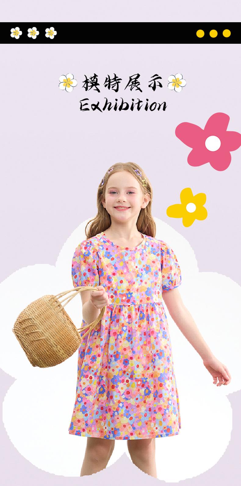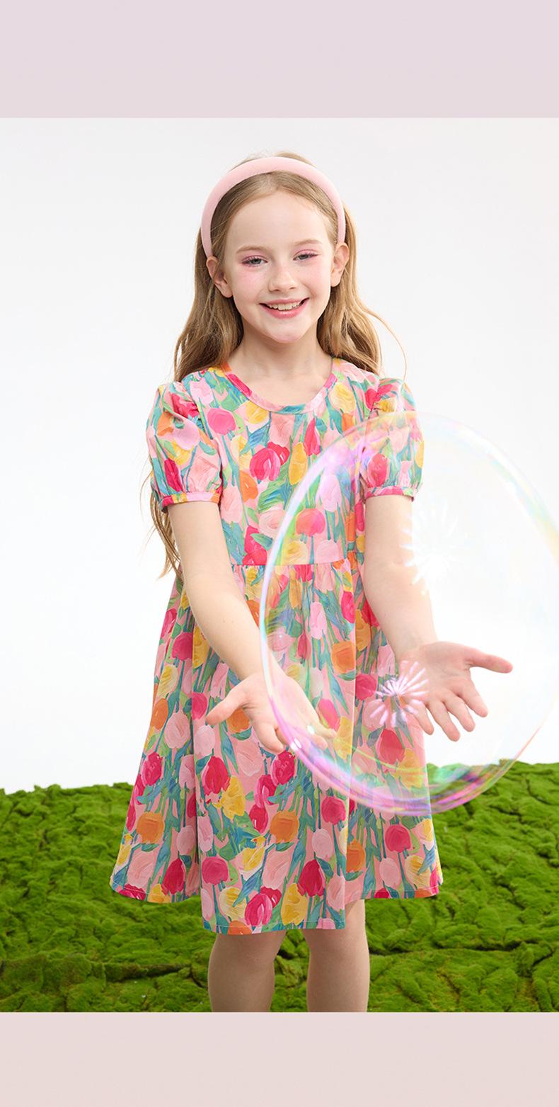 Vestido de verano para niña, elegante y a la moda, de princesa, con mangas abullonadas, estampado floral de verano para niña de talla mediana a grande.