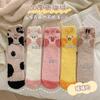 Calcetines de terciopelo coral con bordado de orejas tridimensionales para otoño e invierno, calcetines gruesos y cálidos para el hogar, calcetines de mujer
