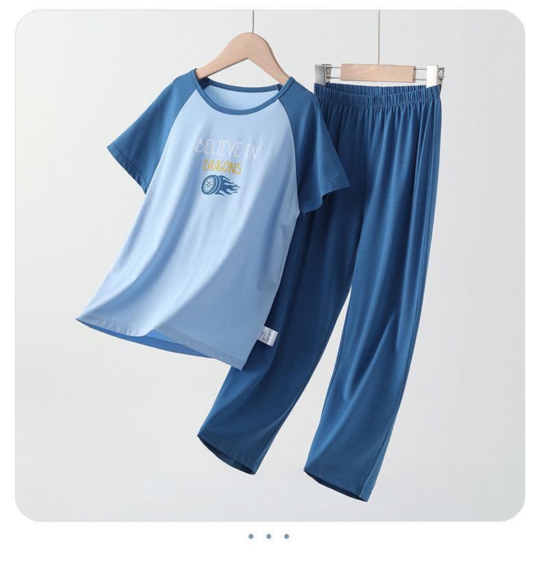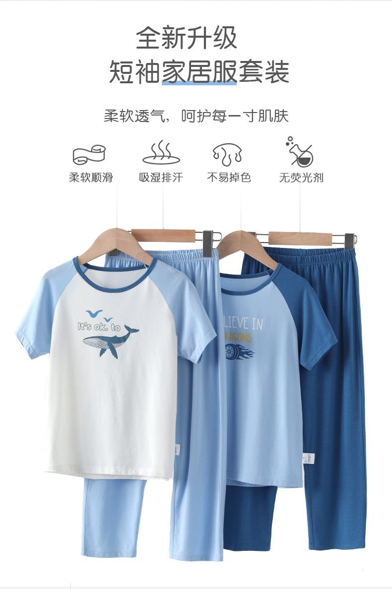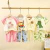 Pijamas para Niños Categoría A Verano Delgadas para Niños de Dibujos Animados Camiseta de Manga Corta Ropa para el Hogar Estilo Coreano Ropa para Aire Acondicionado para Niños Medianos y Grandes traje