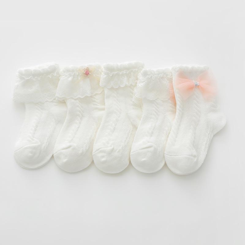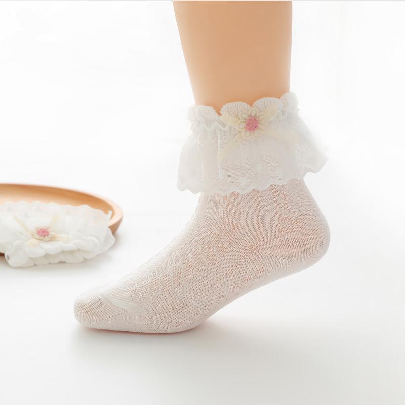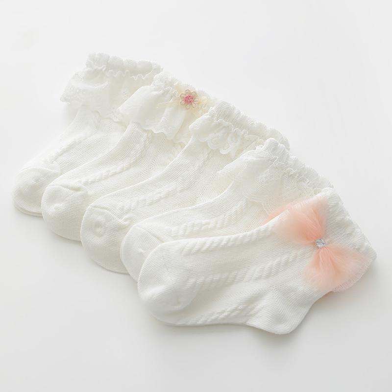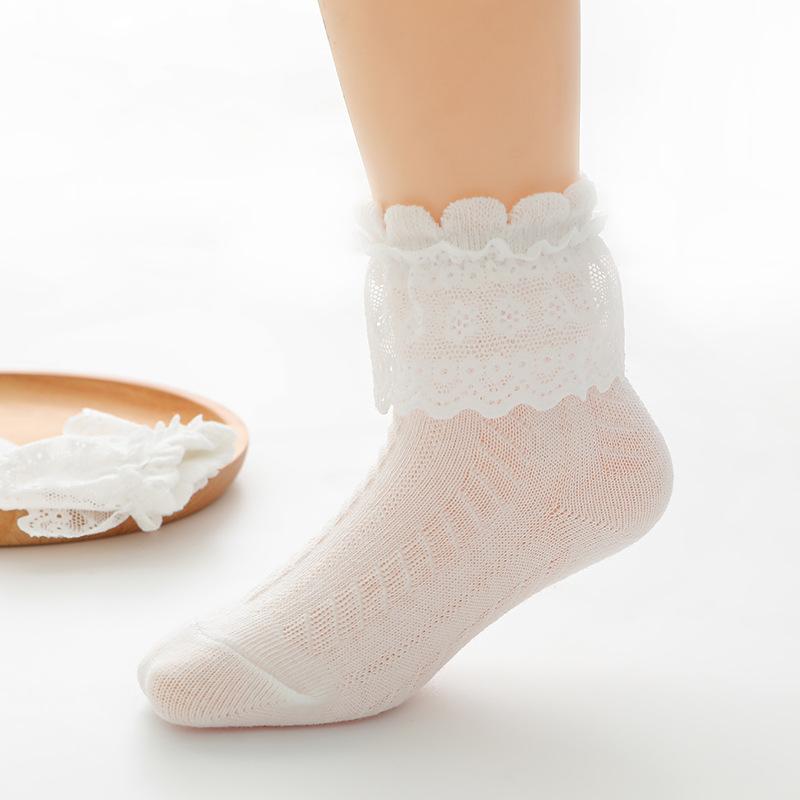Calcetines de niña para primavera y verano, finos, de encaje, de princesa, para niñas pequeñas, estudiantes, calcetines blancos para niños.