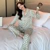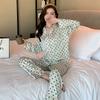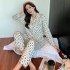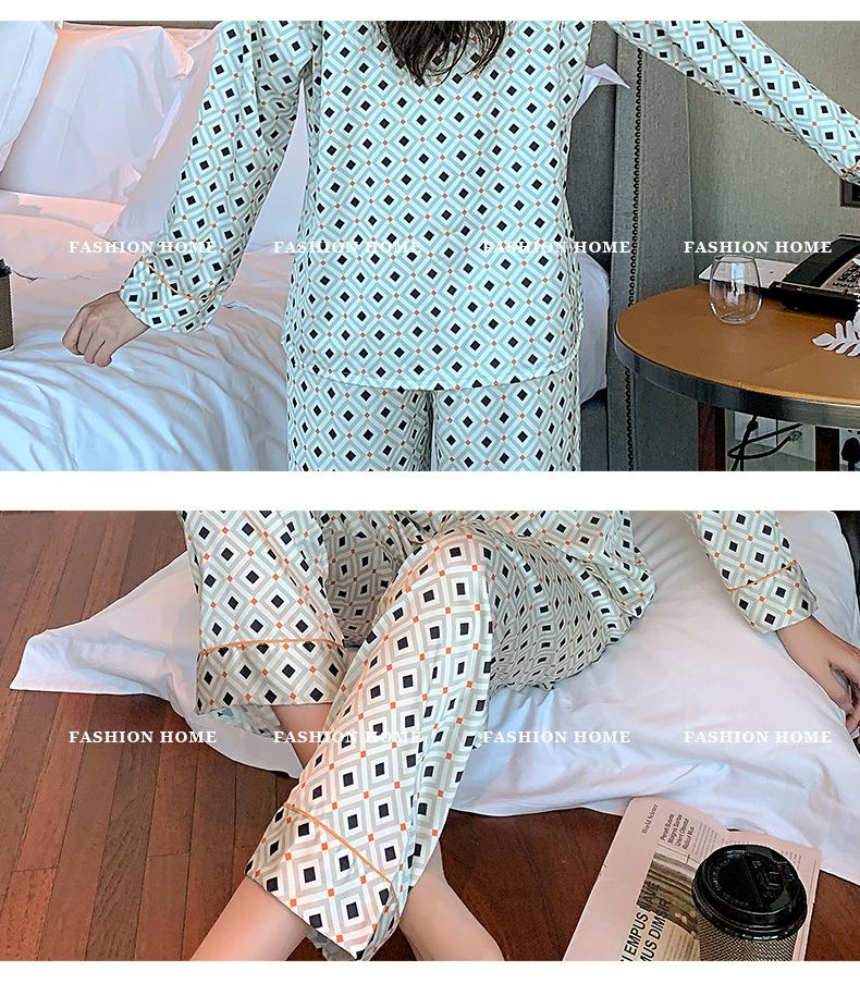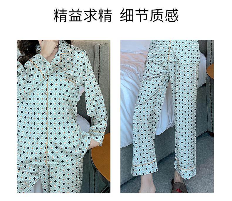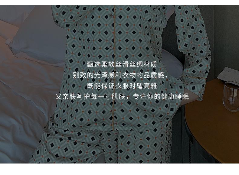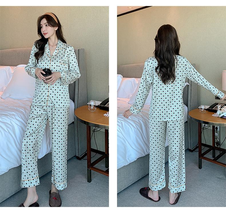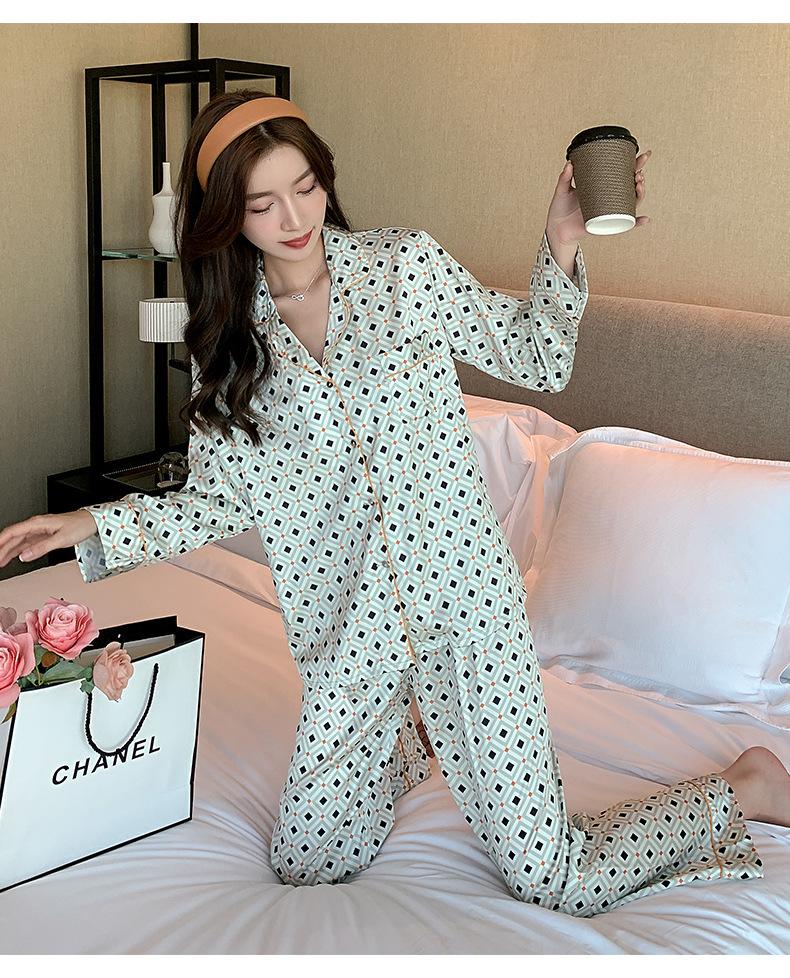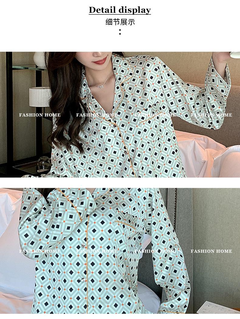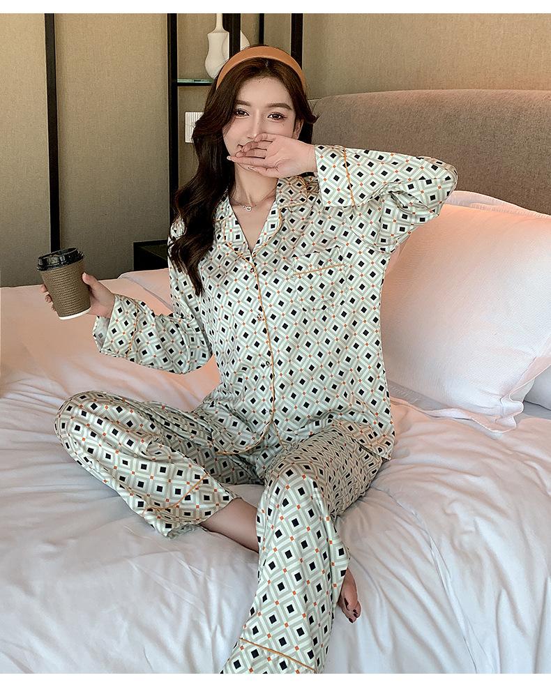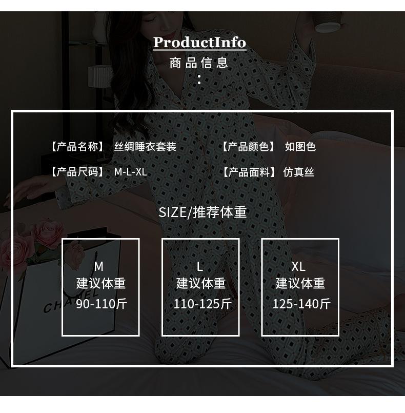 (Autorización) Sin Devolución Sin Cambio Pijama Nuevo Manga Larga Solapa de Seda Forma de Diamante Simple Seda de Hielo Ropa para el Hogar para Mujer