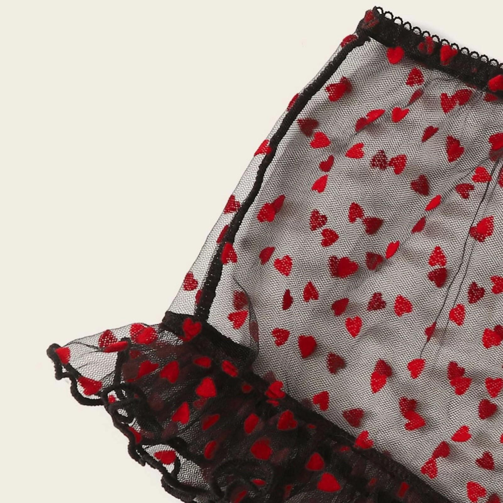 Suministro de comercio exterior Nuevo verano fresco europeo y americano Moda de tres puntos Amor encaje pijama Traje sexy Conjunto de dos piezas
