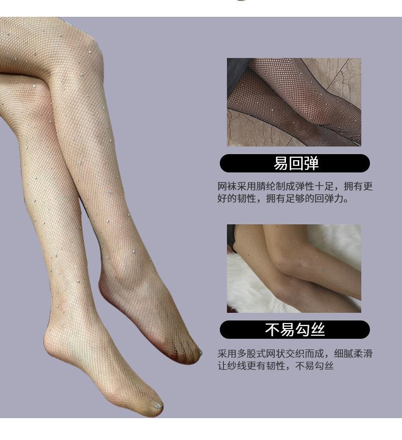 Medias de seda negras para mujer, finas y sexys, con punta de diamante, de red negra, estilo europeo y americano, de malla pequeña, ideales para discotecas.