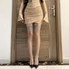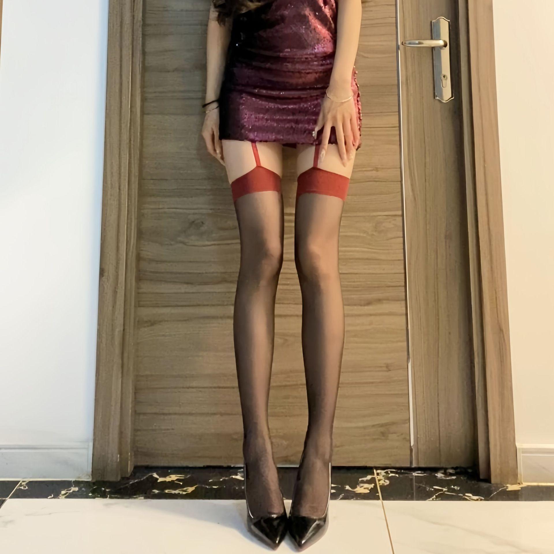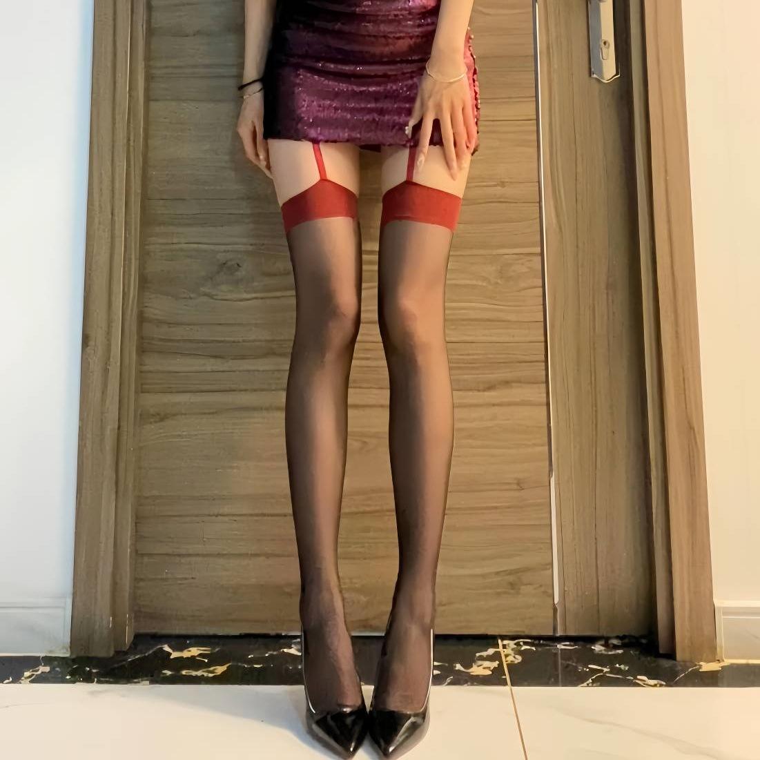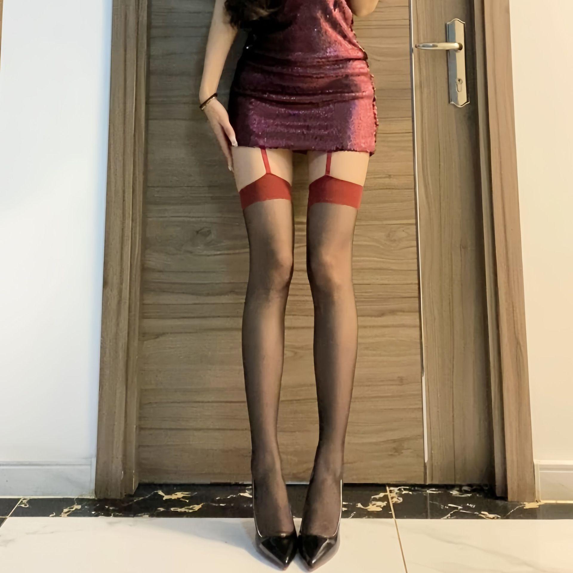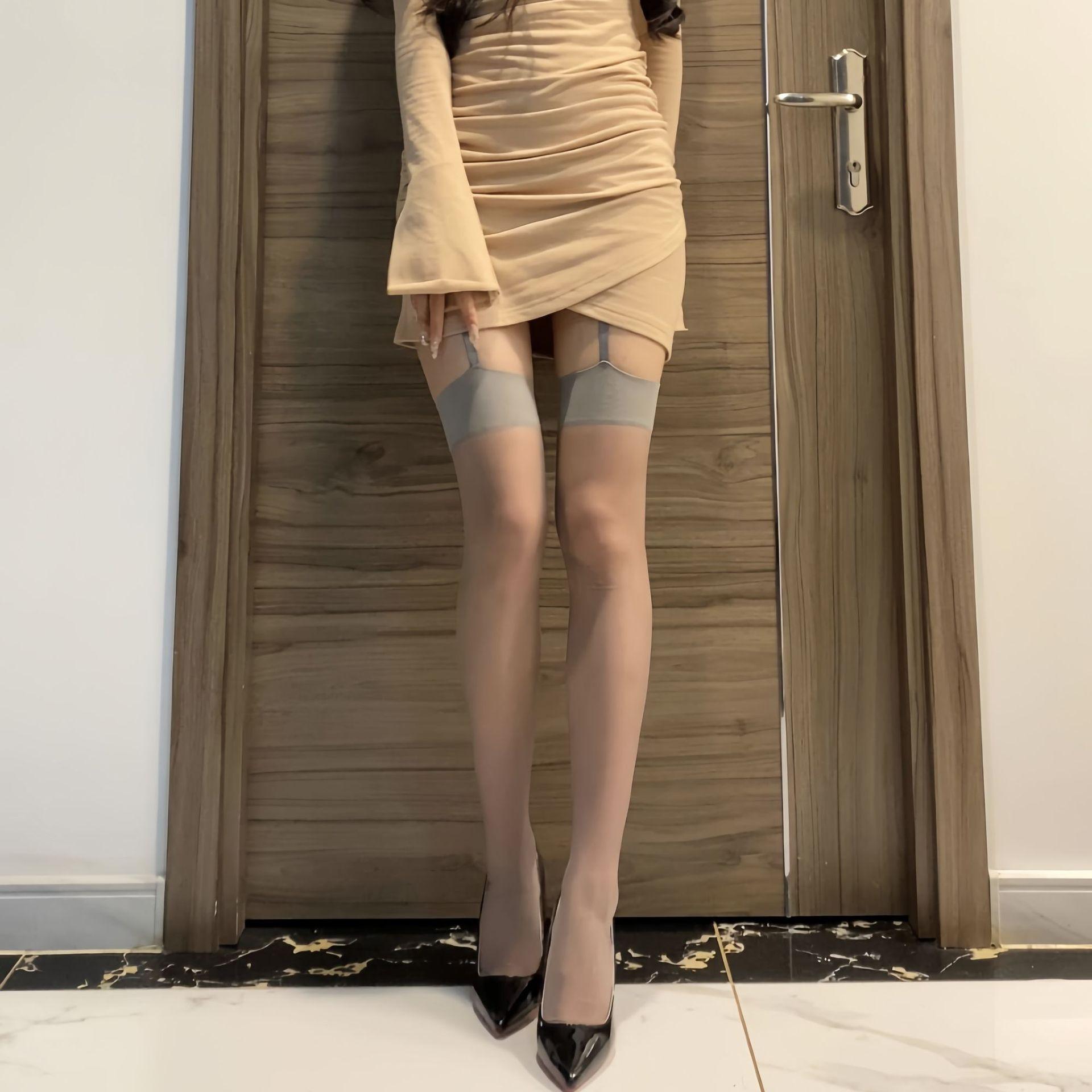 Calcetines largos hasta la rodilla con tirantes para mujer, de seda negra, Y2G, transparentes y falsos, con efecto moldeador de carne.