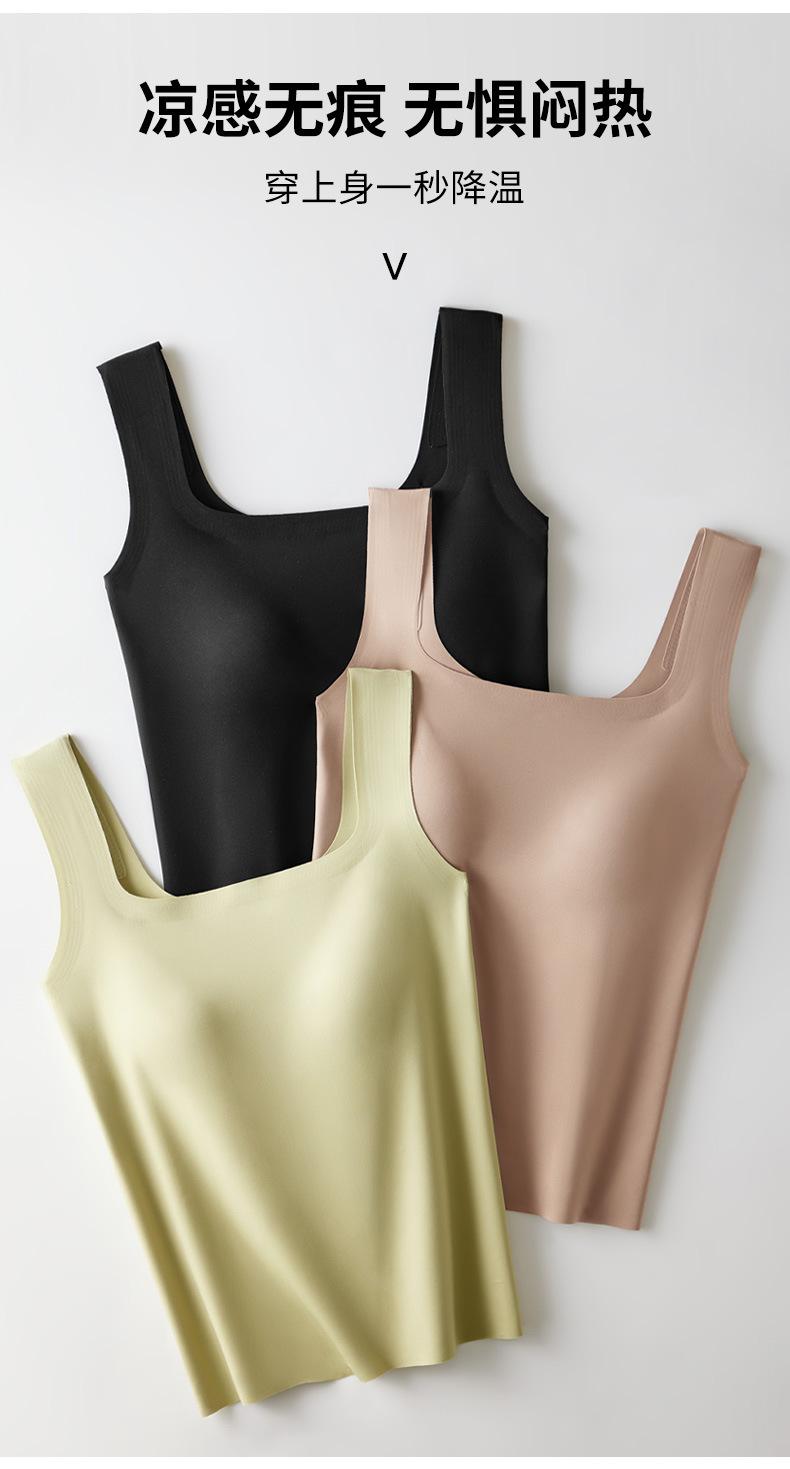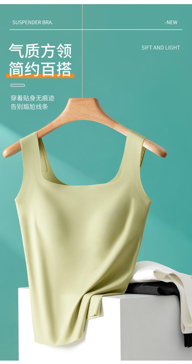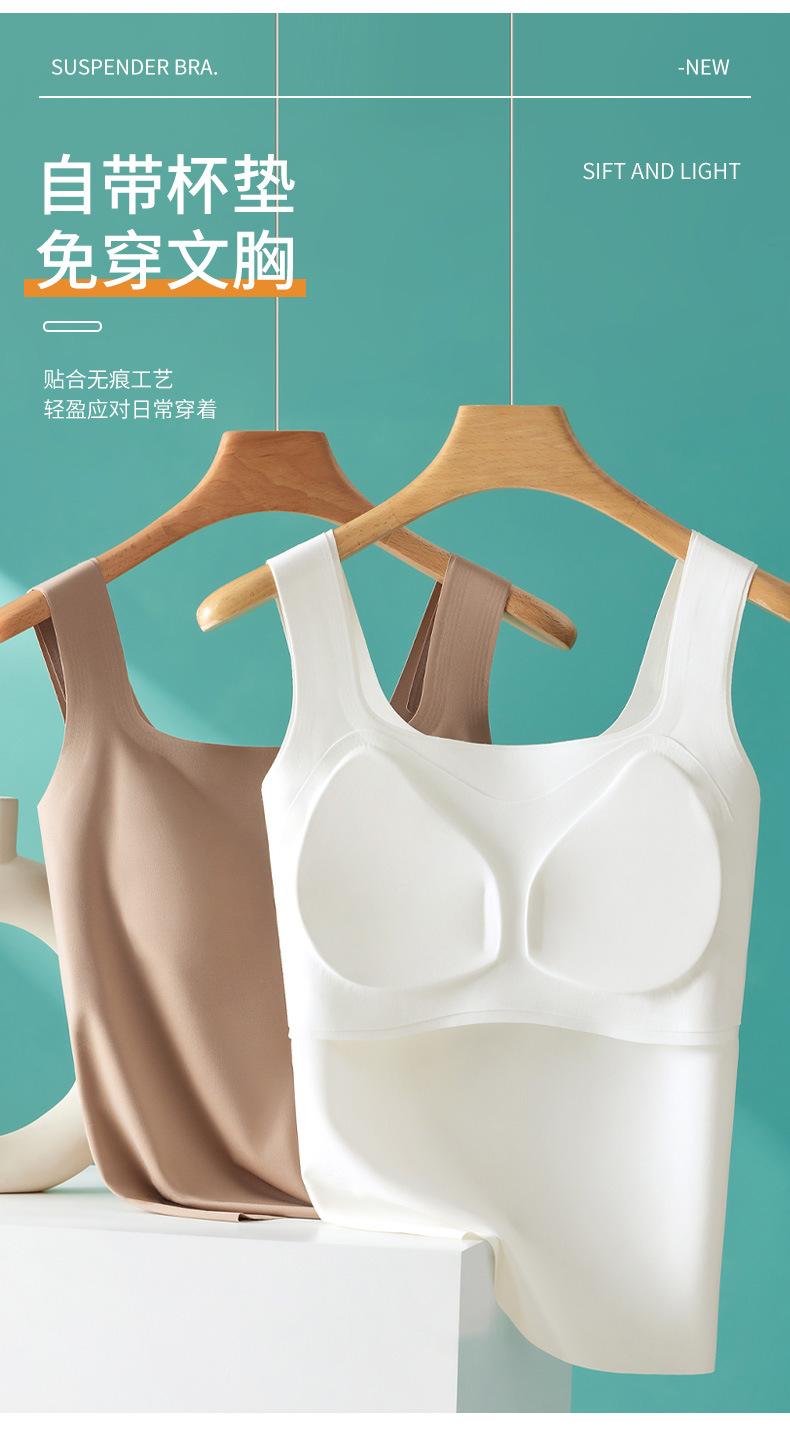 Camisola de seda helada para mujer, sujetador interior con almohadilla para el pecho, de una pieza, de verano, nueva, fina, bonita, ropa interior para la espalda, base exterior.