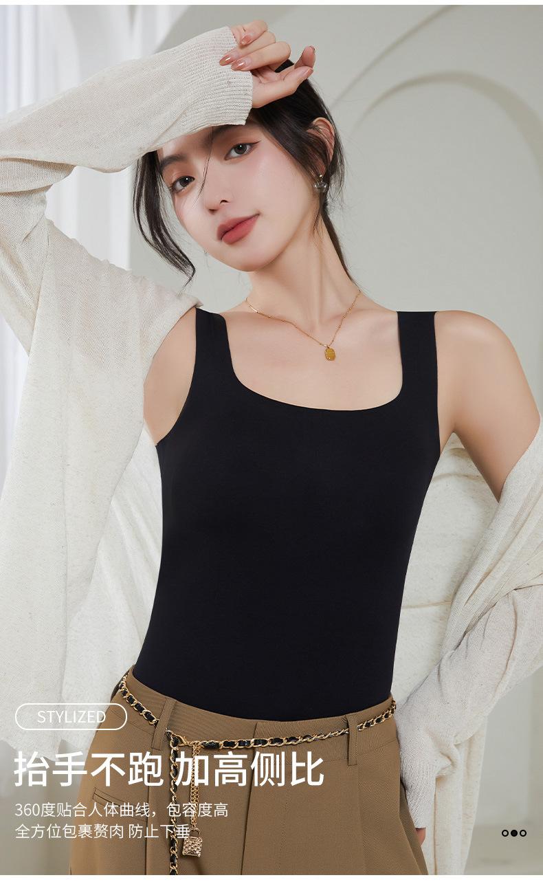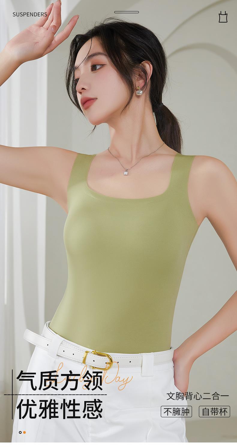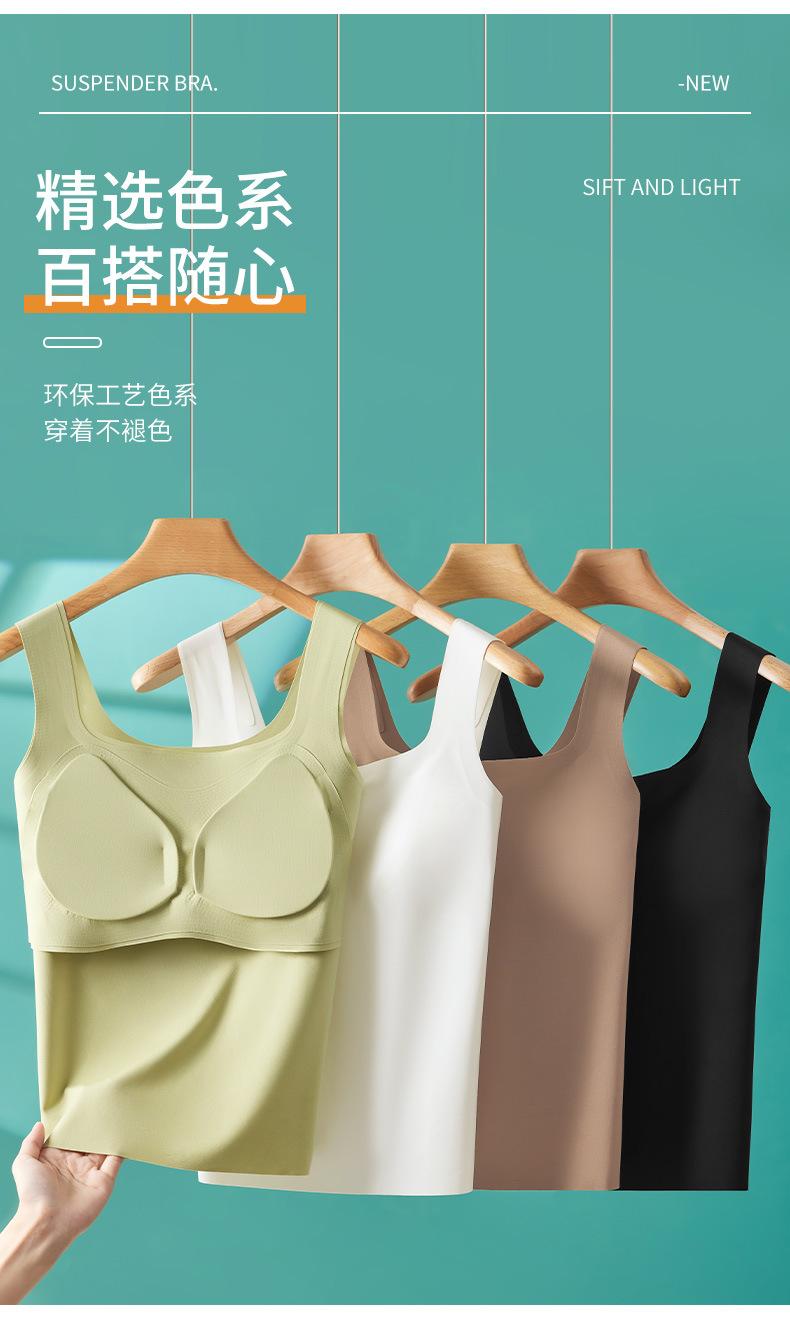 Camisola de seda helada para mujer, sujetador interior con almohadilla para el pecho, de una pieza, de verano, nueva, fina, bonita, ropa interior para la espalda, base exterior.