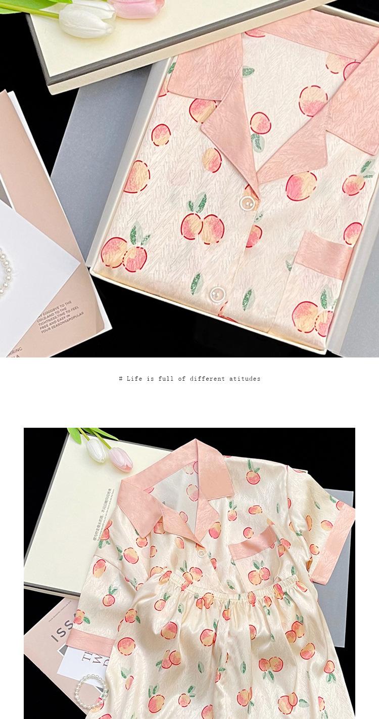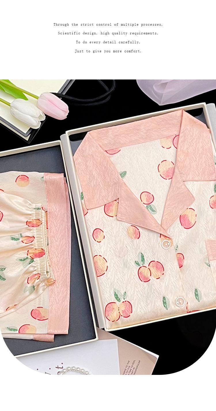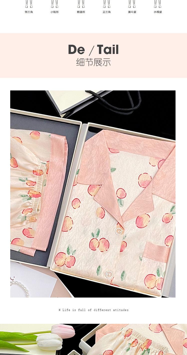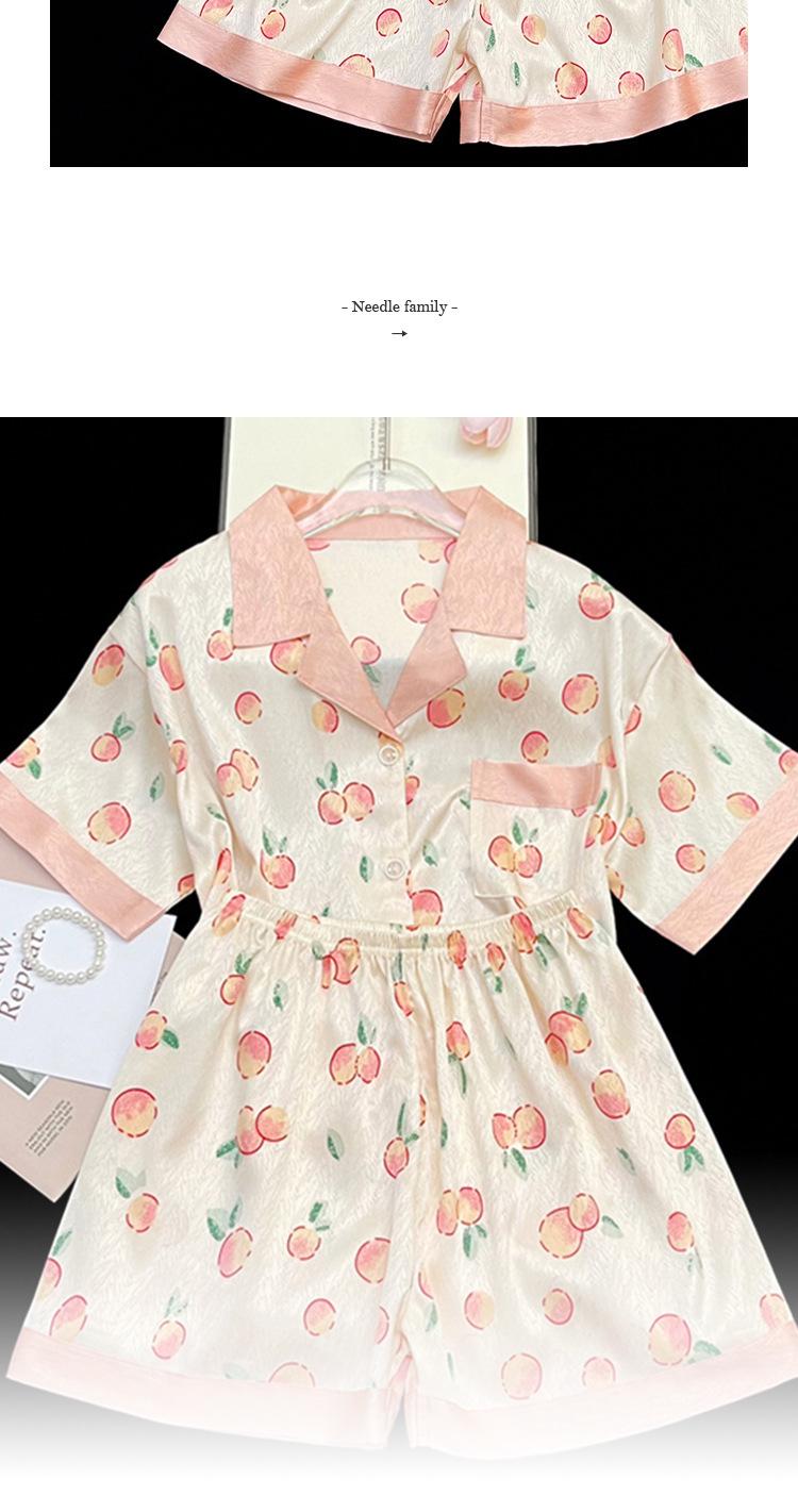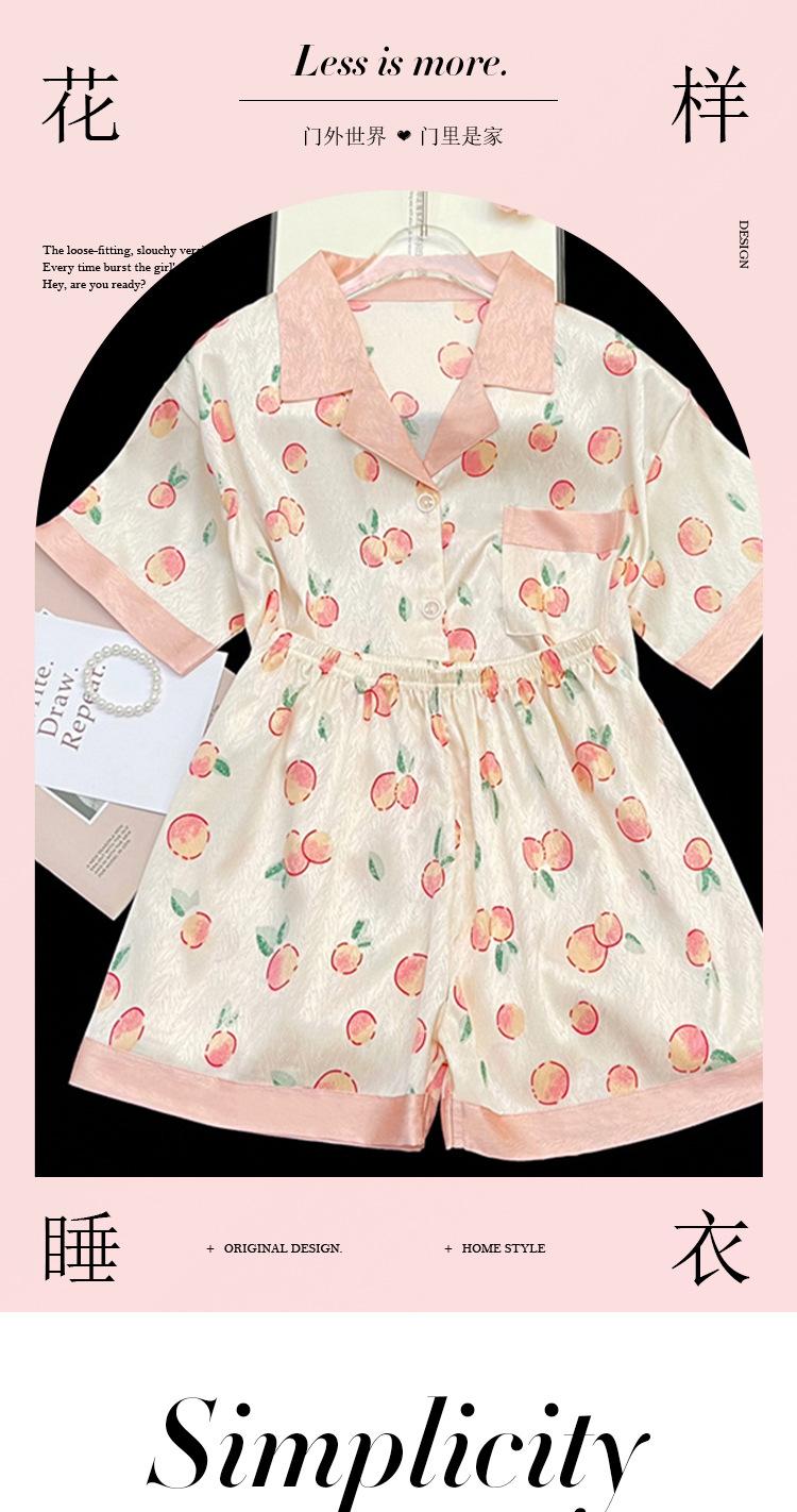 Conjunto de verano de dibujos animados de melocotón rojo de internet, estilo fresco, manga corta, shorts, popular, imitación seda, ropa para el hogar al por mayor