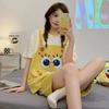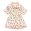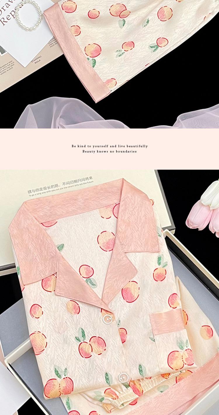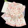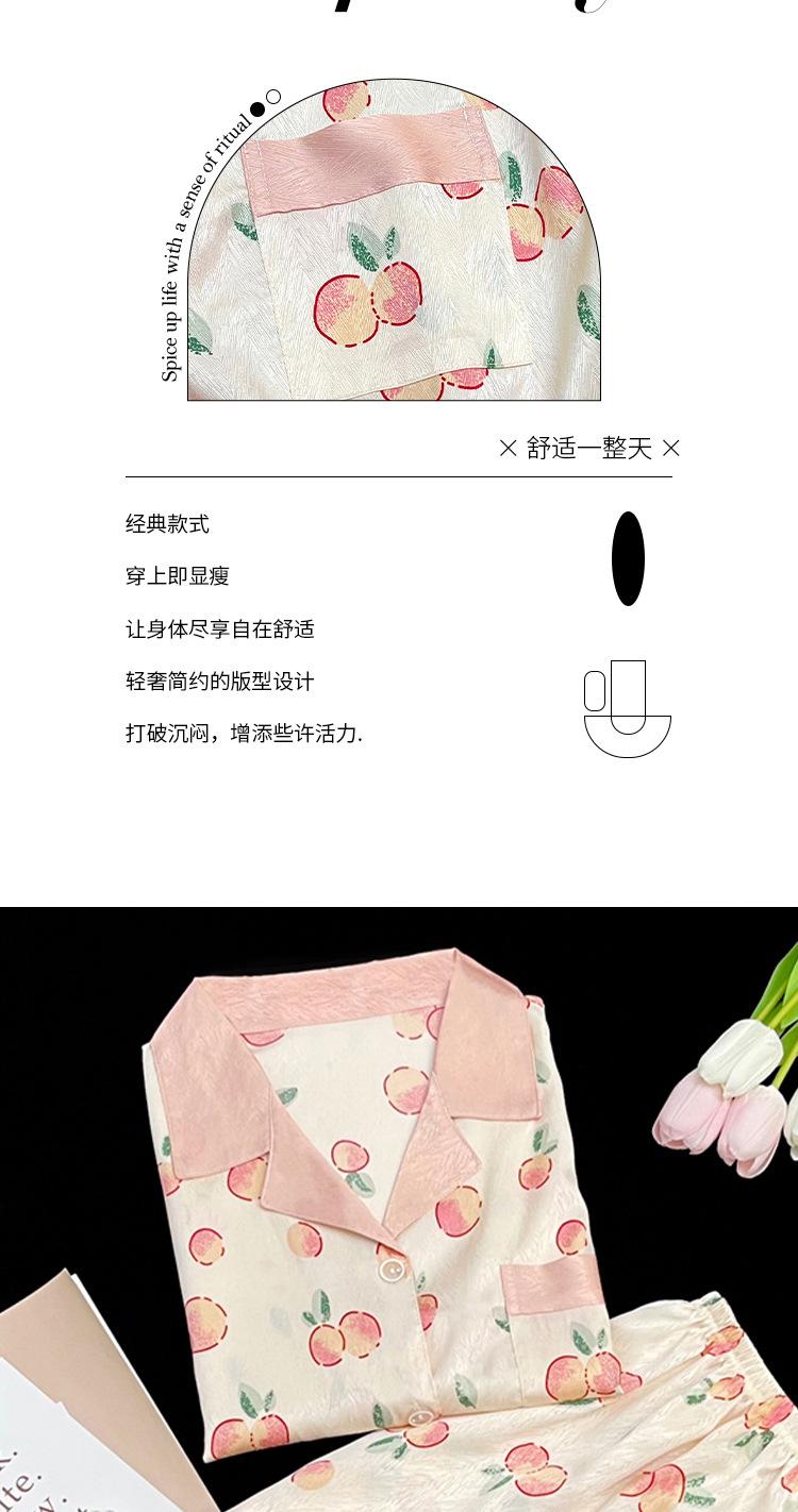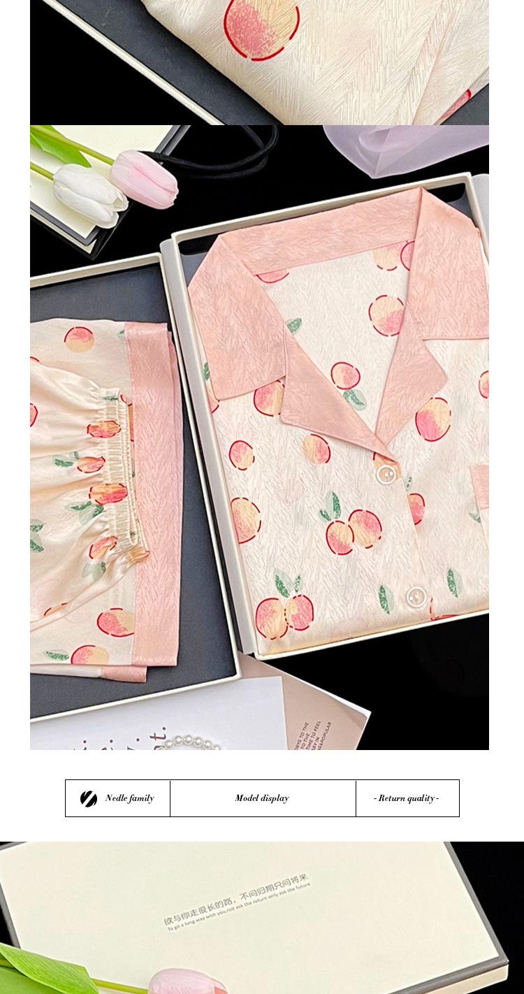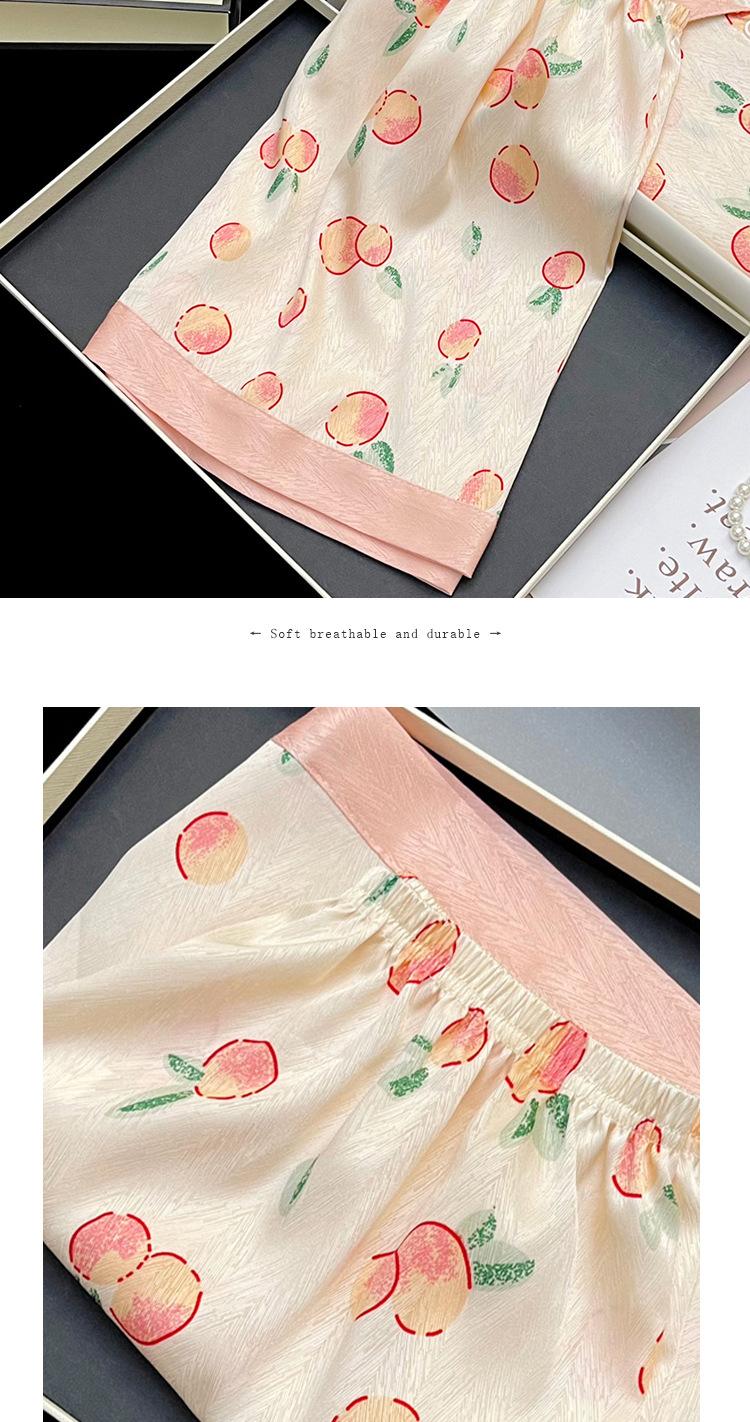 Conjunto de verano de dibujos animados de melocotón rojo de internet, estilo fresco, manga corta, shorts, popular, imitación seda, ropa para el hogar al por mayor