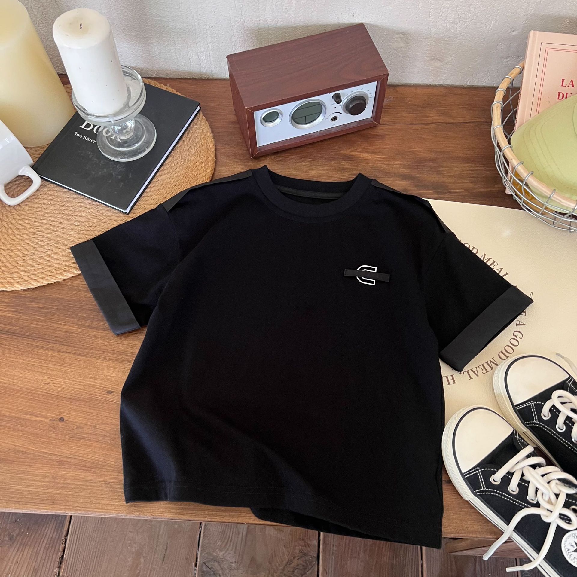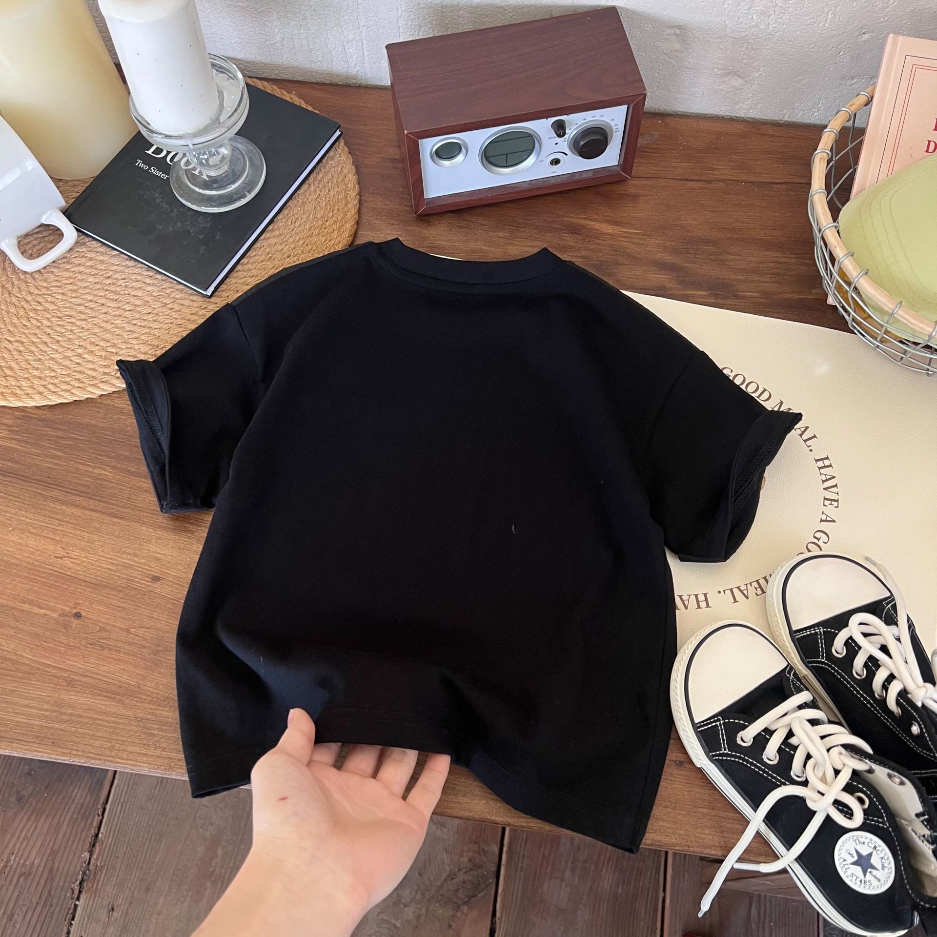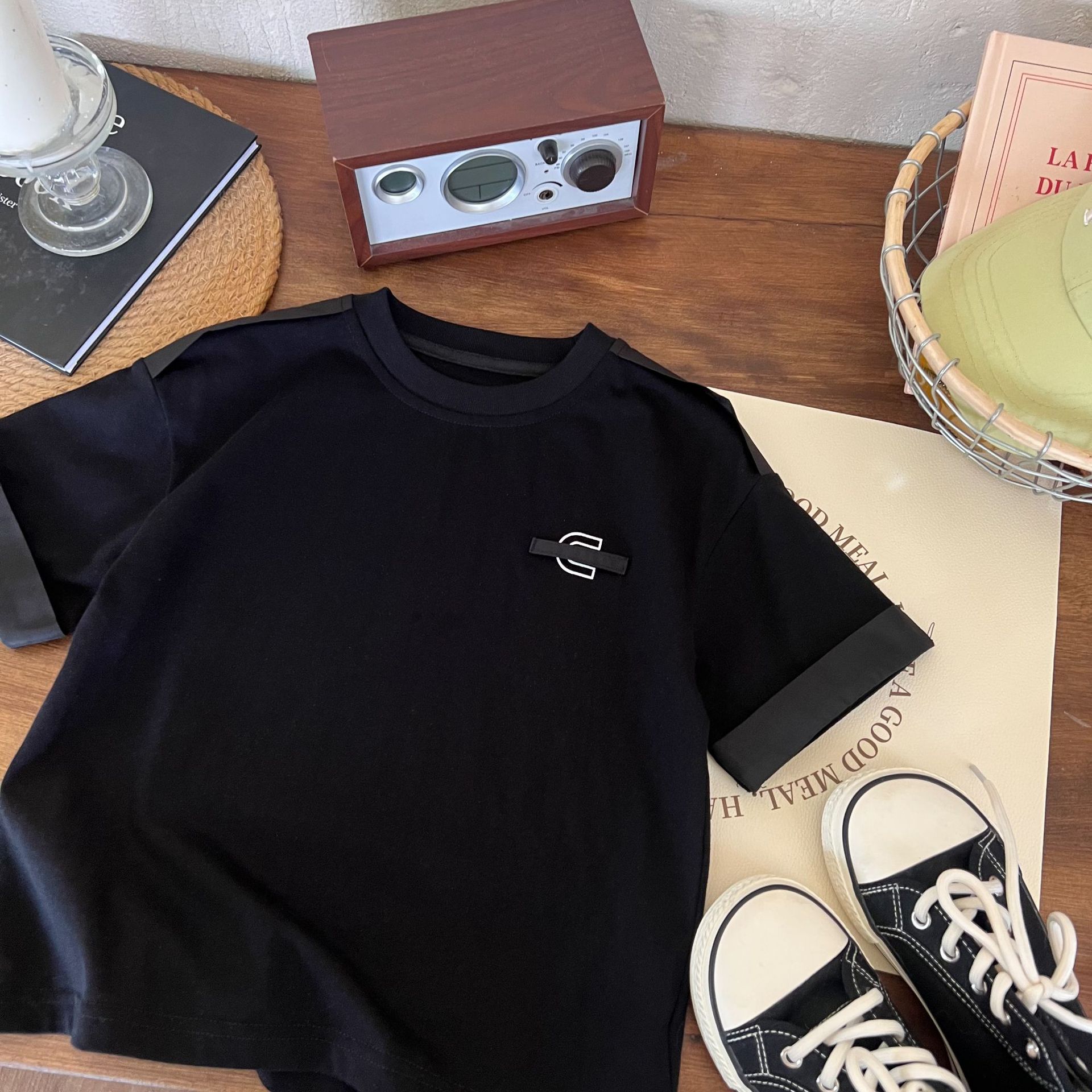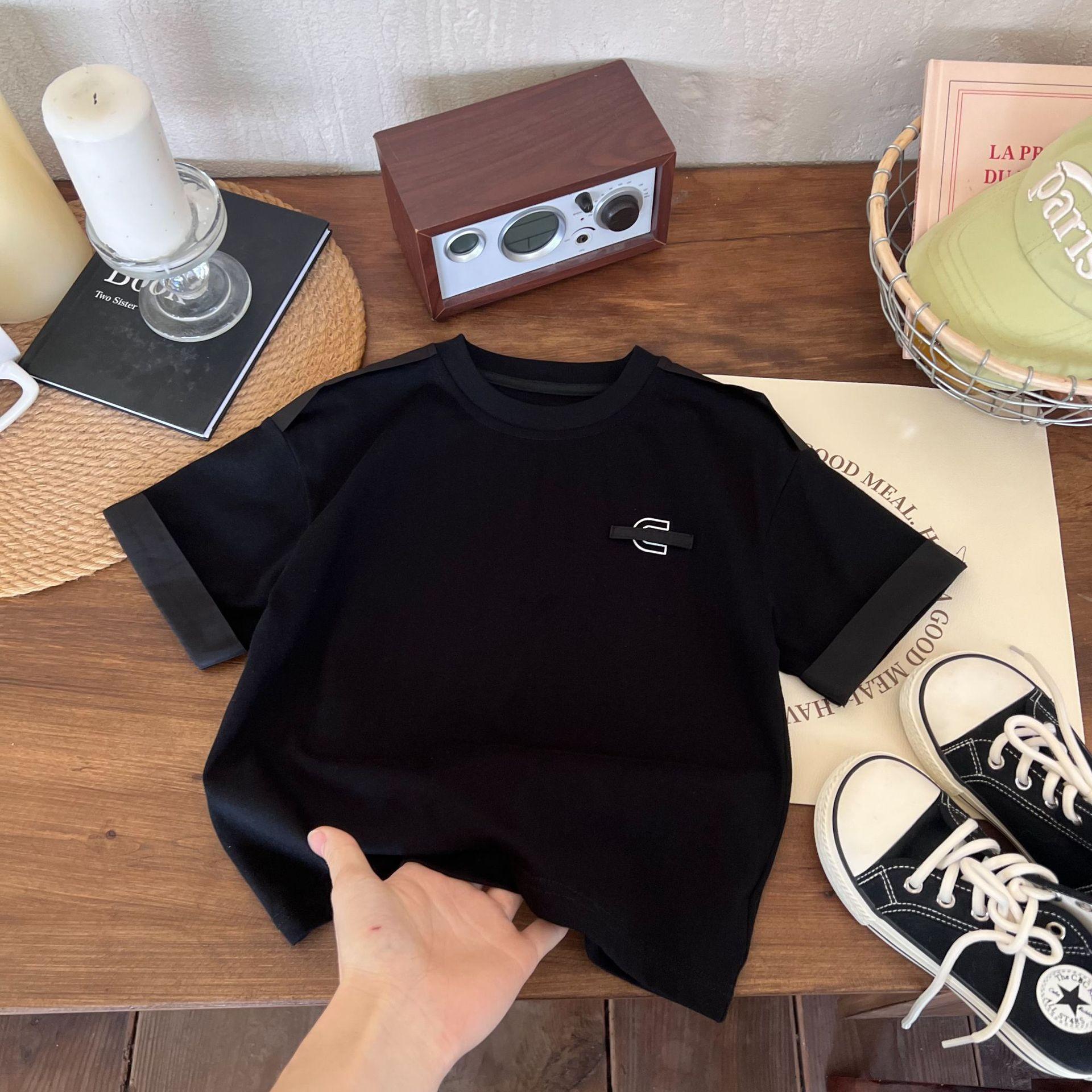 Camiseta de Manga Corta para Niños 2025 Verano Nuevo Estilo Niños Color Puro Negro Versátil Combinación de Colores Moderna t Camiseta Casual de Moda para Niños