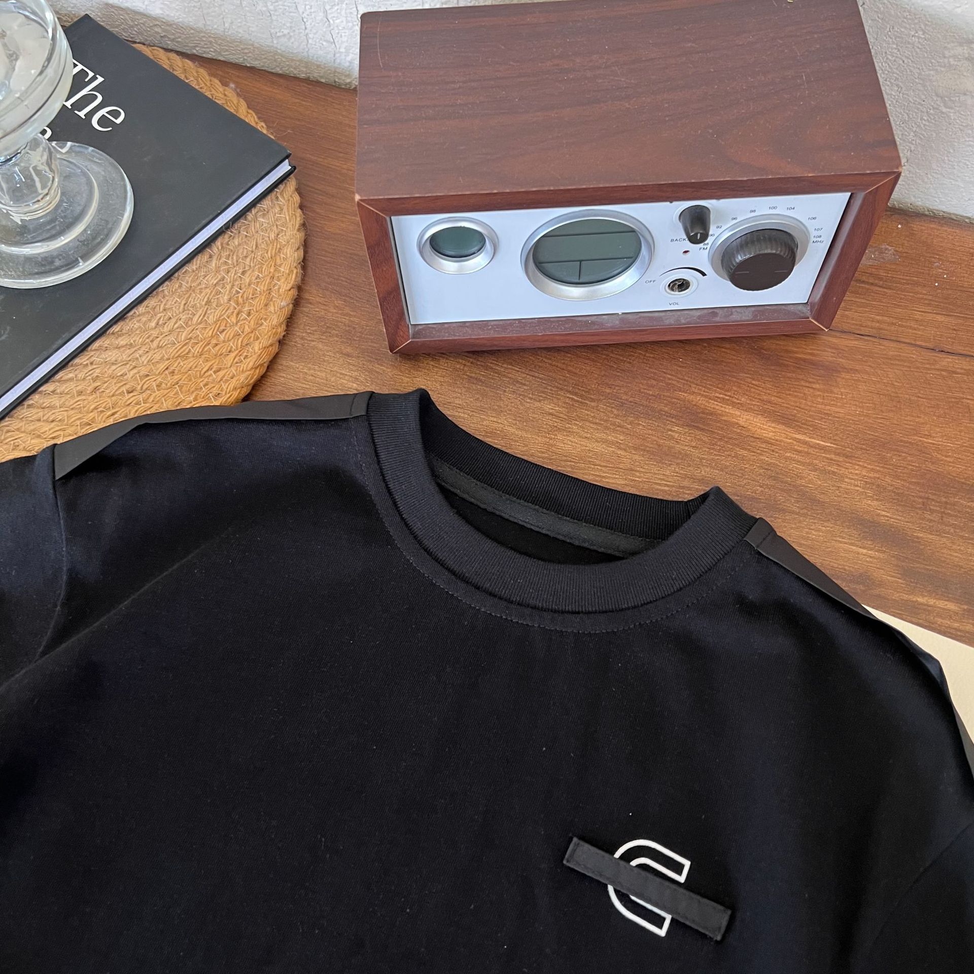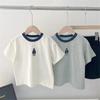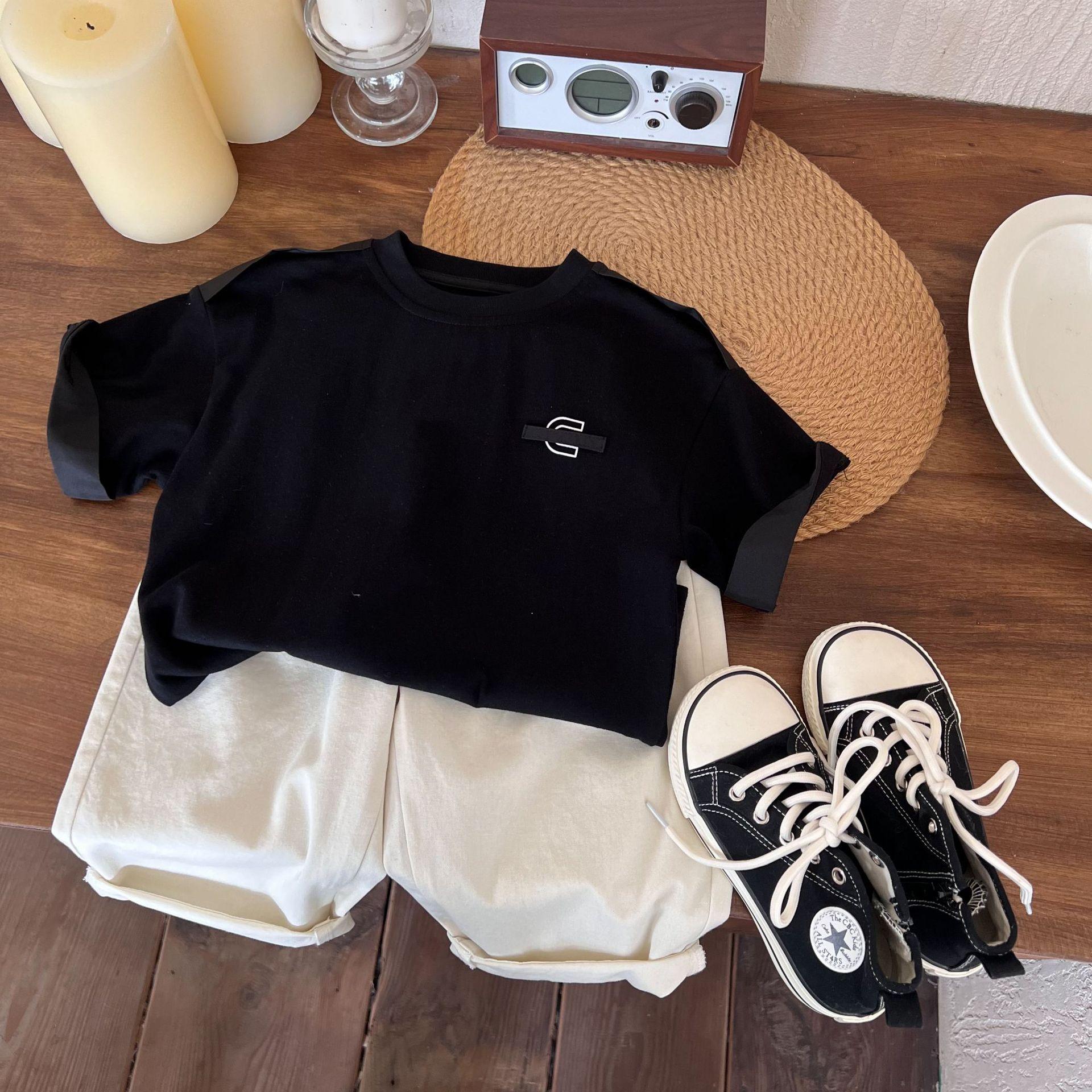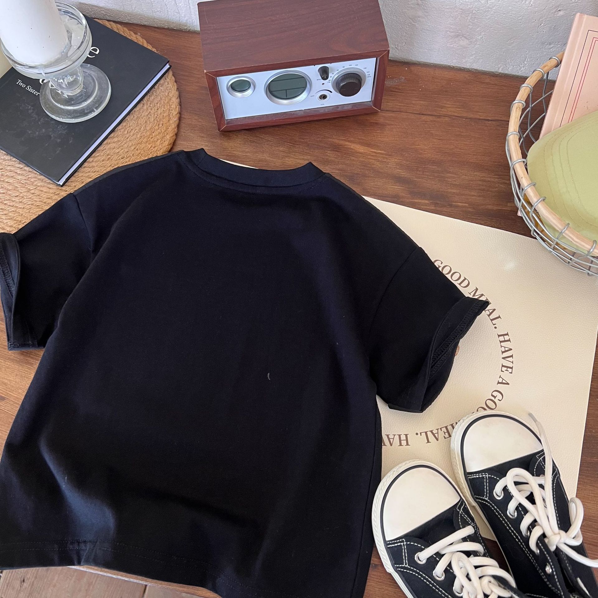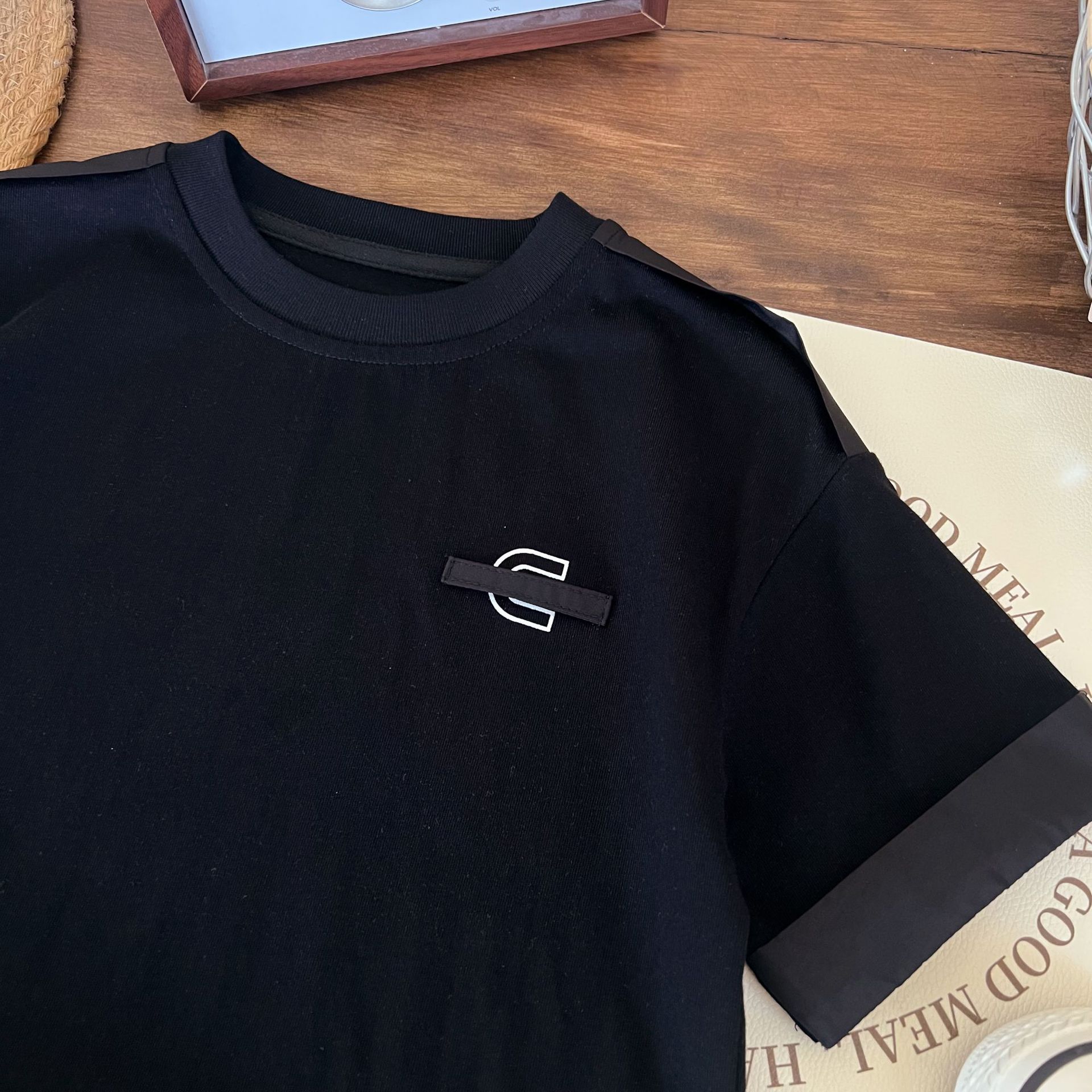 Camiseta de Manga Corta para Niños 2025 Verano Nuevo Estilo Niños Color Puro Negro Versátil Combinación de Colores Moderna t Camiseta Casual de Moda para Niños