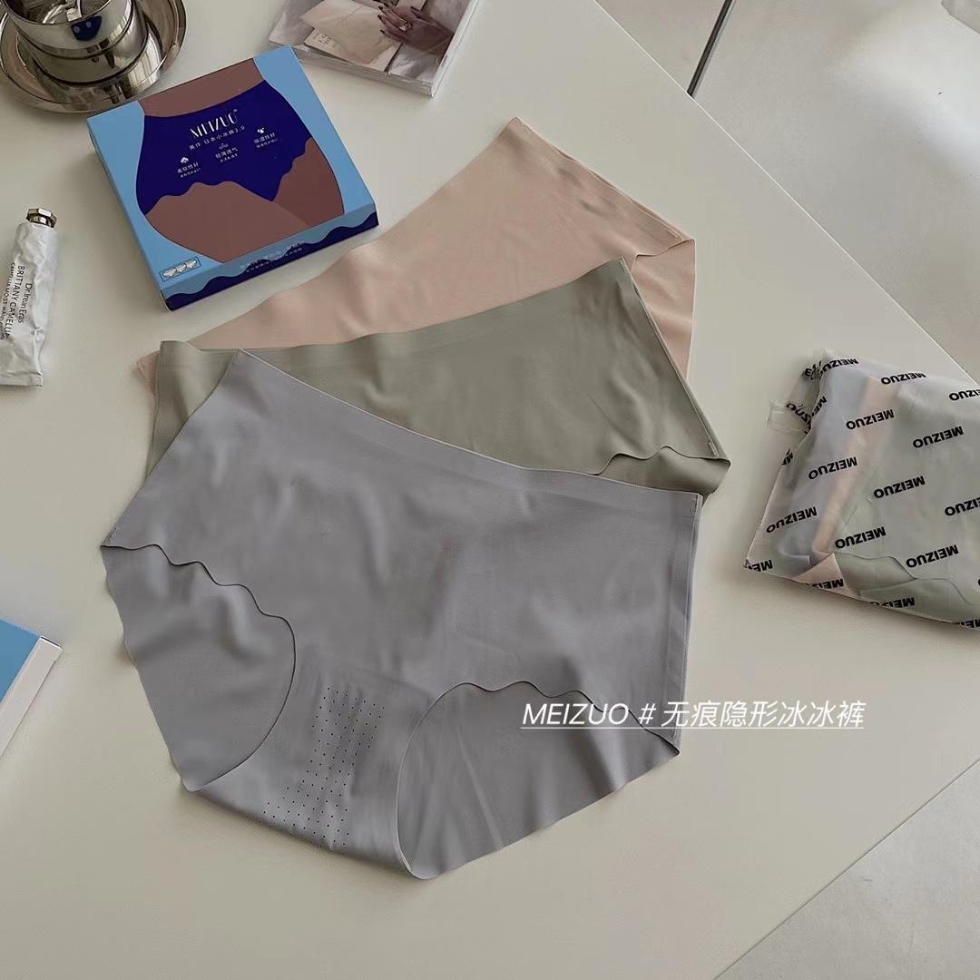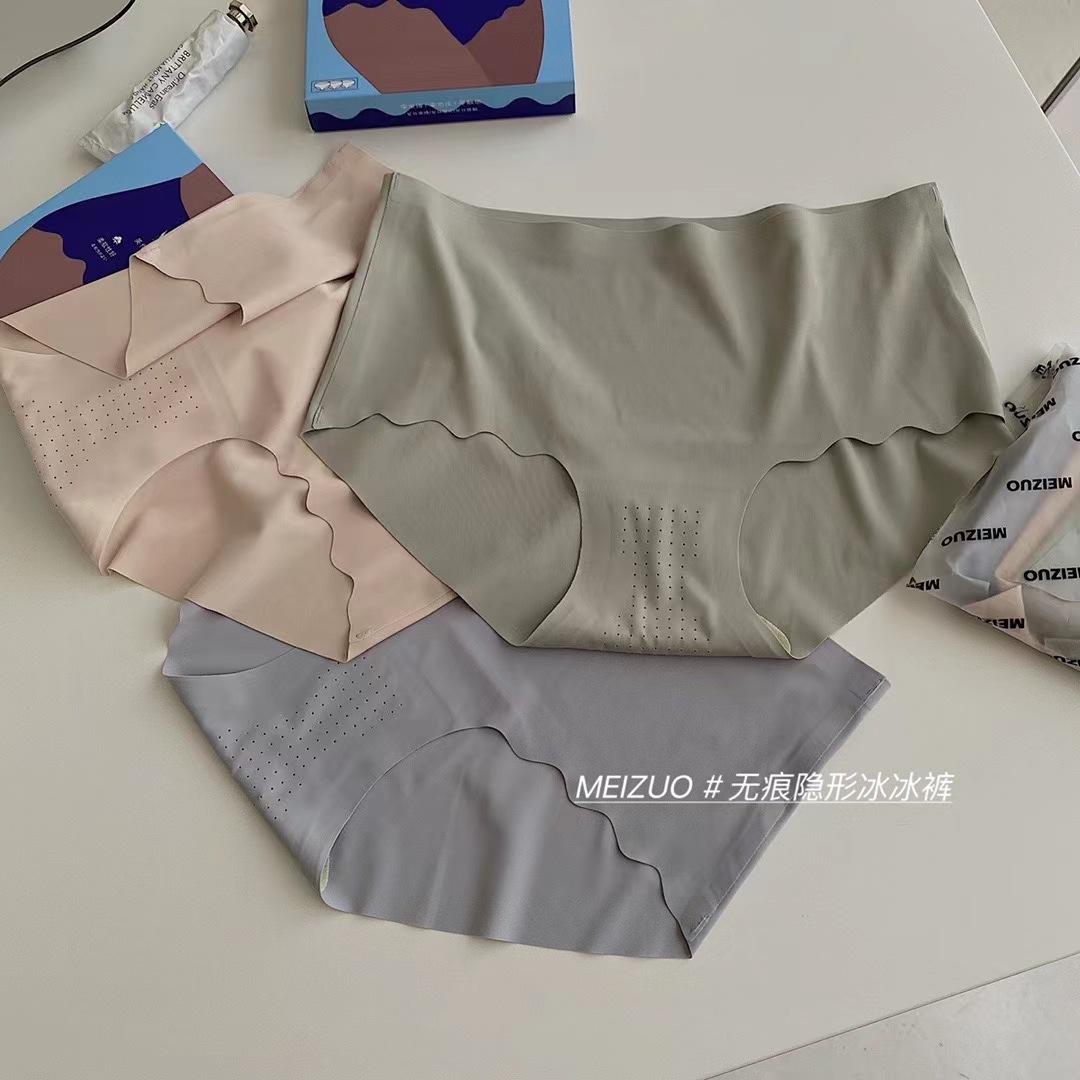 MEIZUO Ropa Interior de Hielo para Mujer Transpirable Seda de Hielo Sin Costuras Cintura Media Calzoncillos de Algodón Puro con Entrepierna Estilo Japonés para Niñas Verano Delgada