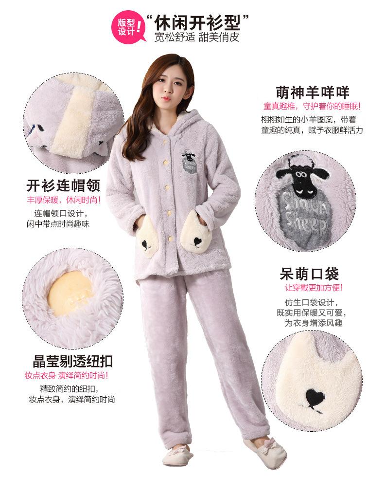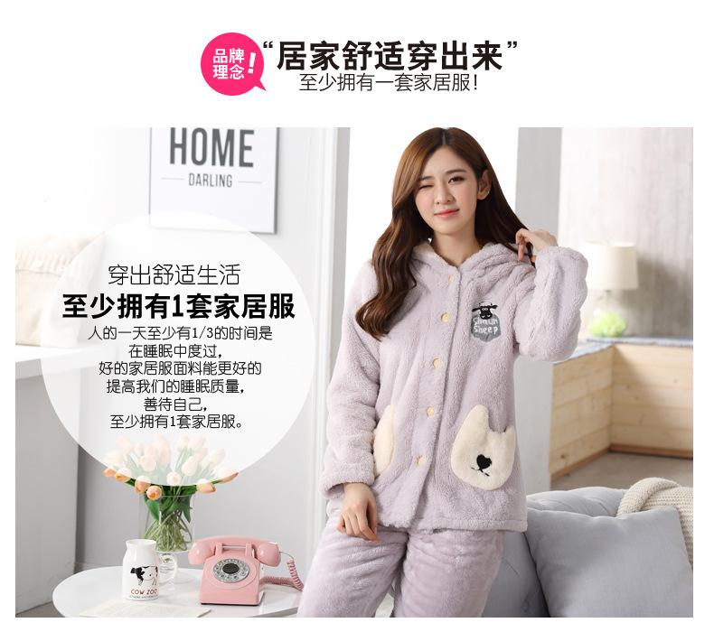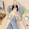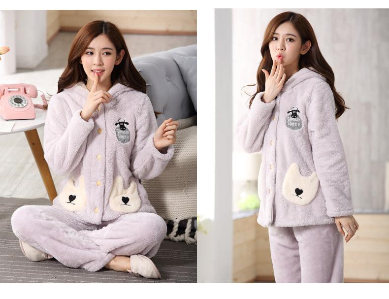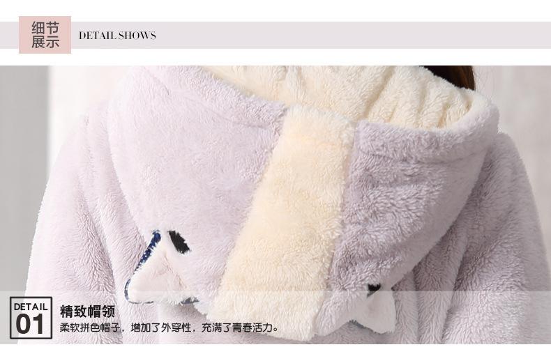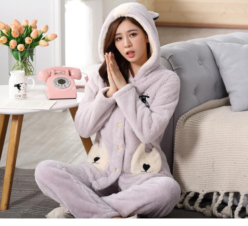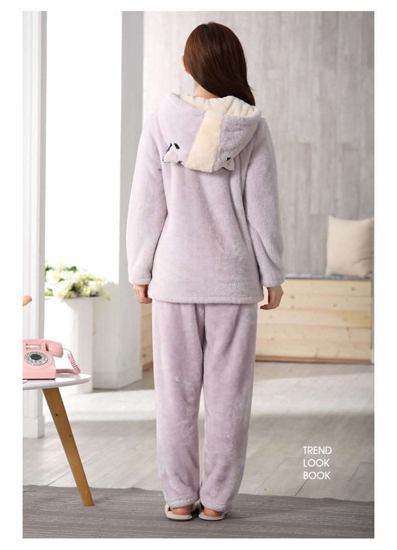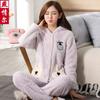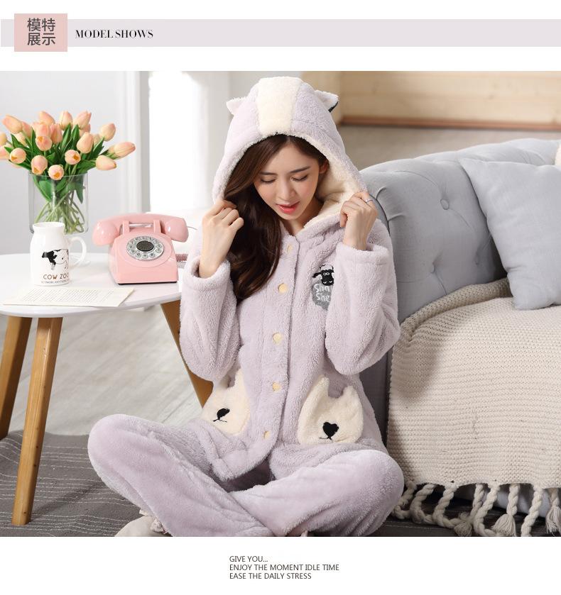 Pijama de princesa para mujer de invierno, lindo forro polar, forro polar de coral, con capucha, otoño, estilo coreano, grueso, traje de ropa de casa para mujer