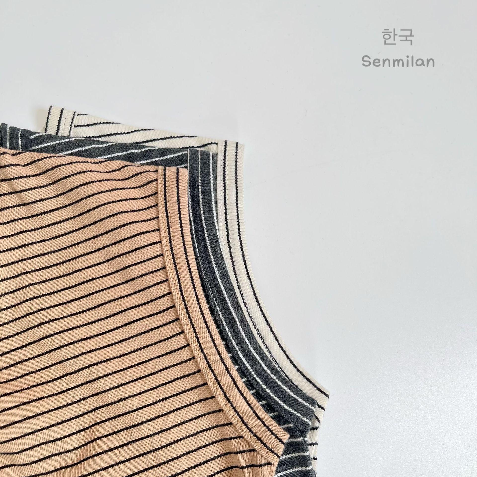 Chaleco para niños Chaleco Verano Nuevo Estilo Coreano Suelto Cuello Redondo Rayado Tejido Chaleco para Niños y Niñas
