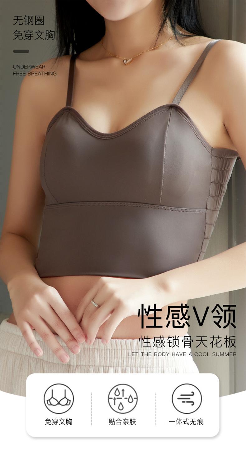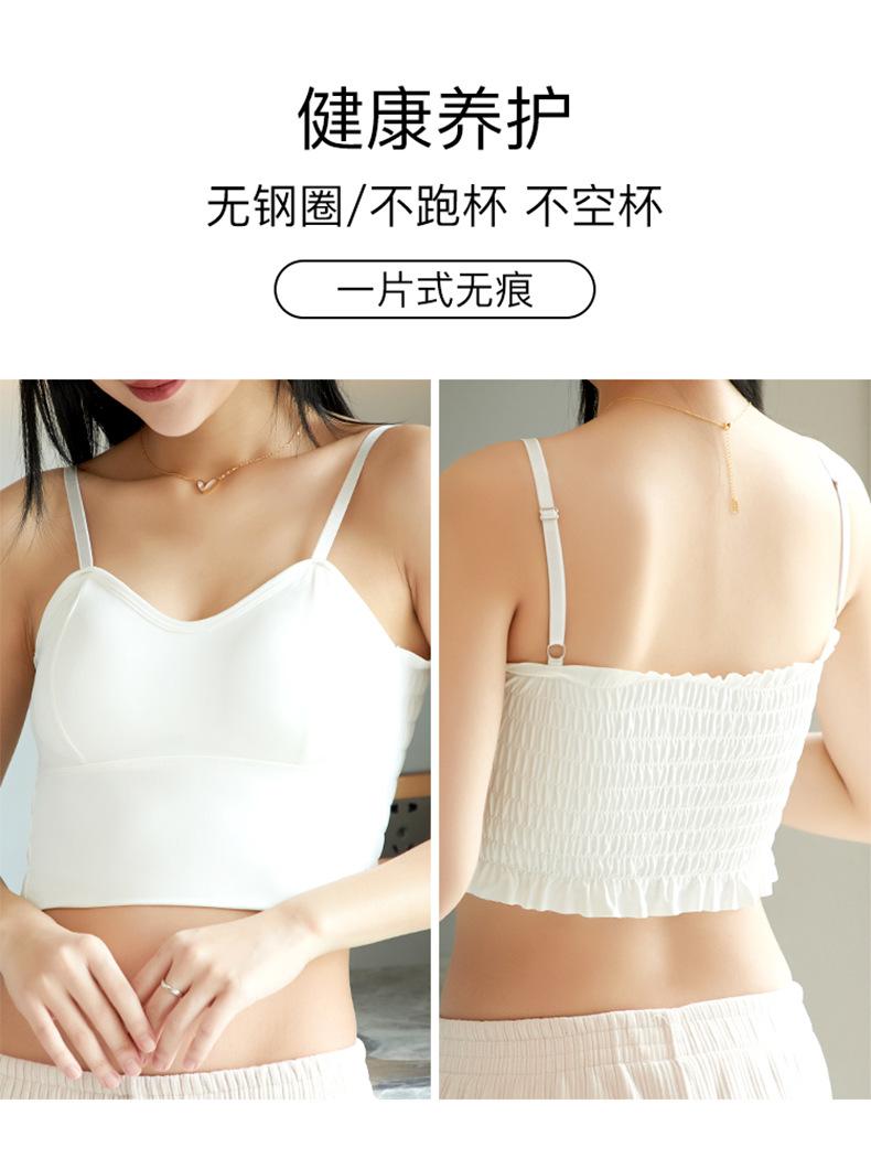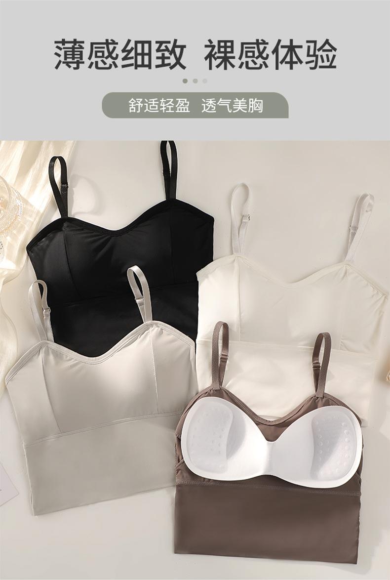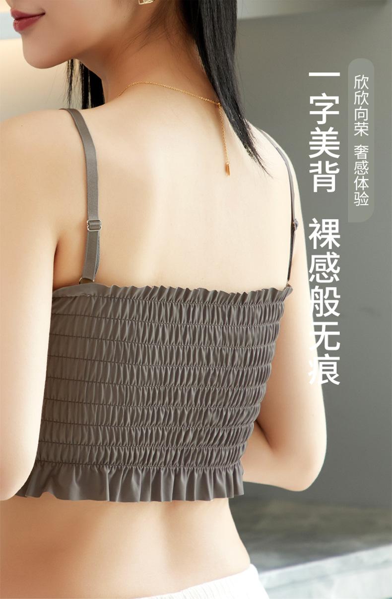 Ropa interior de seda helada para mujer, fina, de verano, sin tirantes, con escote en el pecho, antideslizante, con base fruncida