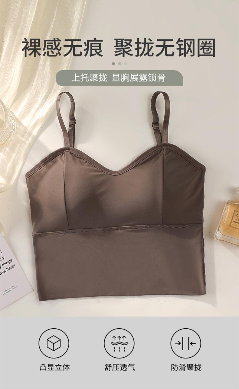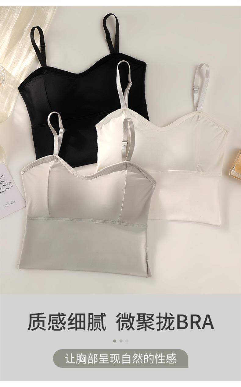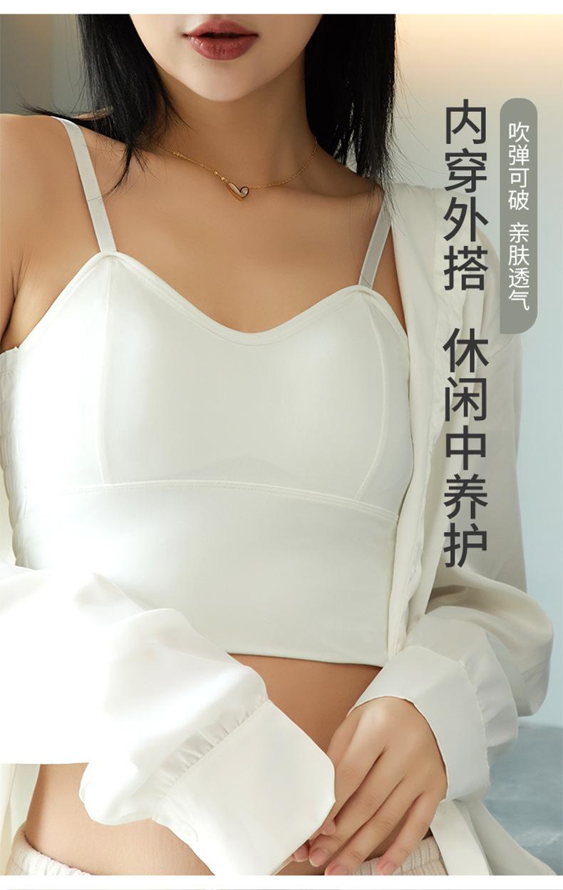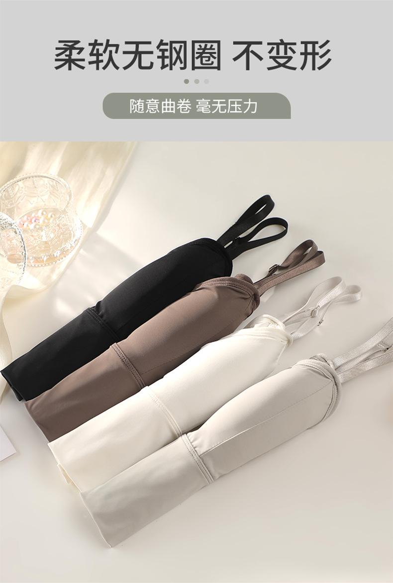Ropa interior de seda helada para mujer, fina, de verano, sin tirantes, con escote en el pecho, antideslizante, con base fruncida