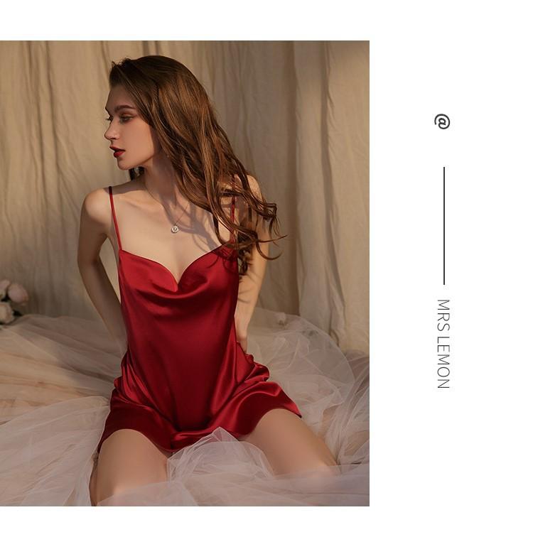 Pijama sexy de seda helada para mujer, verano 2023, fino, nuevo estilo, cuello alto, tirantes, camisón, estilo puro deseo, transfronterizo