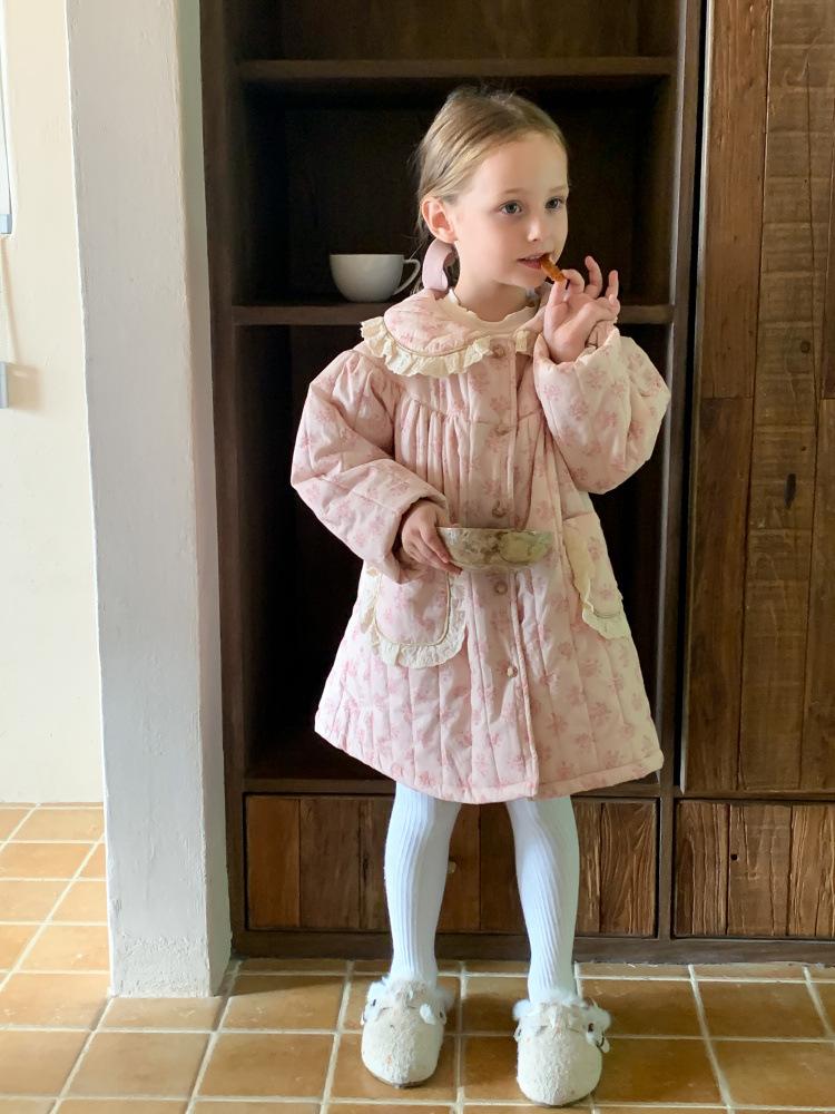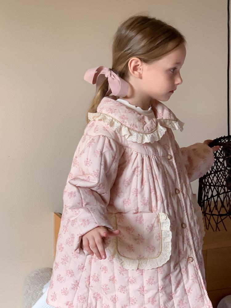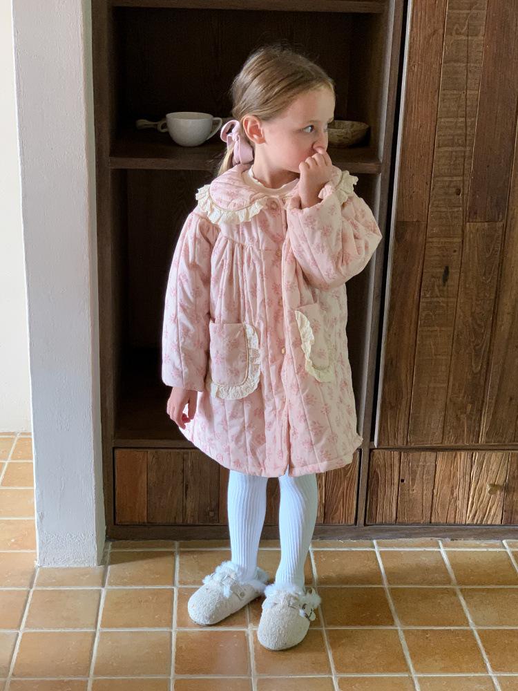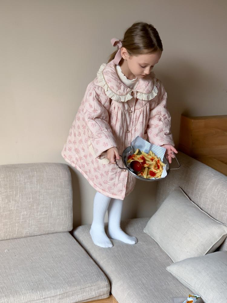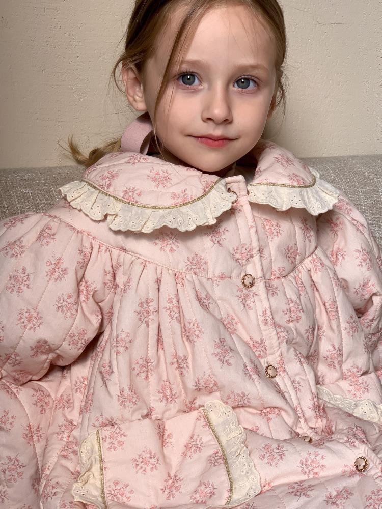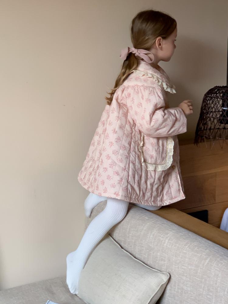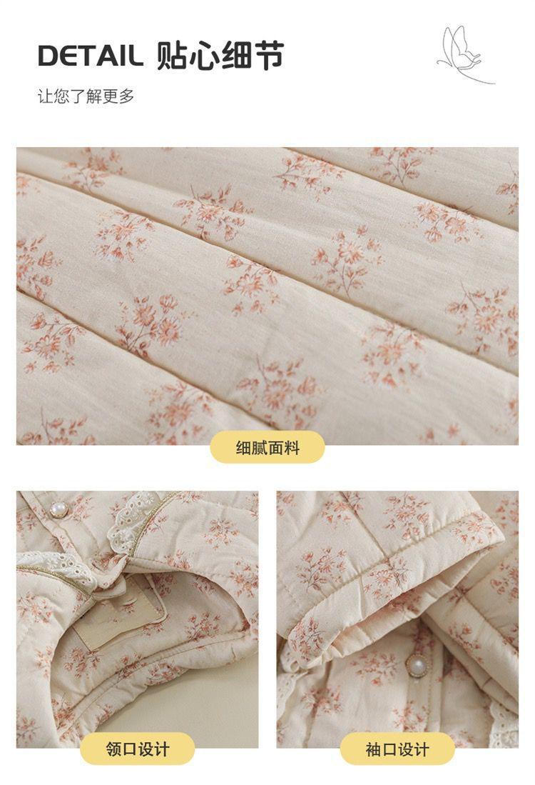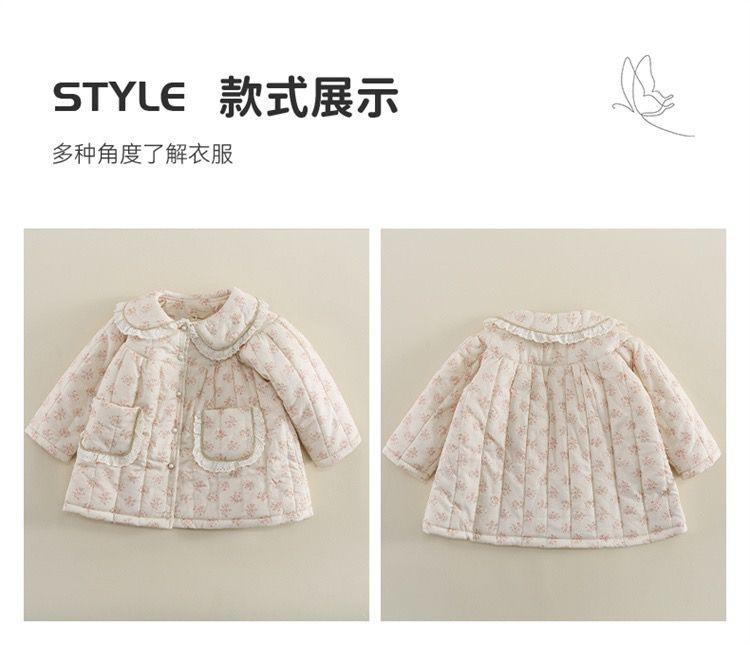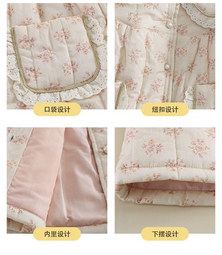 Abrigo Acolchado de Algodón para Niñas 2024 Nueva Ropa de Invierno para Niños Abrigo de Algodón de Largo Medio con Cuello de Encaje Dulce Floral Francés