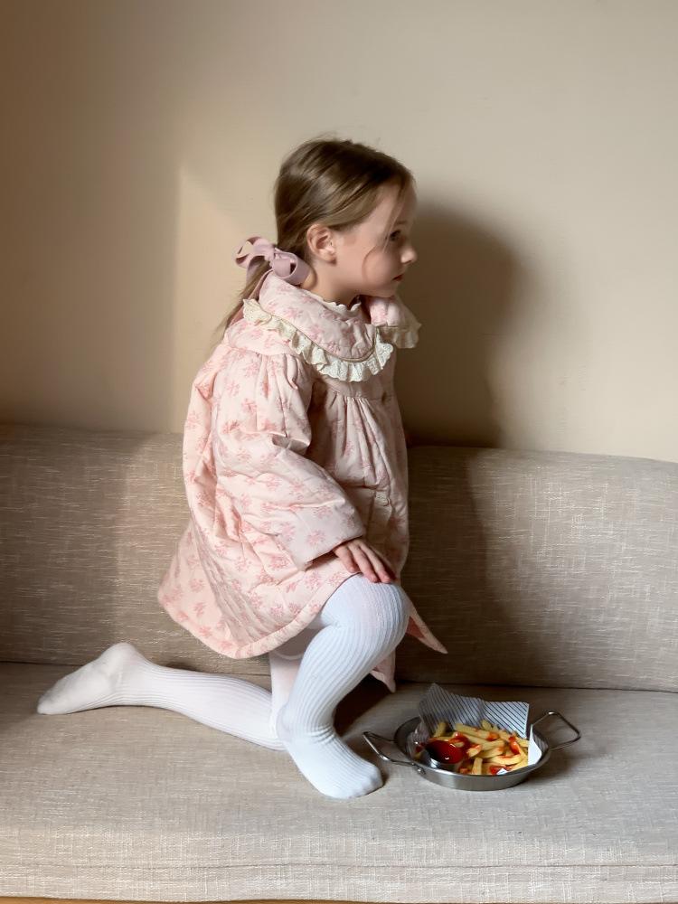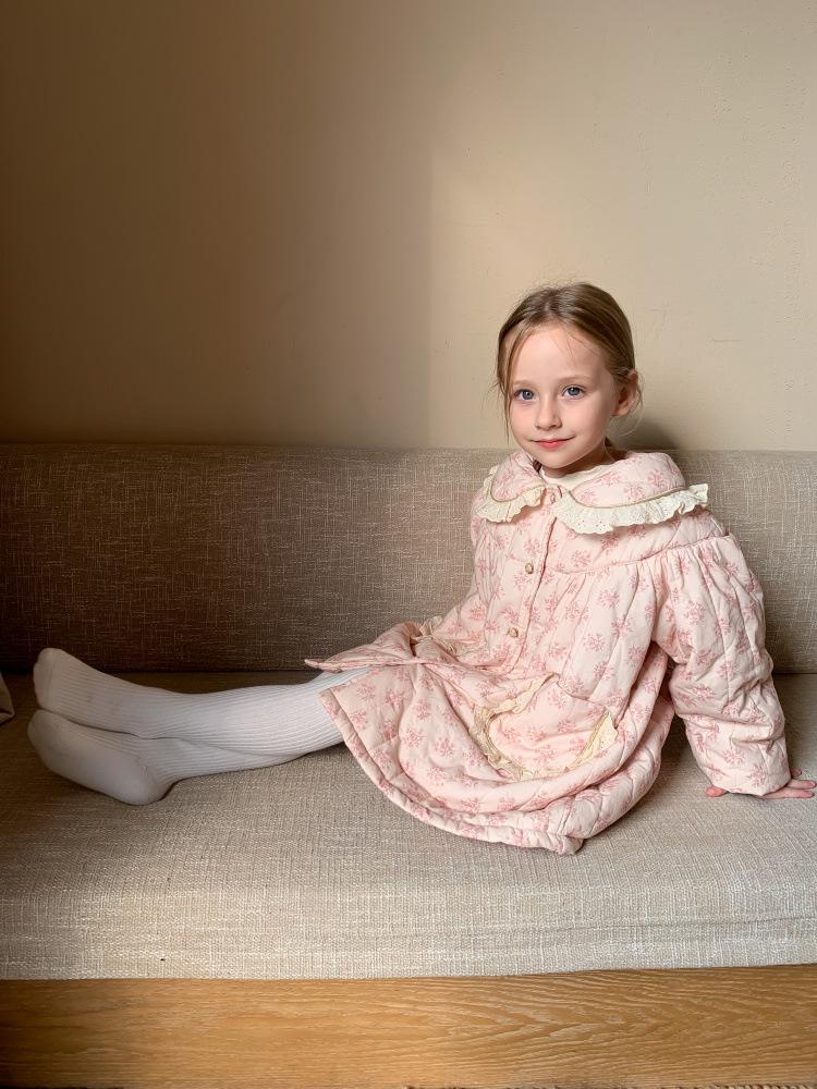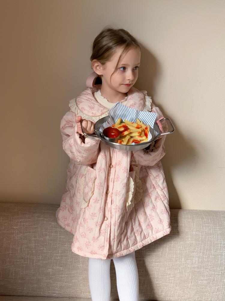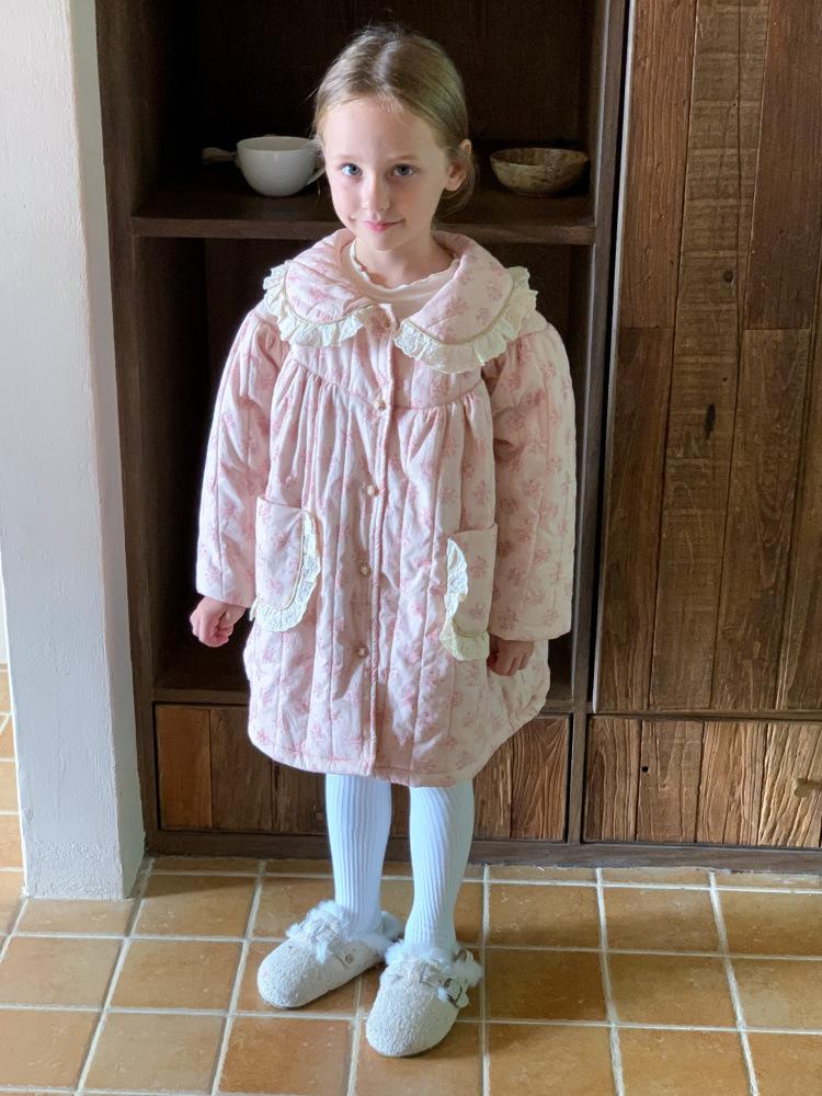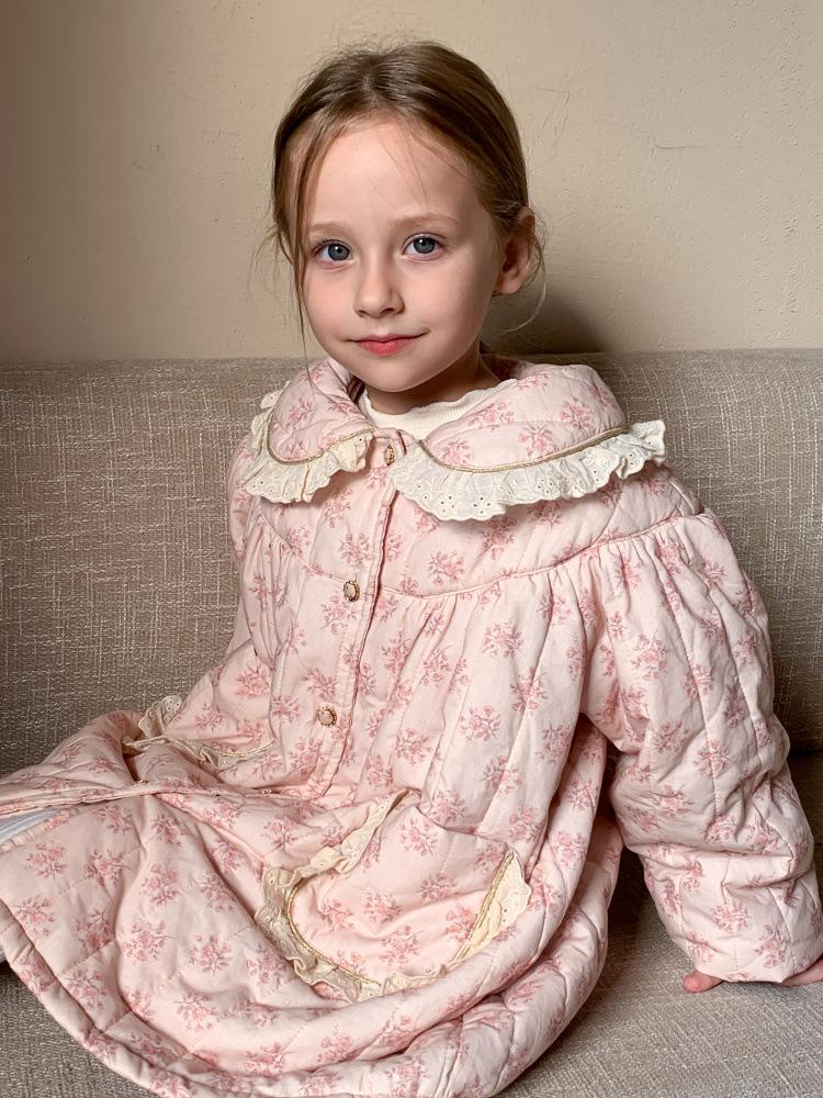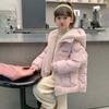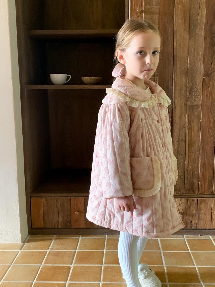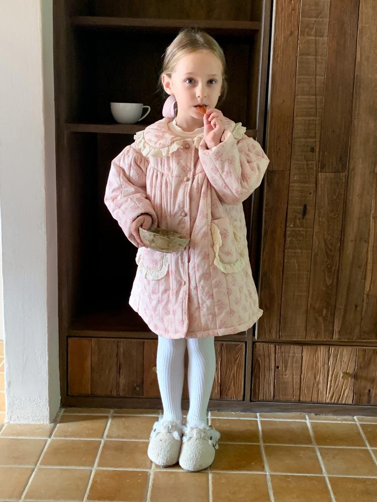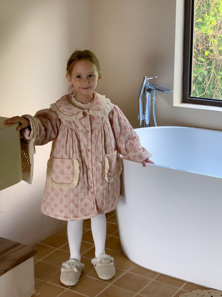 Abrigo Acolchado de Algodón para Niñas 2024 Nueva Ropa de Invierno para Niños Abrigo de Algodón de Largo Medio con Cuello de Encaje Dulce Floral Francés