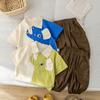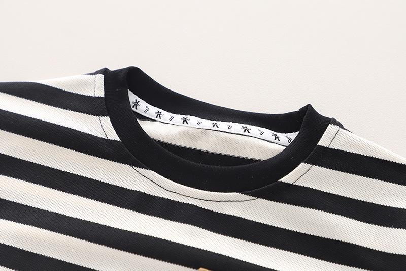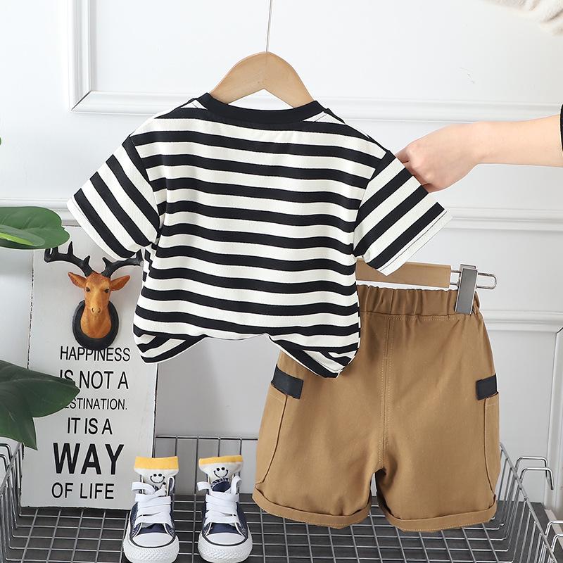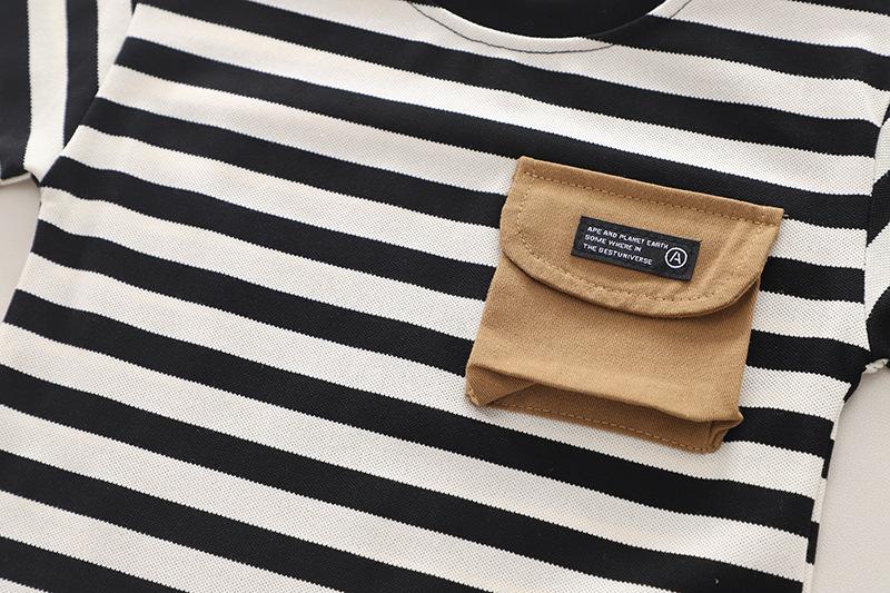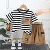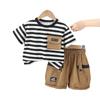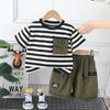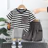 Traje de verano para niño 2024 Nuevo conjunto de dos piezas de verano para niños Traje de camiseta a rayas de manga corta Conjunto de dos piezas para niños