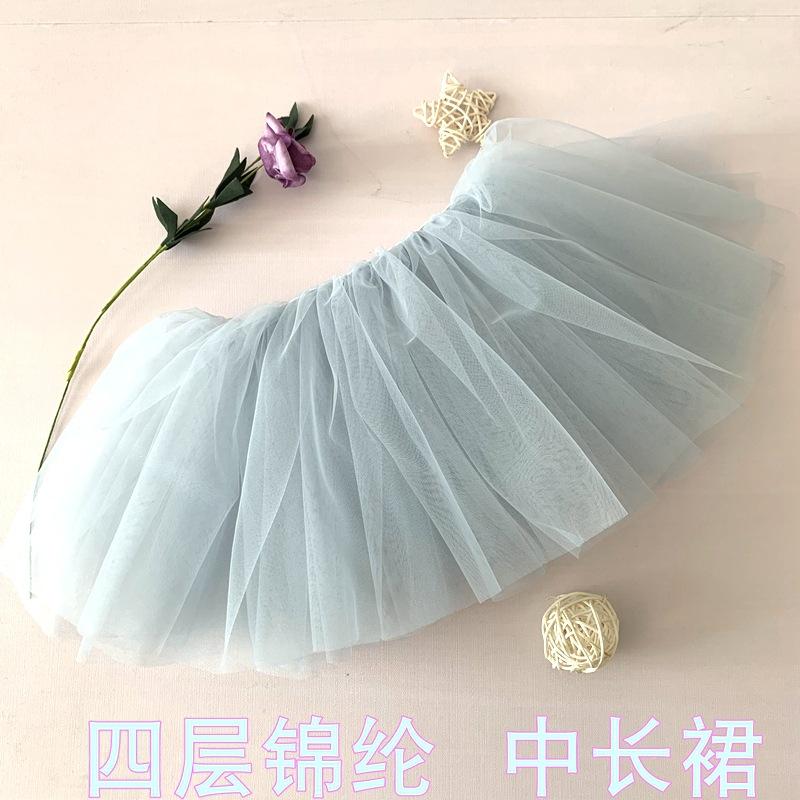Falda de media longitud para danza infantil, falda de princesa, ballet, de cuatro capas de nailon, red americana, falda de gasa para actuación de baile para niña