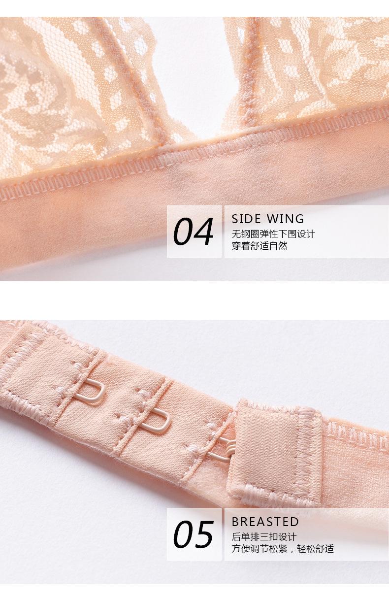 Venta directa de fábrica de ropa interior ultrafina de encaje sexy para mujer, sin esponja, transpirable, pecho grande, sujetador pequeño, sujetador de talla grande