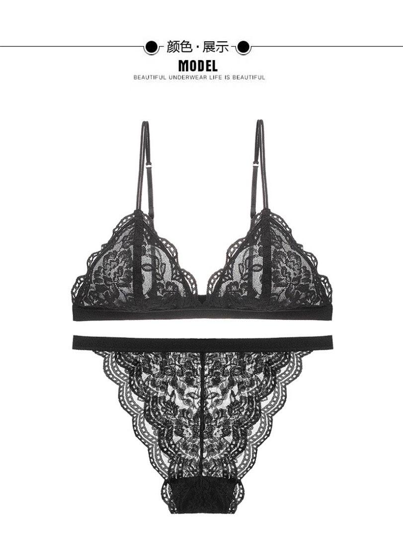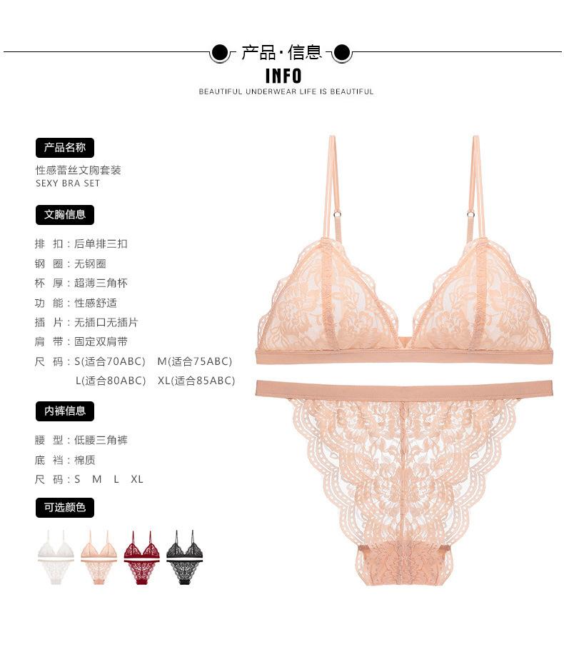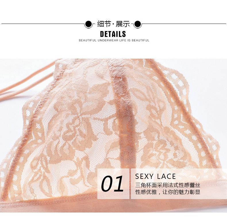 Gran Venta Venta Bralette Francés Sin Aros Copa Triangular Sin Esponja Íntimos Ropa Interior para Mujer Set de Brasier de Encaje Ultradelgado