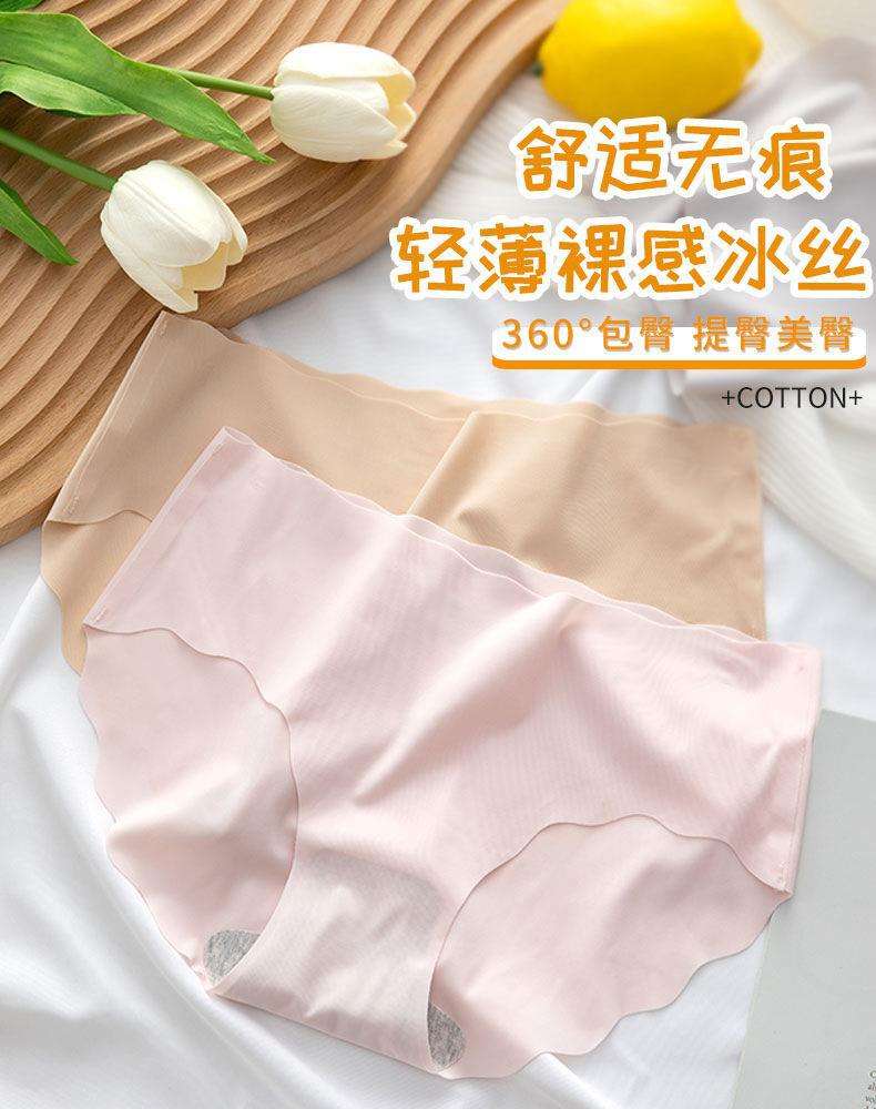 Ropa interior de seda de hielo para mujer, sin costuras, sexy, de verano, de algodón fino, con entrepierna antibacteriana, invisible, de una pieza, pantalones cortos transpirables