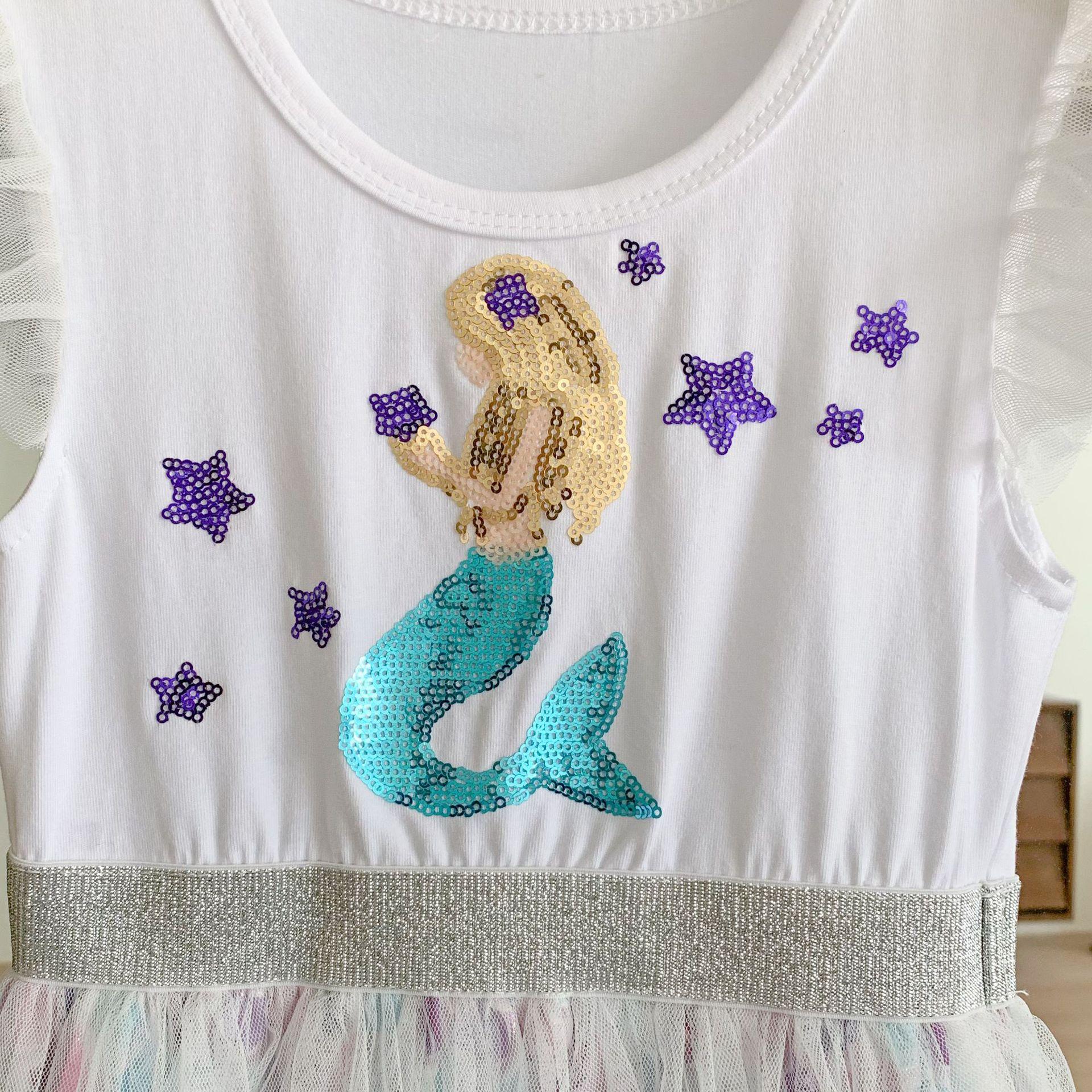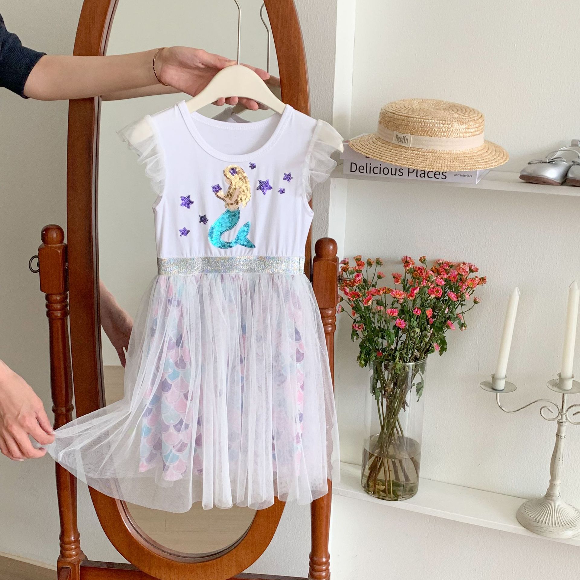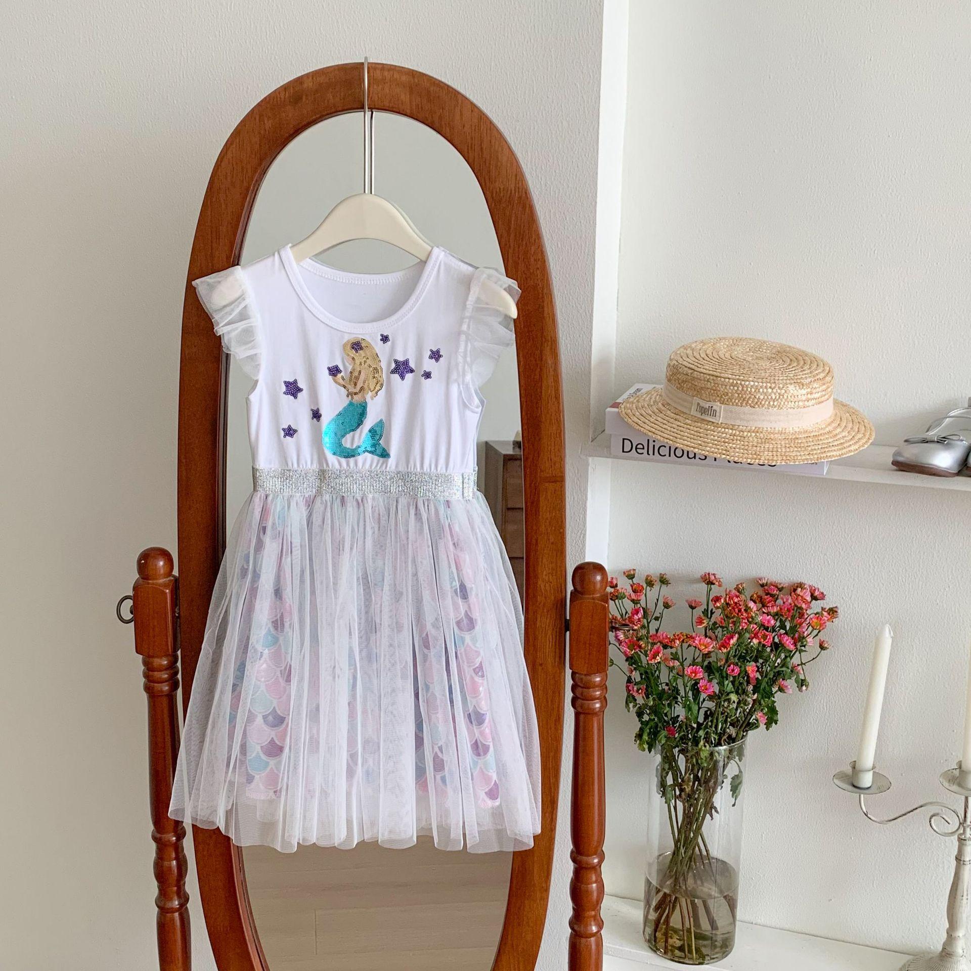 Nuevo vestido para niños, falda de malla de sirena bordada, falda de princesa, falda de baile para el Día del Niño, falda abullonada para bebé, venta