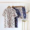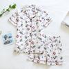 Pijama de gasa de oso de manga corta para mujer, primavera y verano, con solapa fina, cómodos pantalones cortos de manga corta con dibujos animados, ropa de casa de talla grande