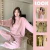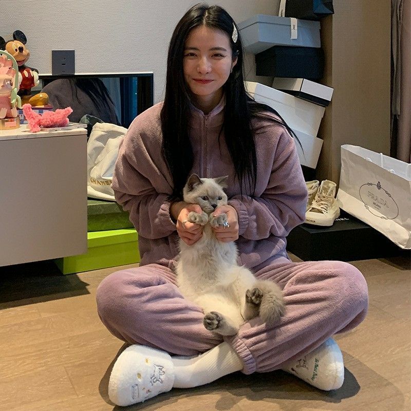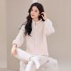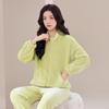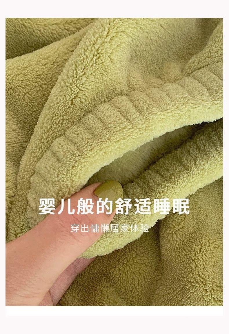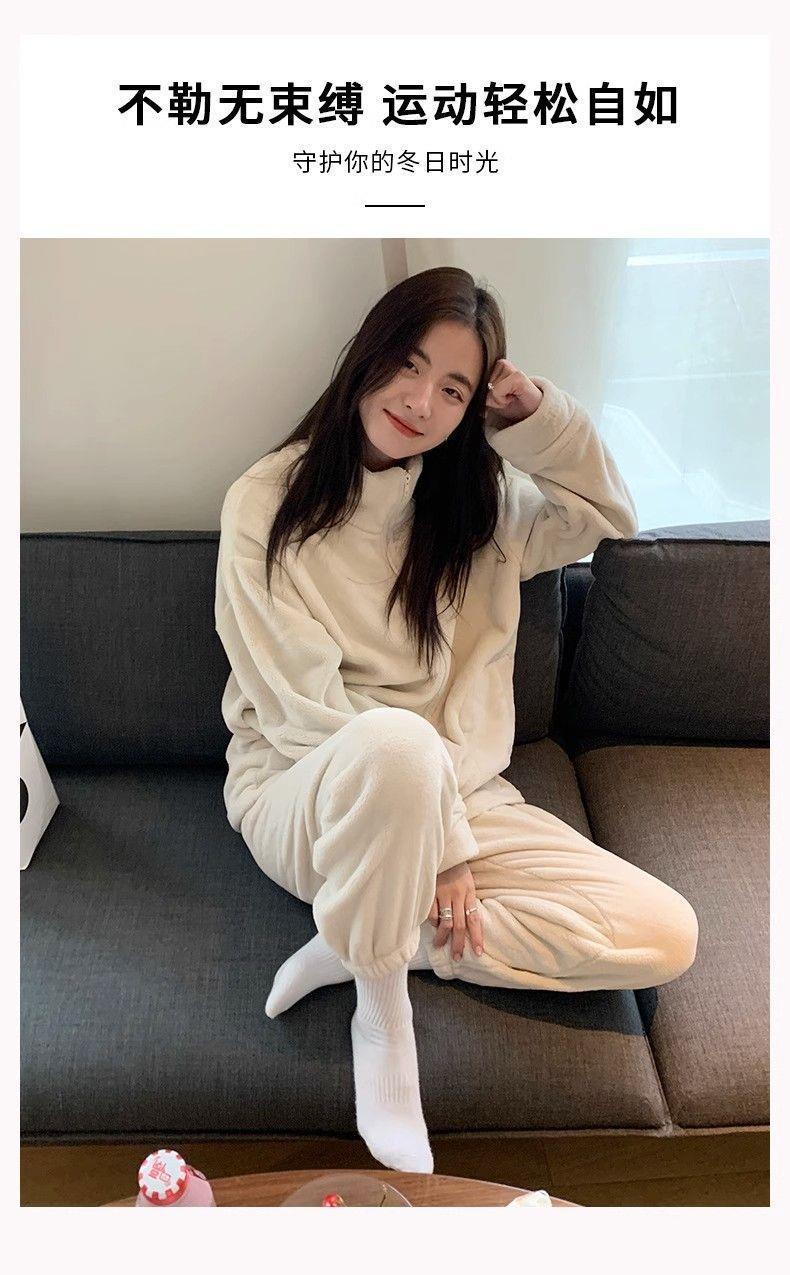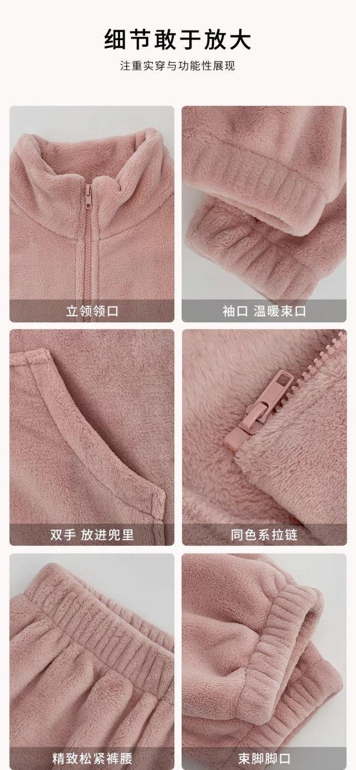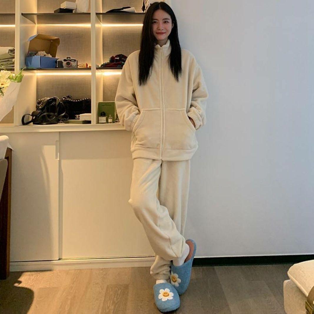 Ropa de Abrigo Pijama de Forro Polar Coral Cárdigan de Invierno para Mujer Suéter con Cremallera Traje Ropa de Casa para Pareja de Estilo Coreano Conjunto de Dos Piezas